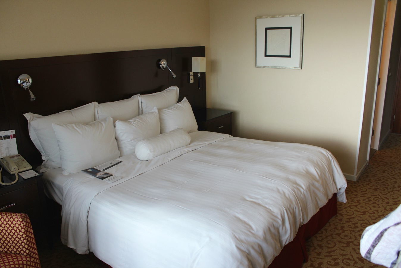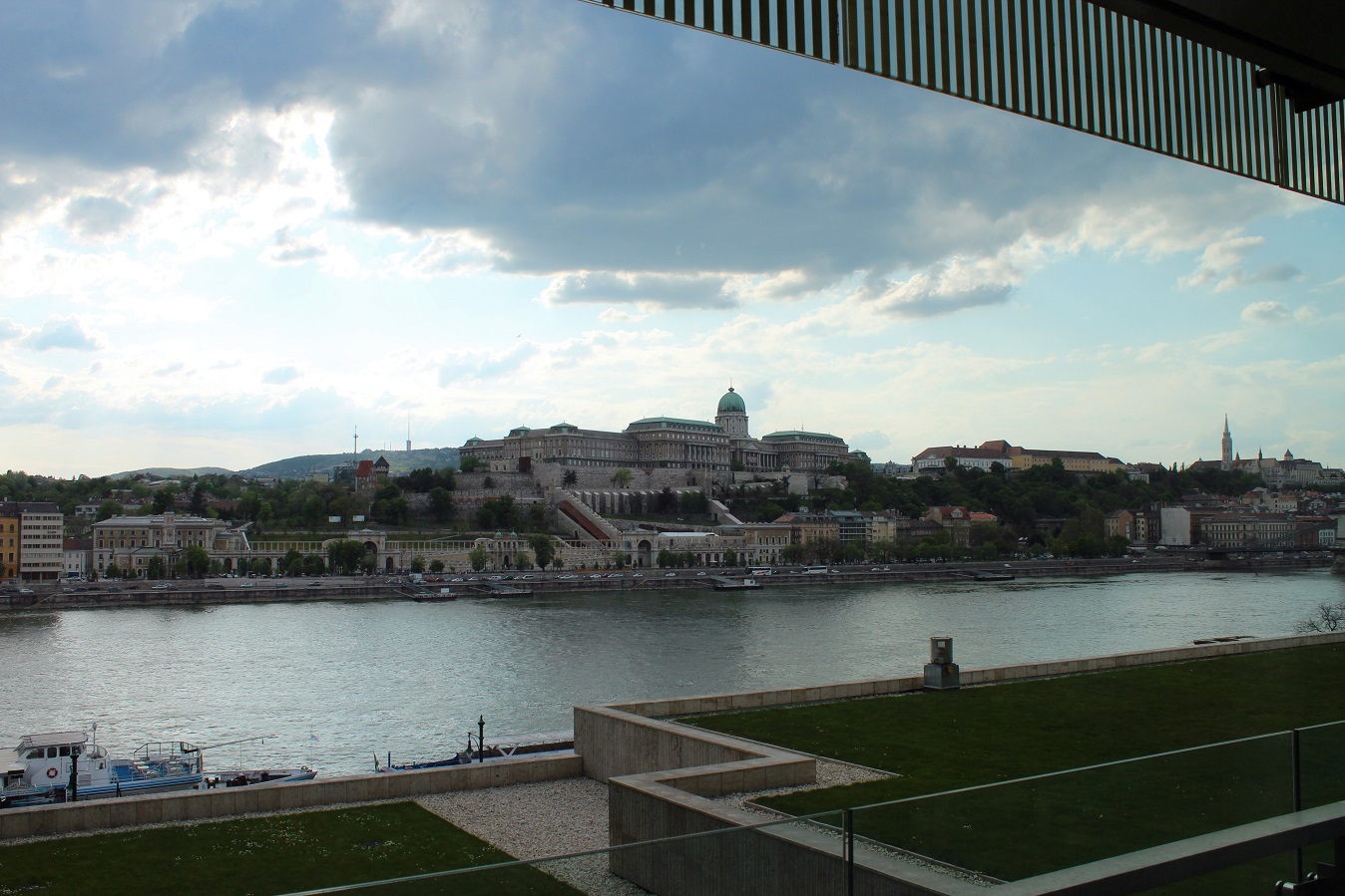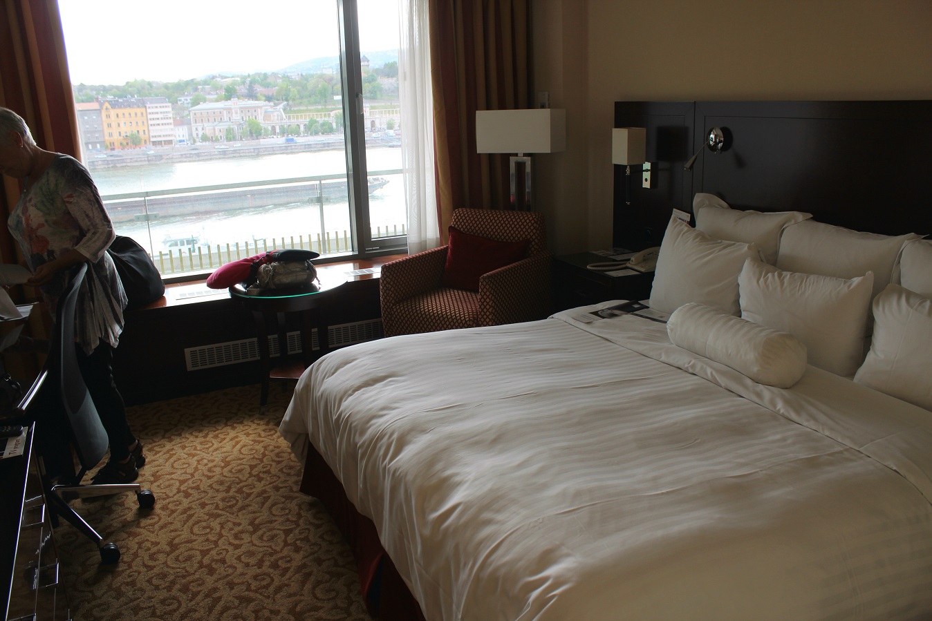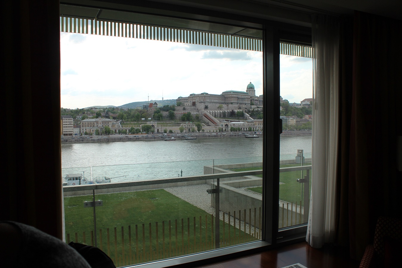 [The view from our room (Buda Castle) . . . and our room. Not too shabby.]