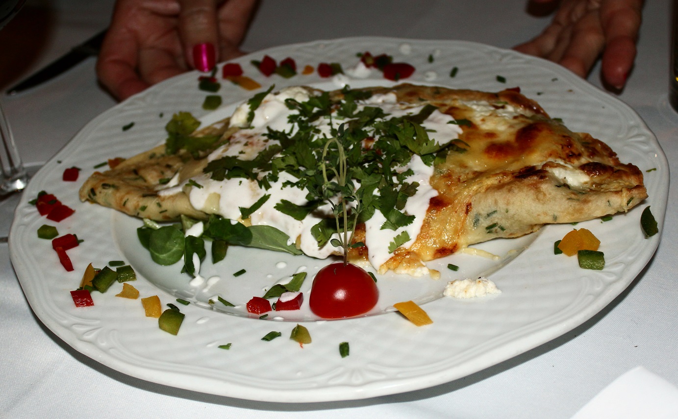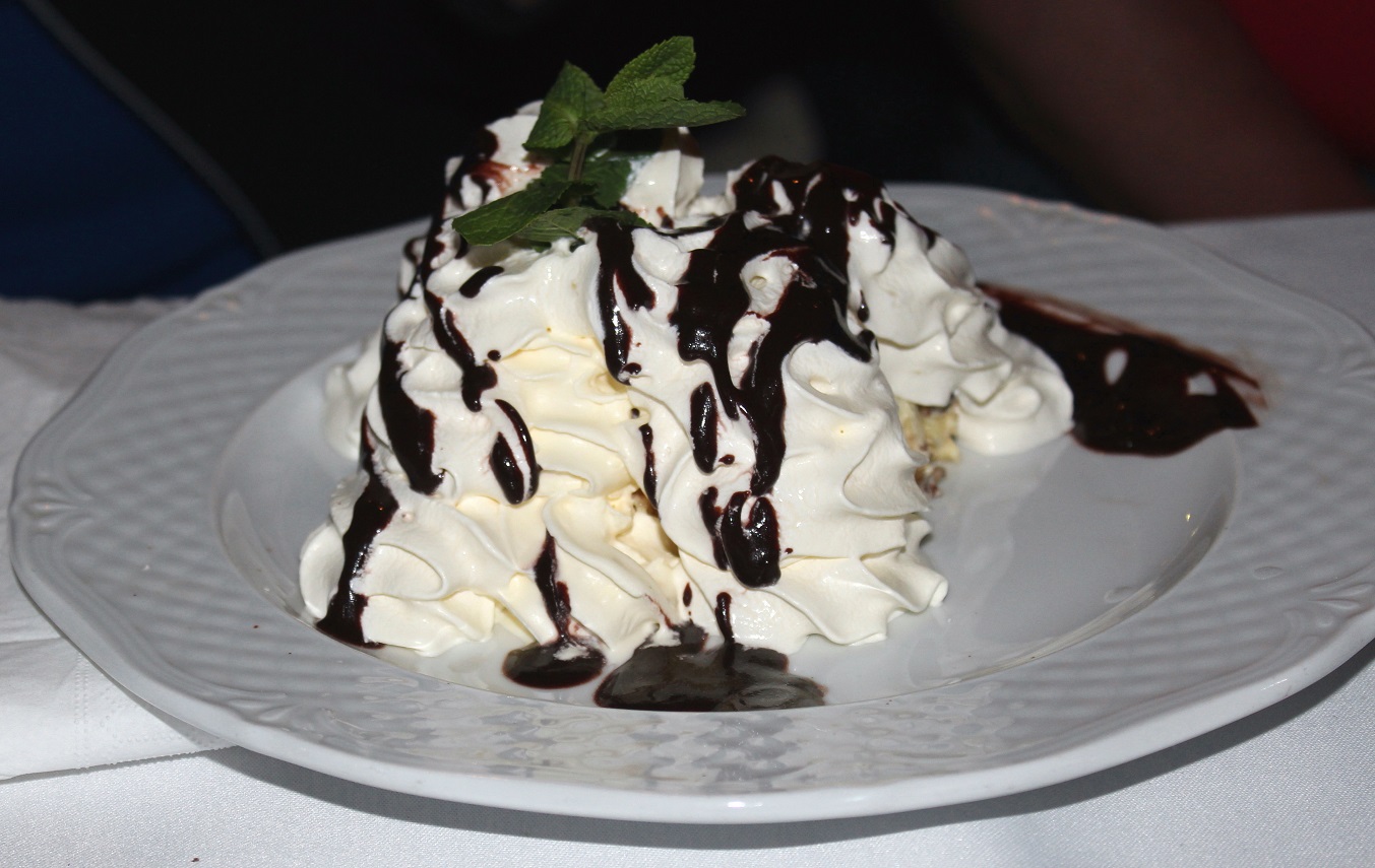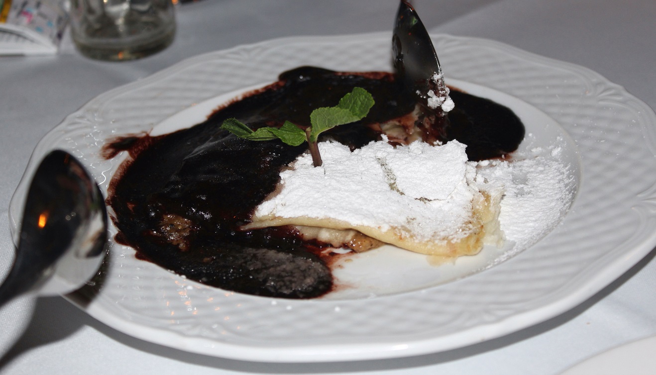 [And finally we’re joined by the rest of our party – Kathy & Bert, Anne & Bill, spent their pre-cruise days in Vienna while we were in Prague. Our first night together ISO a fine eating experience . . . and it was just a couple blocks from the hotel.]