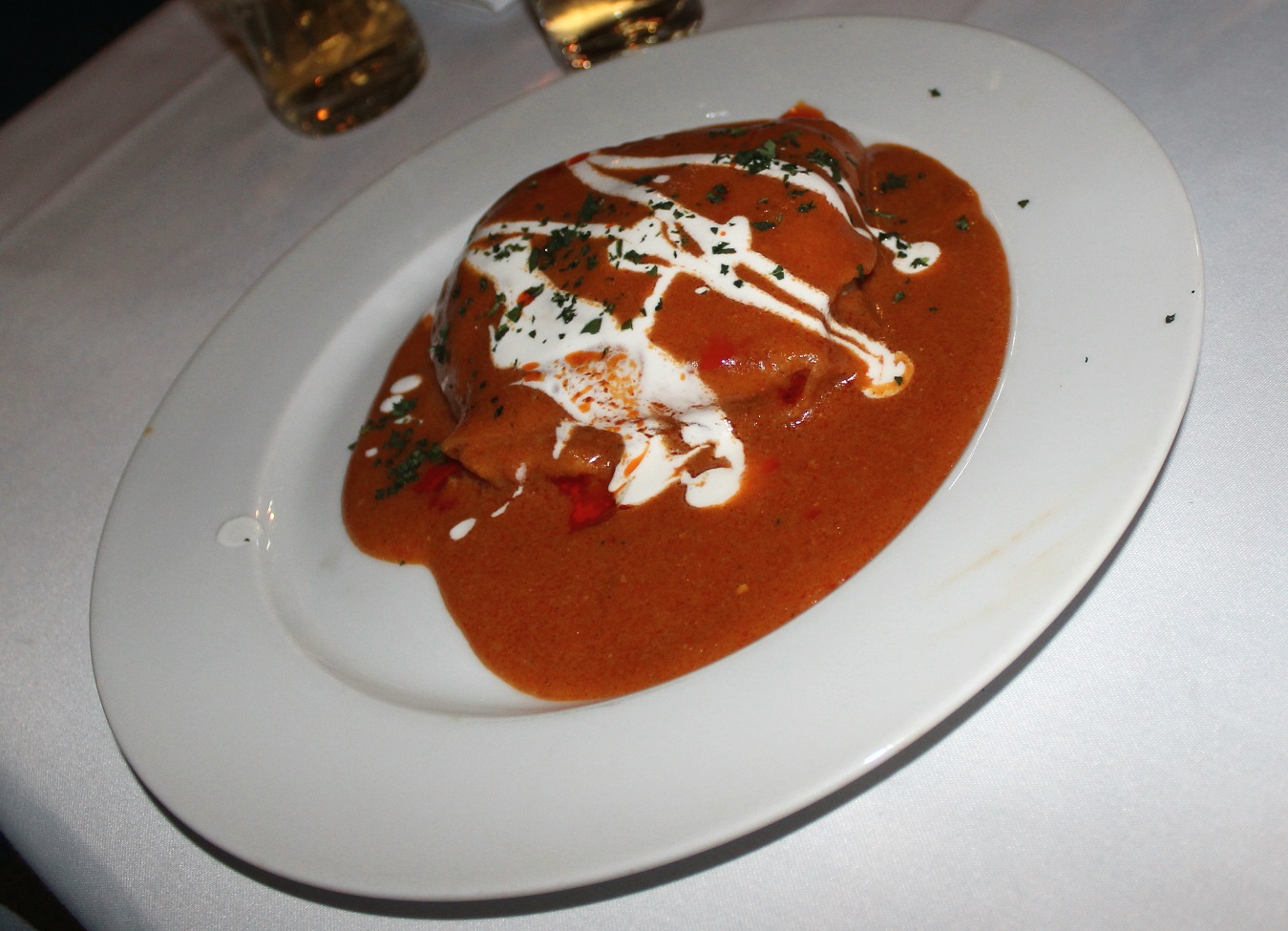 [We kind of had our own room, as a party of eight. The main inside room to our right was full, so we got this little outdoor patio place. It was perfect!]