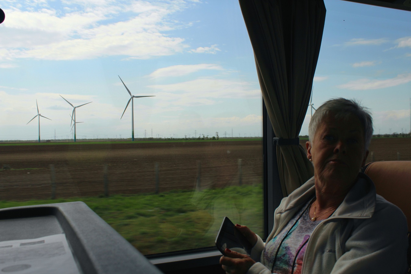 [What, I hear you say? I thought this was a boat trip? We’re leaving Prague now for an 8-hour bus trip to Budapest – going from Czech, through Slovakia, to Hungary. It’s about 330 miles, but with a couple stops, including one for lunch, and an unintended one for an hour on the “interstate” for no discernible reason (we passengers weathered it well), it’s a full day drive. Here we’re saying good-bye to our next-door neighbors at the Prague Marriott.]