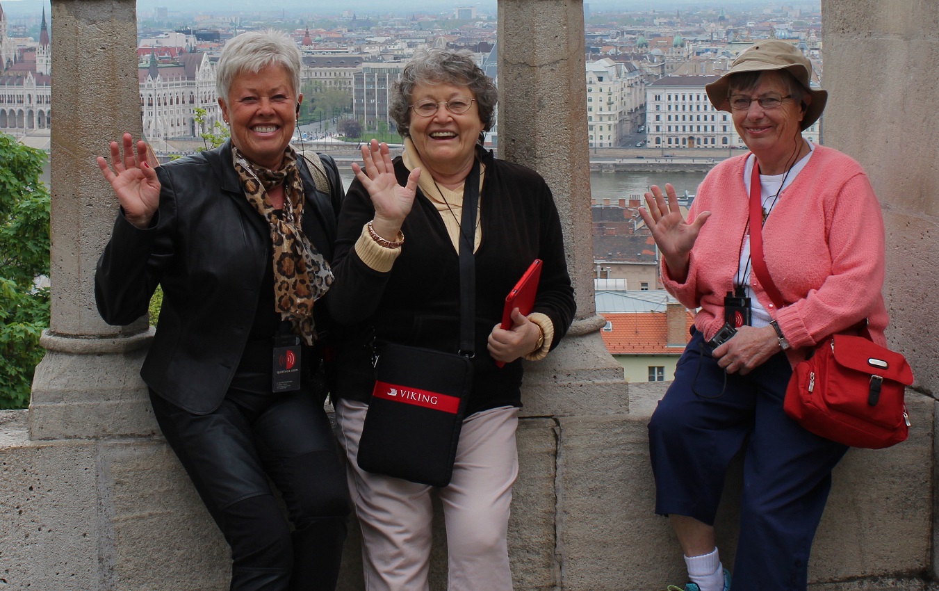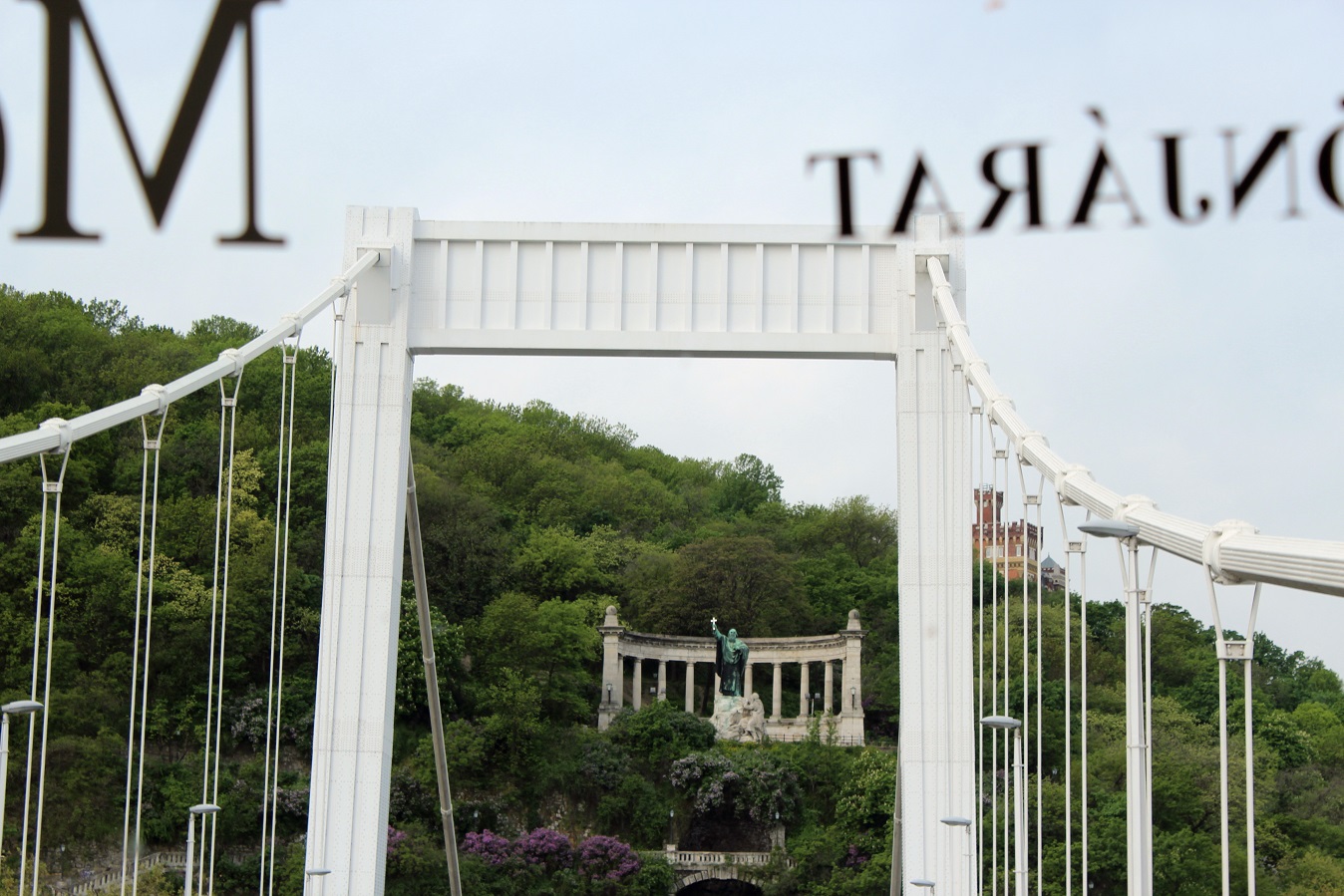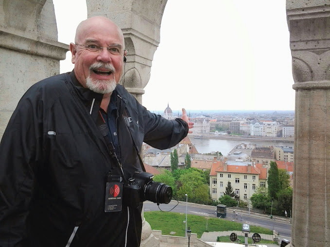 [St. Gellert on the Buda side of Elisabeth Bridge. Not surprisingly, he’s on Gellert Hill. We’re in a bus now for a guided tour of the city on Sunday morning. This brought some consternation to the cruisers who wondered why this didn’t come until our final day in the city? It was originally scheduled for Saturday, which made sense so we would then know where to go when we were on our own, but Viking worried about a big city bike race on Saturday (we never noticed it?). Well, I’m sure there was nothing nefarious involved – we truly enjoyed our time in Budapest.]
