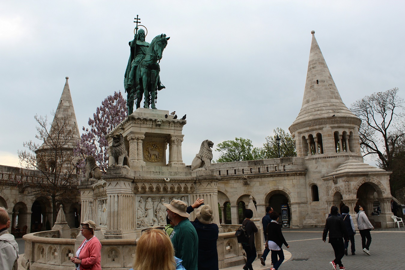 [St. Stephen (our guide’s namesake?) on his horse at Fisherman’s Bastion, which provides the scenic overlooks of the city.]