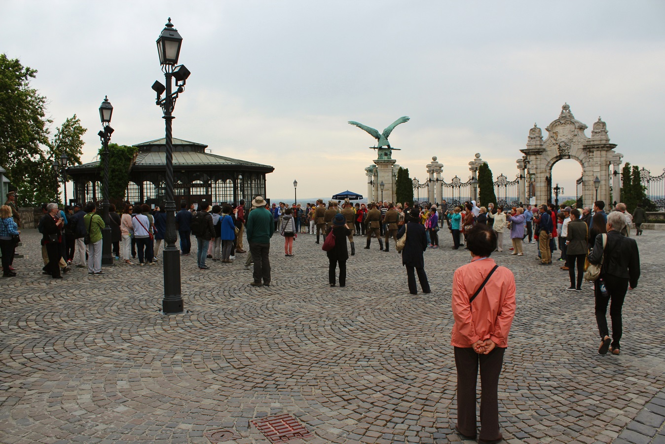 [The Welcome Wagon greeter? He was at the road divide between Sandor Palace and Matthias Church. I can’t remember who he was, but I showed him my passport out of respect (or fear).]