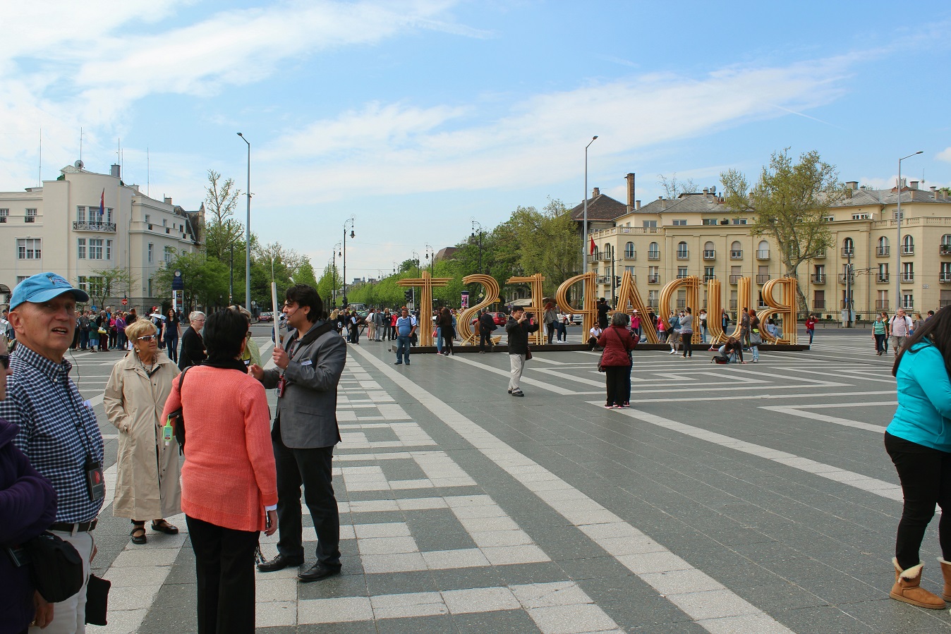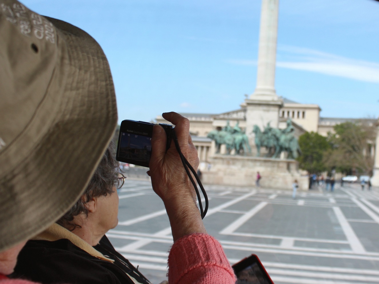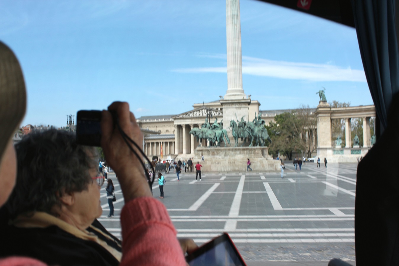 [Steve telling us all about Heroes’s Square. The Museum of Fine Arts is on the opposite side of the Square from the The Palace of Art.]