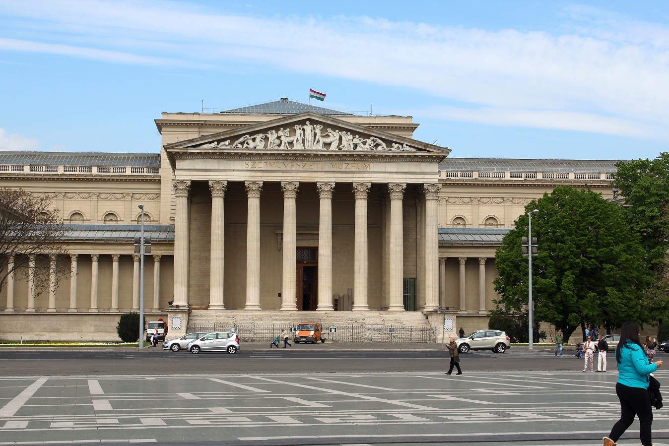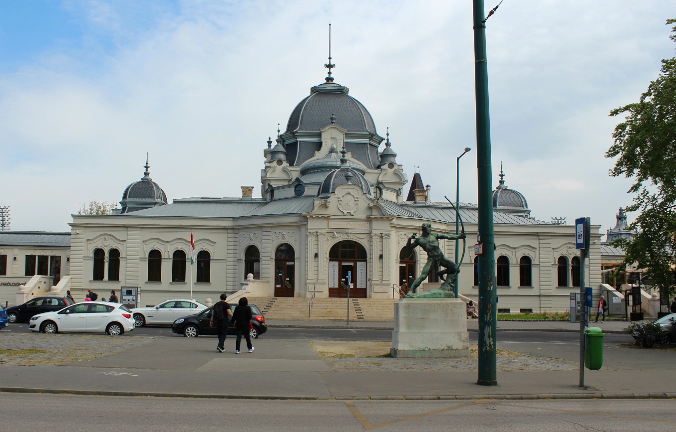 [Back to Heroes’ Square, this is a “nice building by the Square.” I can’t remember what it was and web photo research only came up with “nice building by the Square”? Oh, and it’s where we parked the bus. (Editor’s note: This just in! Checked on the archer statue out front – the building is the City Park Ice Rink! Now I remember!)]