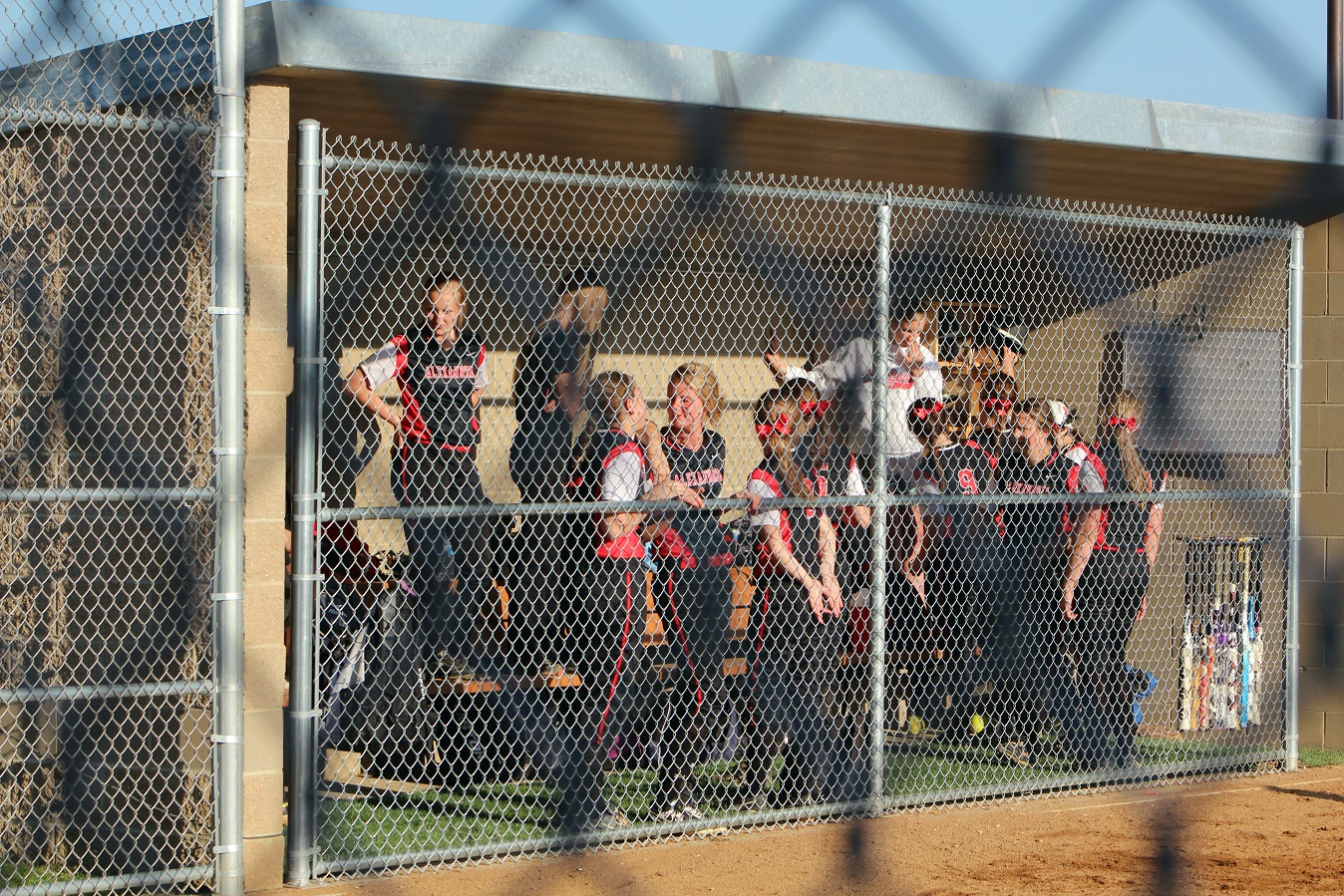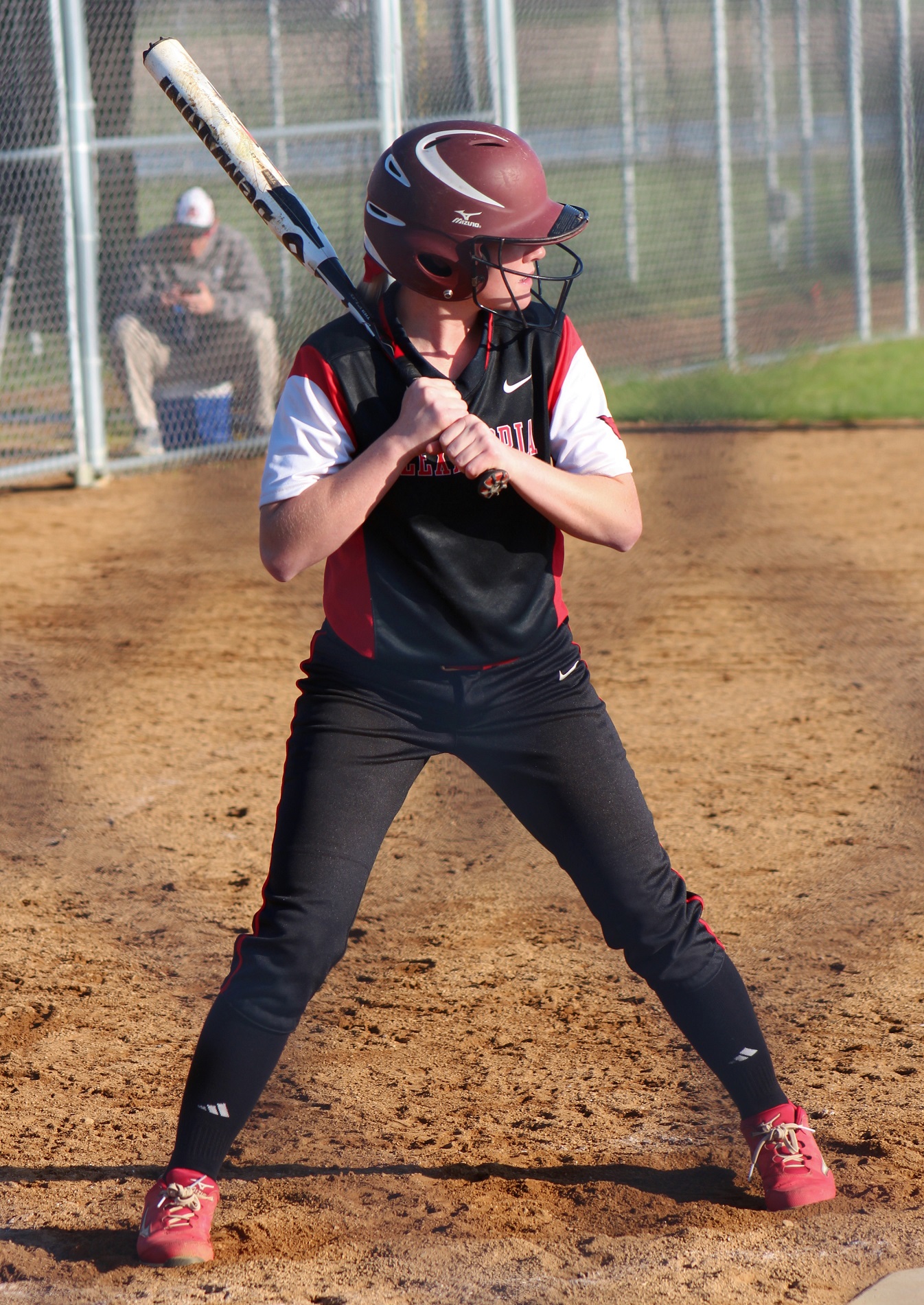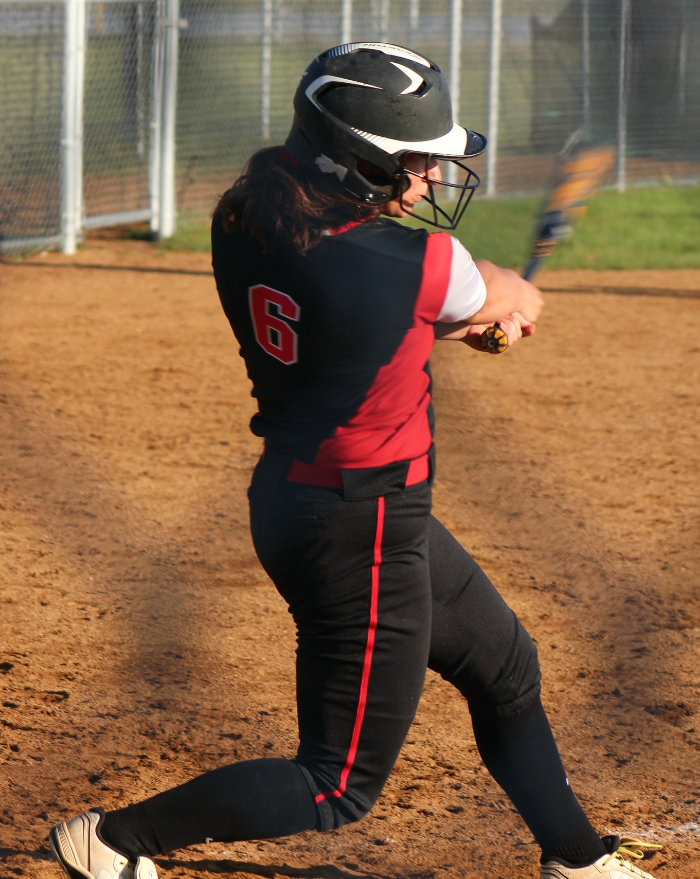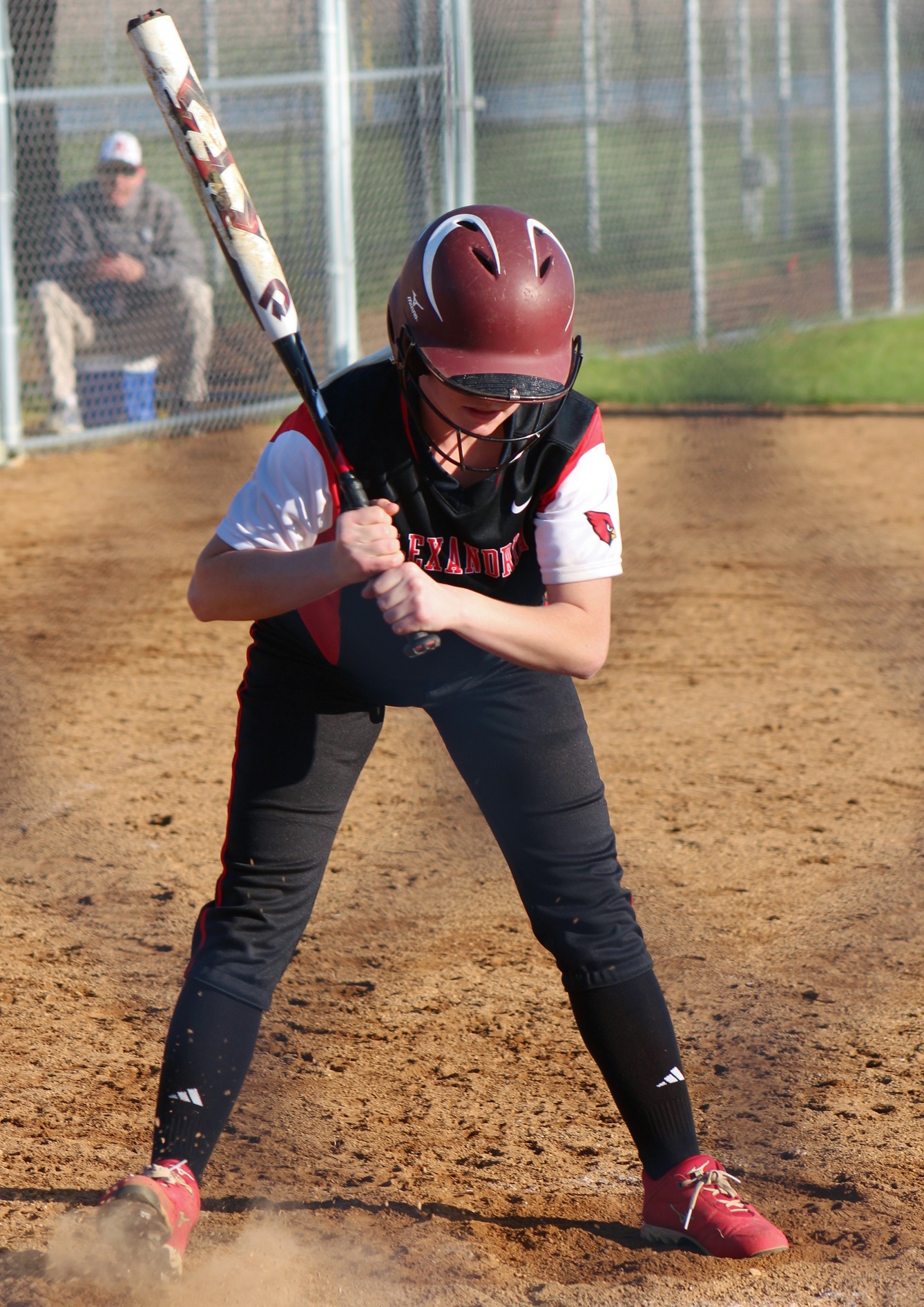 [Ellie Ronning, sophomore infielder, hit a nice line single to center here scoring Emma Ziegler, sophomore shortstop (and basketball), from 3rd. The Cards rallied with 2-run innings in the 4th, 5th, and 6th, that potentially could have been much more.]