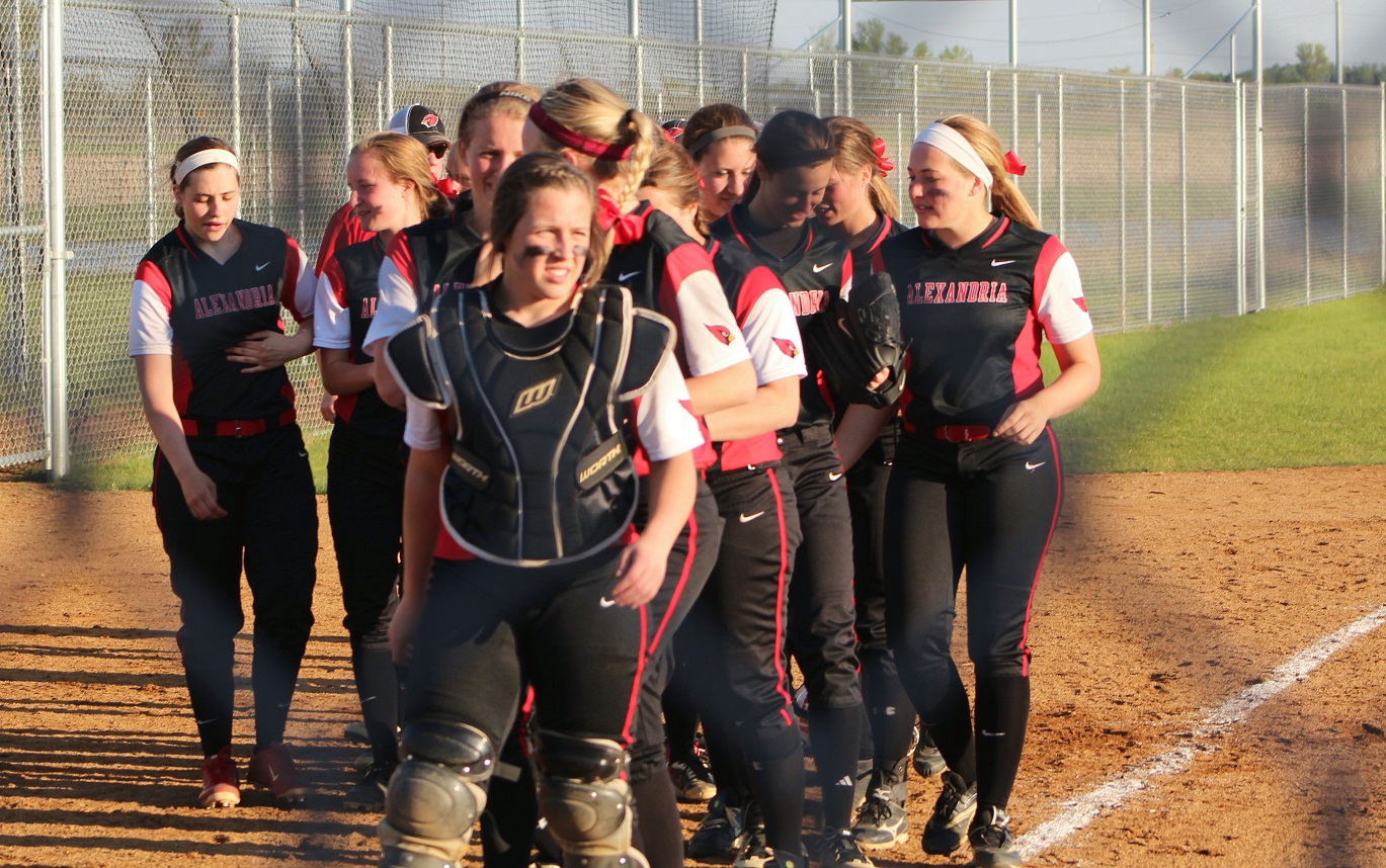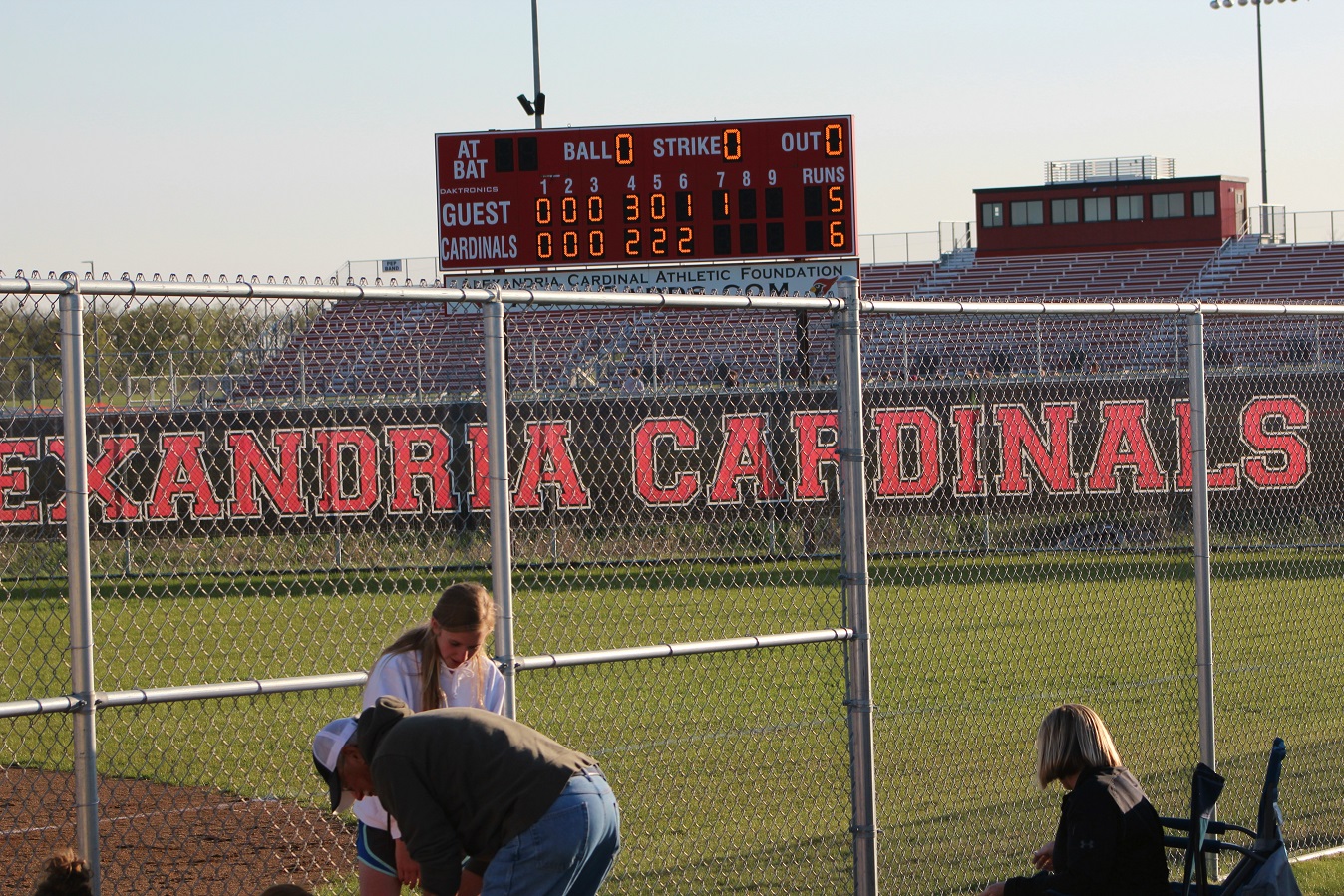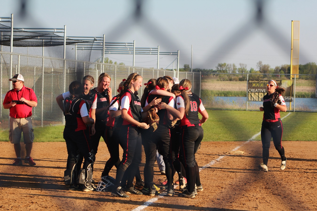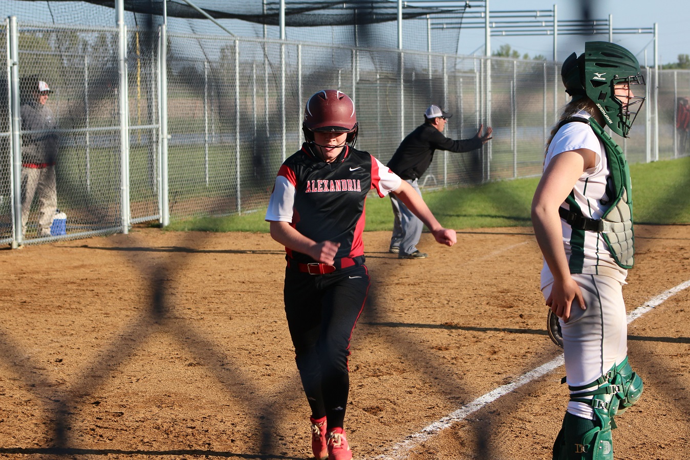 [Ellie Ronning, sophomore infielder, hit a nice line single to center here scoring Emma Ziegler, sophomore shortstop (and basketball), from 3rd. The Cards rallied with 2-run innings in the 4th, 5th, and 6th, that potentially could have been much more.]