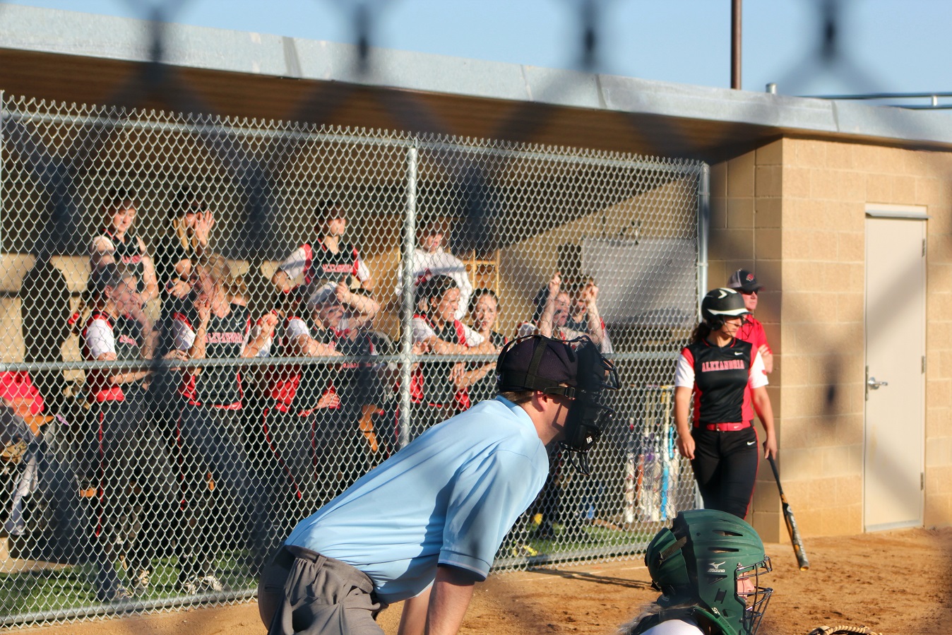 [Anna Lee, senior outfielder (and soccer and backetball)? Guessing ‘cuz I can’t see her number.]