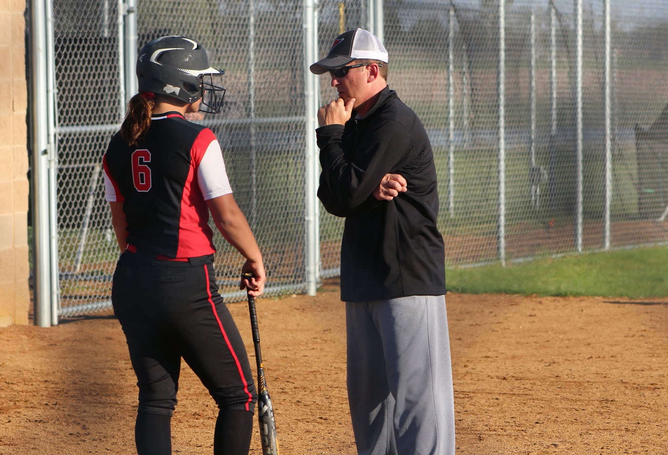 [Coach Albers addresses senior outfielder Carly Dropik (and basketball), suggesting she hit one where outfielders fear to tread.]