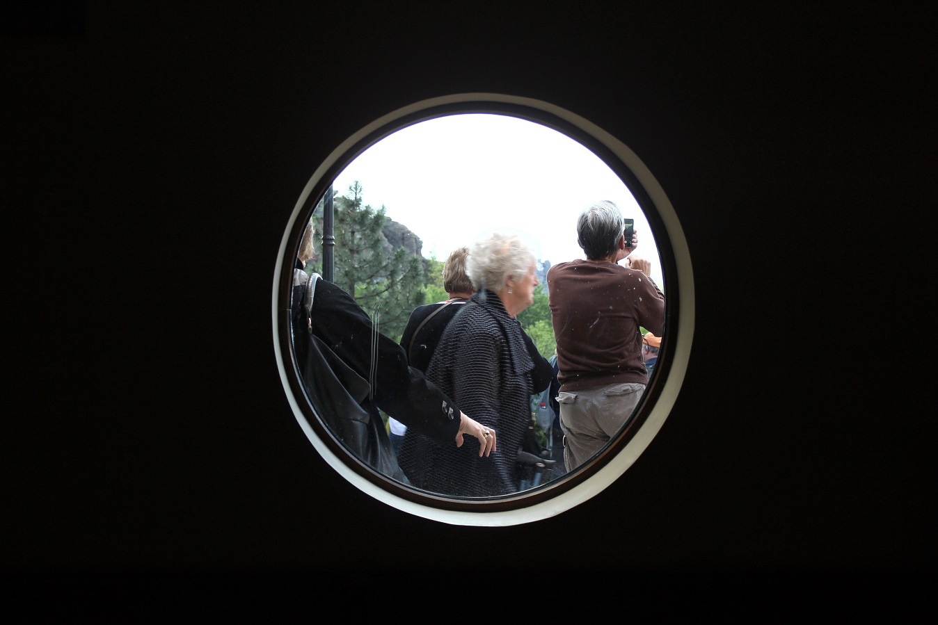 [No, not a ship porthole. We are in a Belogradchik 5-star hotel where we stopped for tea and crumpets and other things.]