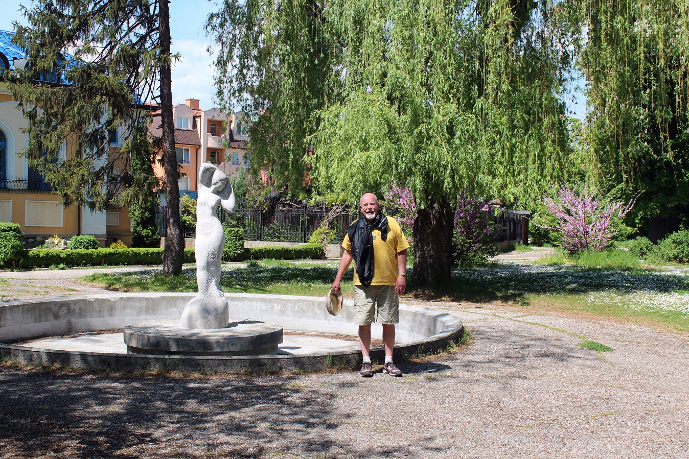 [After lunch, we did a walking tour of our port, Vidin (pop. 80,000), an ancient city that is allegedly the poorest in the EU. This was in a lovely Danube riverside park, but it does not receive any maintenance (by our Western standards). The further we go into the old Iron Curtain countries, the more we see the struggles to develop economically. Lots of abandoned buildings or buildings, such as the synagogue (five photos below) , where there is no money for restoration. The unemployment rate in Bulgaria is 25 per cent.]