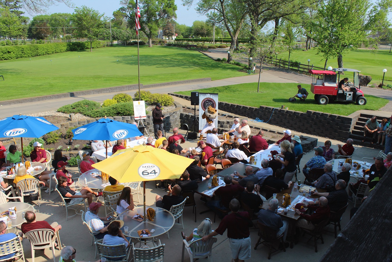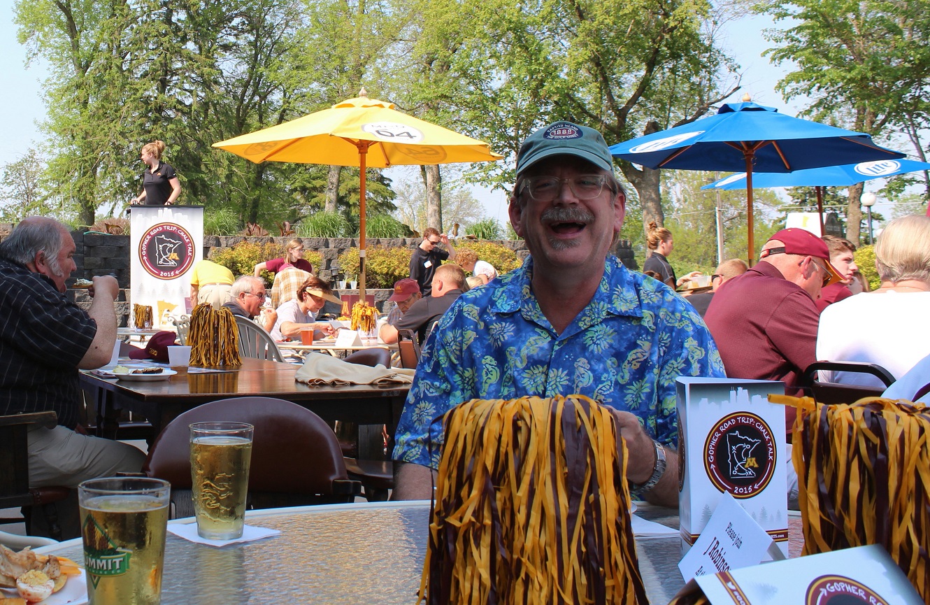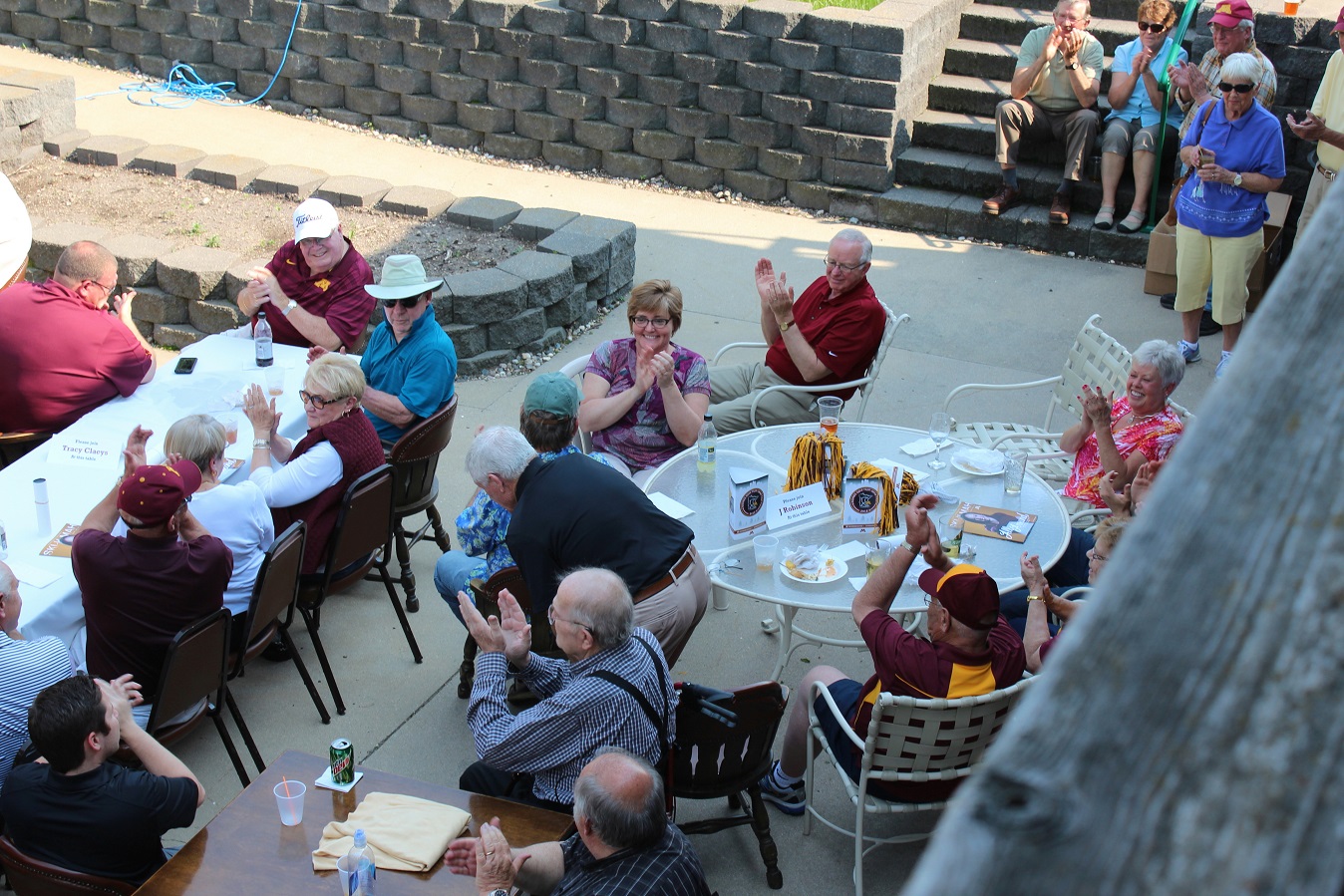 Addendum: We received the following photos of Goldy Gopher with some lady at the event. Thanks to Shawn Ostendorf, of the local UMAA chapter board of directors, for taking the photos. And in the background of the last Goldy picture, we see the new CEO of the beverage cart, Cardinal alum, class of 2014, Emily Kuennen. We got a chance to visit; you may recall Emily’s exploits for the Cards in softball and volleyball.