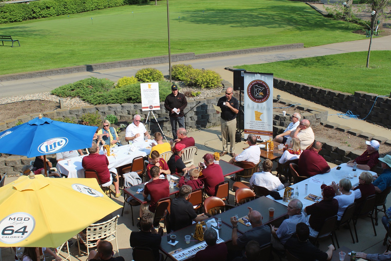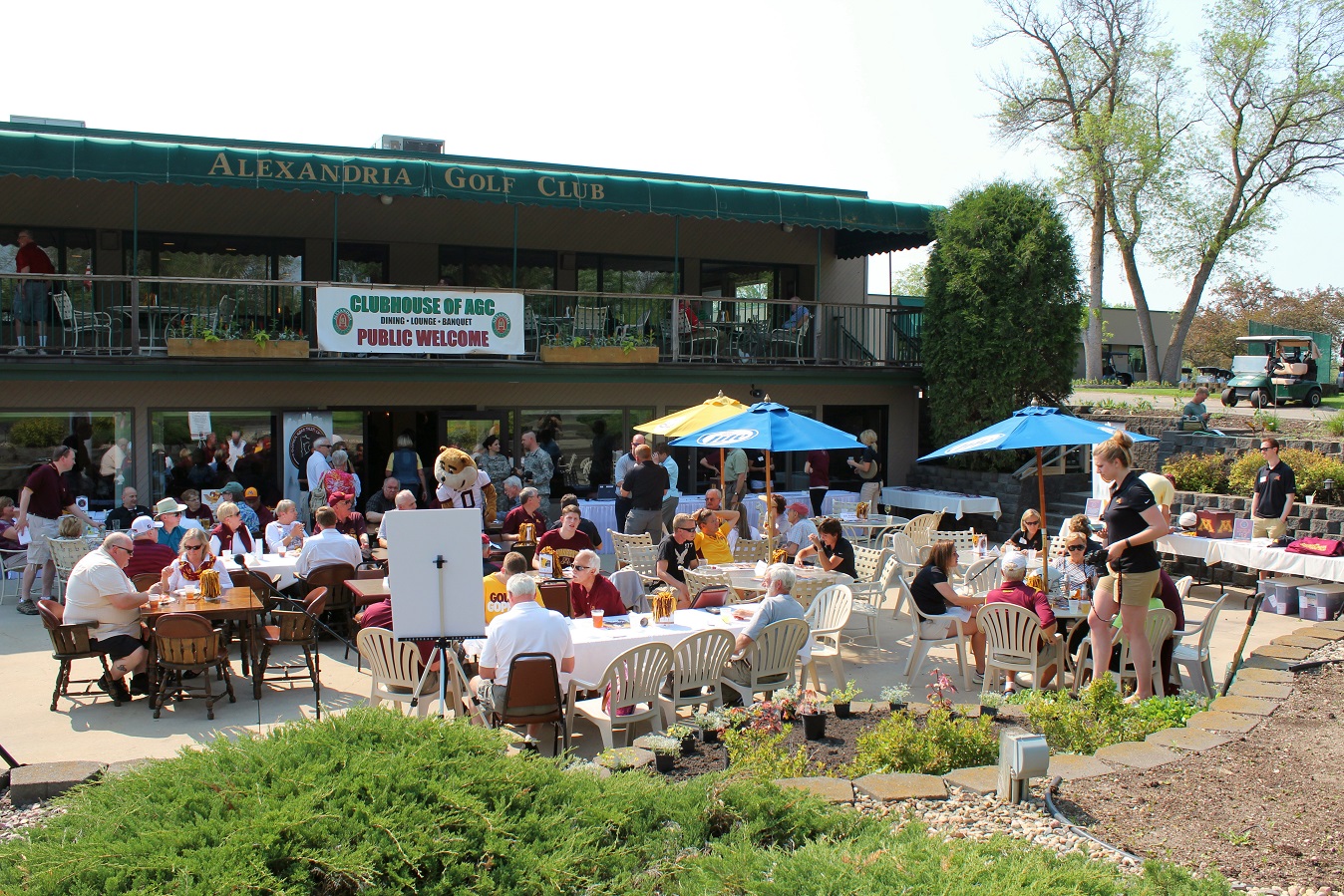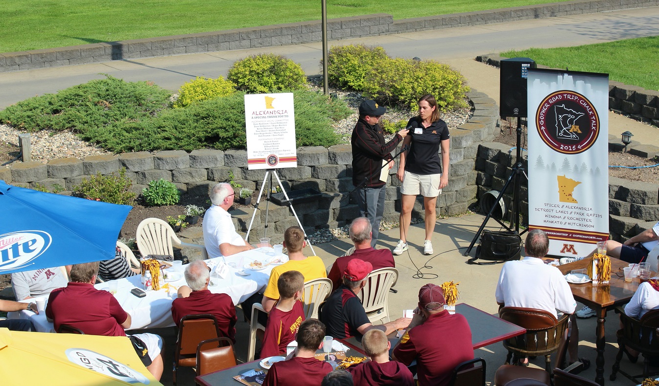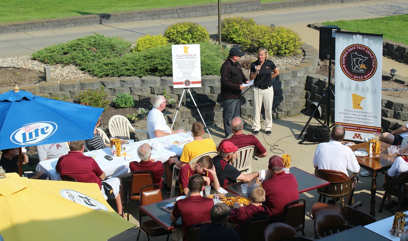 Addendum: We received the following photos of Goldy Gopher with some lady at the event. Thanks to Shawn Ostendorf, of the local UMAA chapter board of directors, for taking the photos. And in the background of the last Goldy picture, we see the new CEO of the beverage cart, Cardinal alum, class of 2014, Emily Kuennen. We got a chance to visit; you may recall Emily’s exploits for the Cards in softball and volleyball.