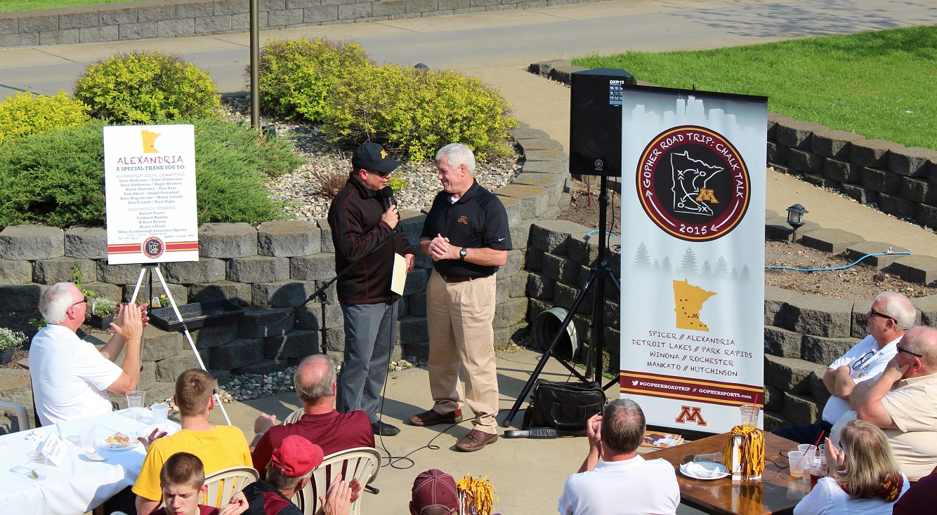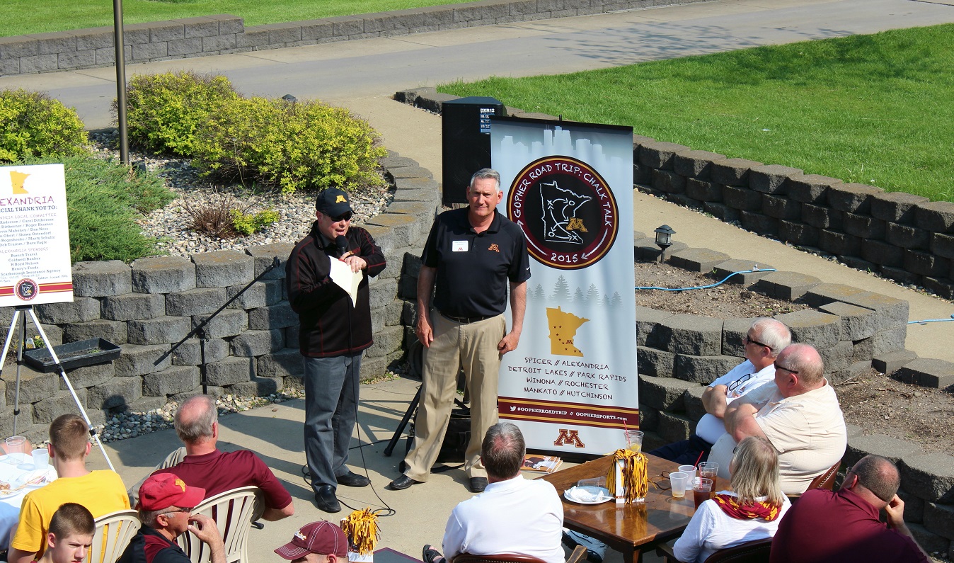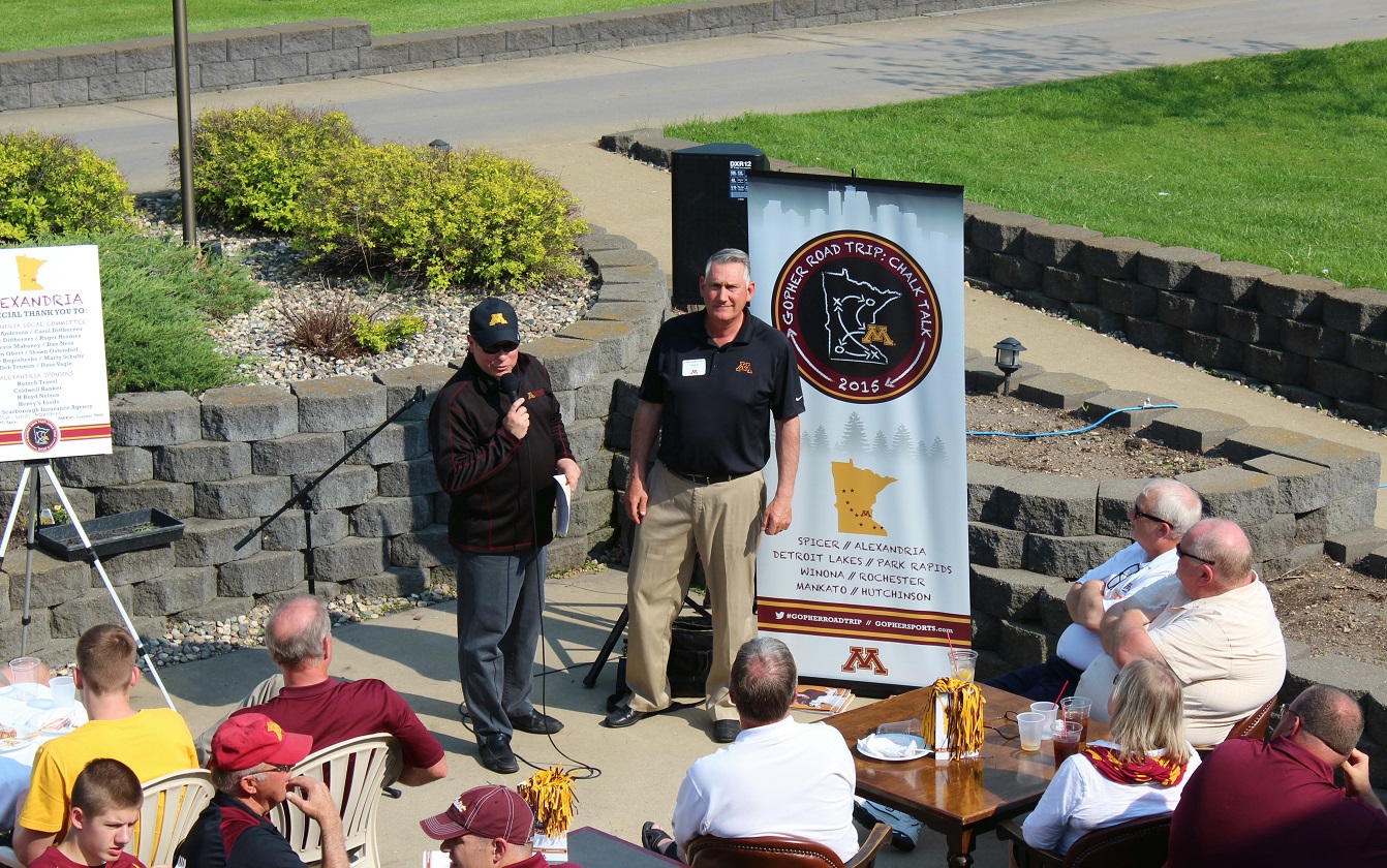 [Athletic Director Norwood Teague leads off the program and introduces the coaches – here assistant football coach Tracy Claeys.]