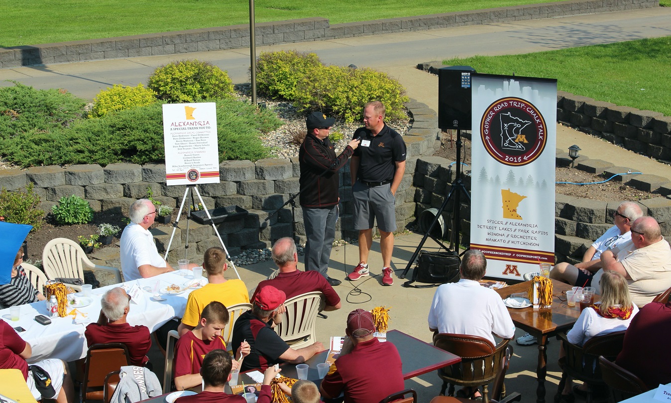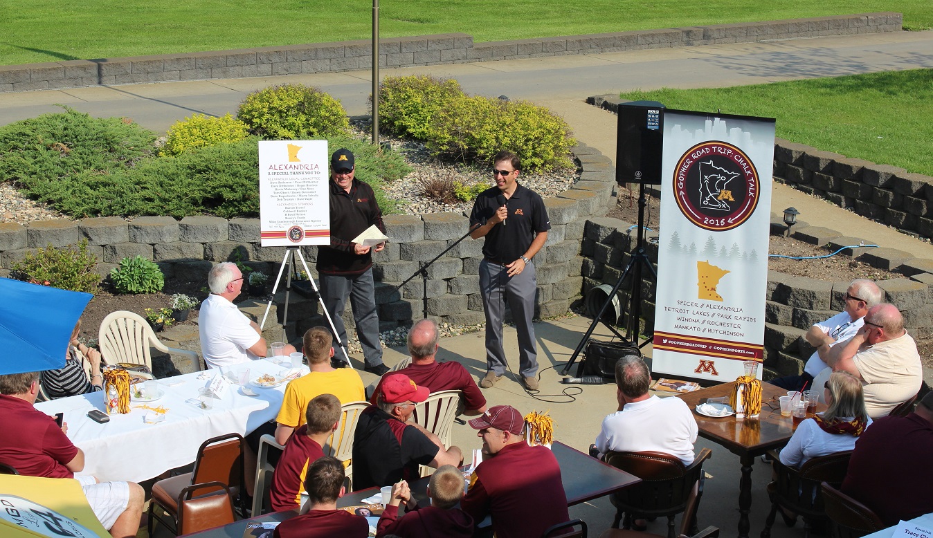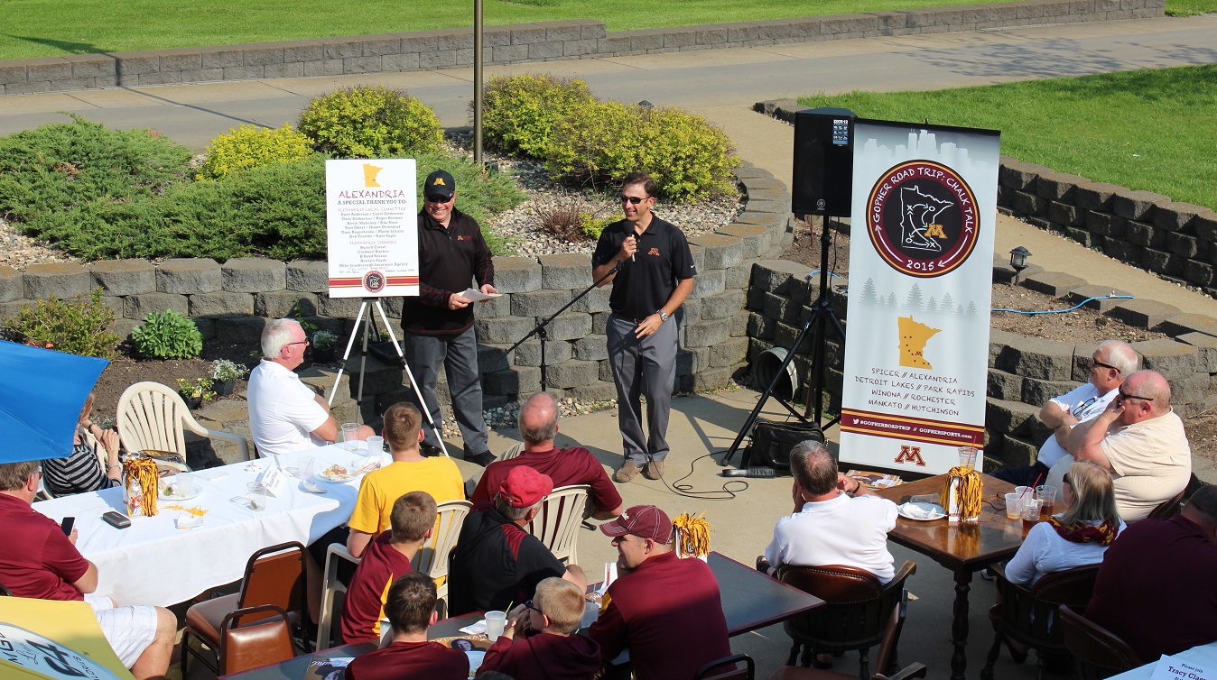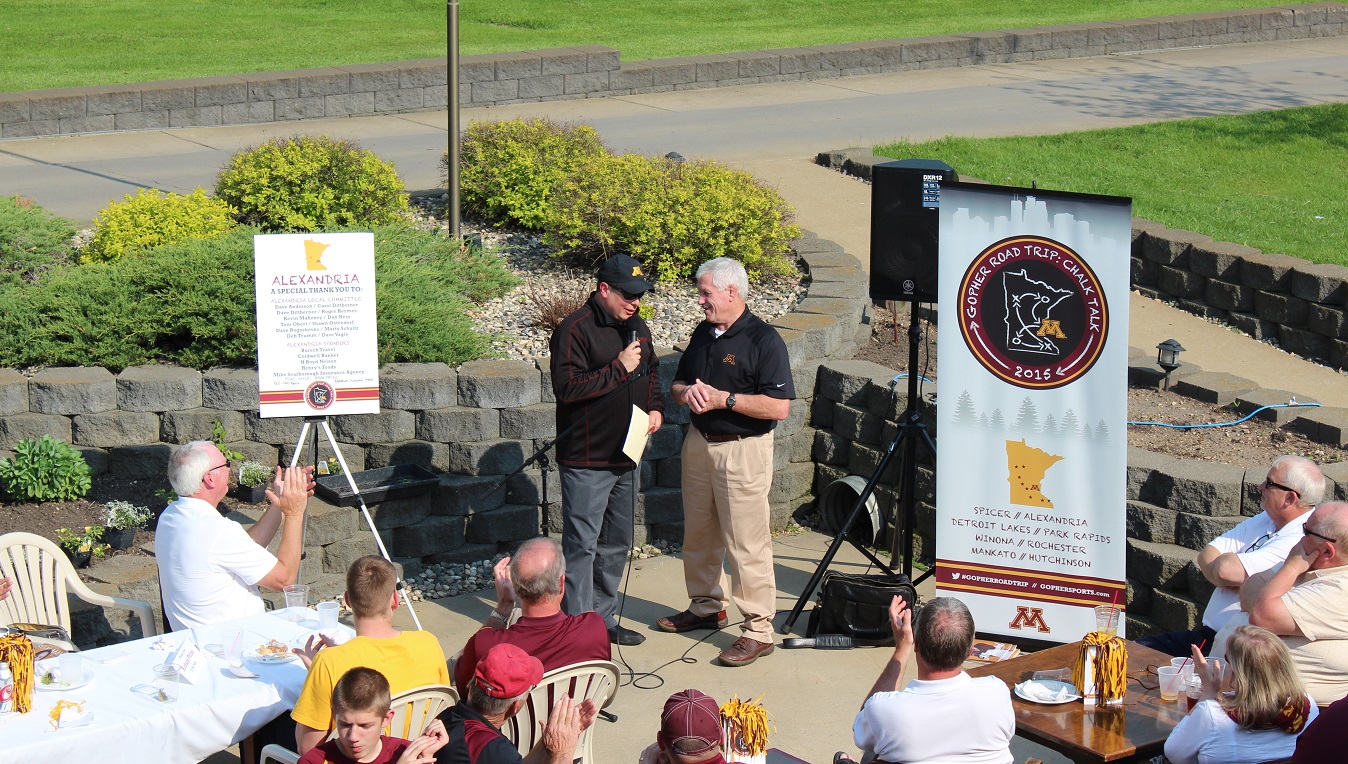 [Athletic Director Norwood Teague leads off the program and introduces the coaches – here assistant football coach Tracy Claeys.]