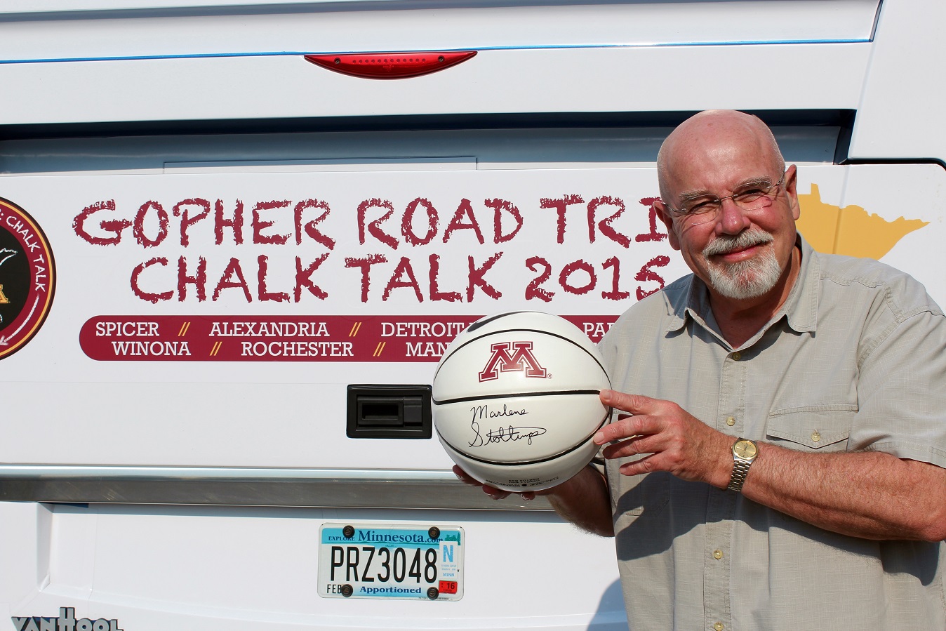 [An old alum (both of Alex and the ‘U’), who just happened to be the first execute a 360 slam dunk in a sanctioned game (OK, I could touch the bottom of the net), won a ball signed by women’s basketball coach Marlene Stollings. Thanks coach, we hope to be down for a game or two this year.]