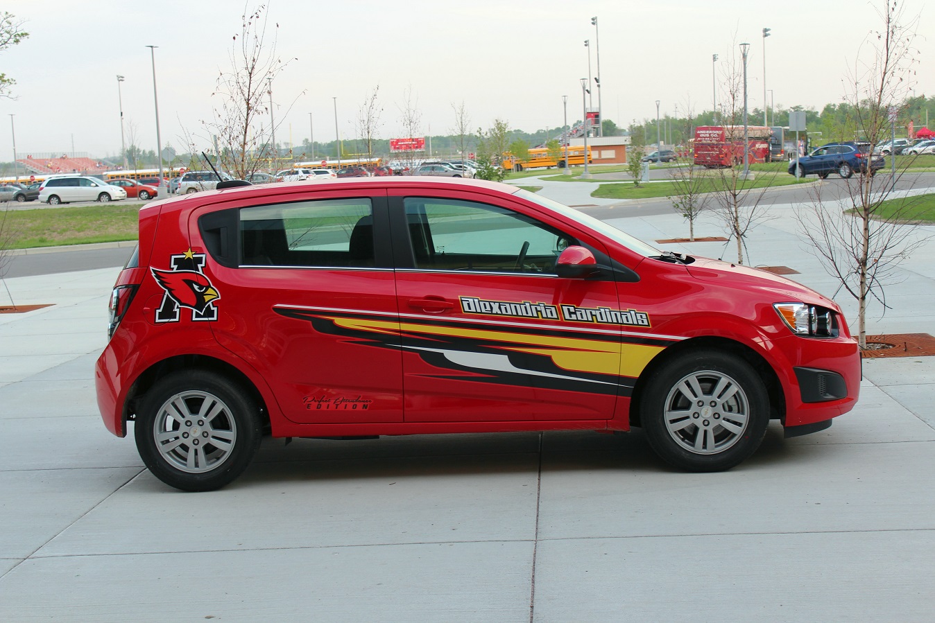 [We were greeted by the Cardinalmobile on the way out . . . and sadly noticed a lot of the trees planted here last fall (and on Broadway, incidentally) don’t appear to have survived the winter.]