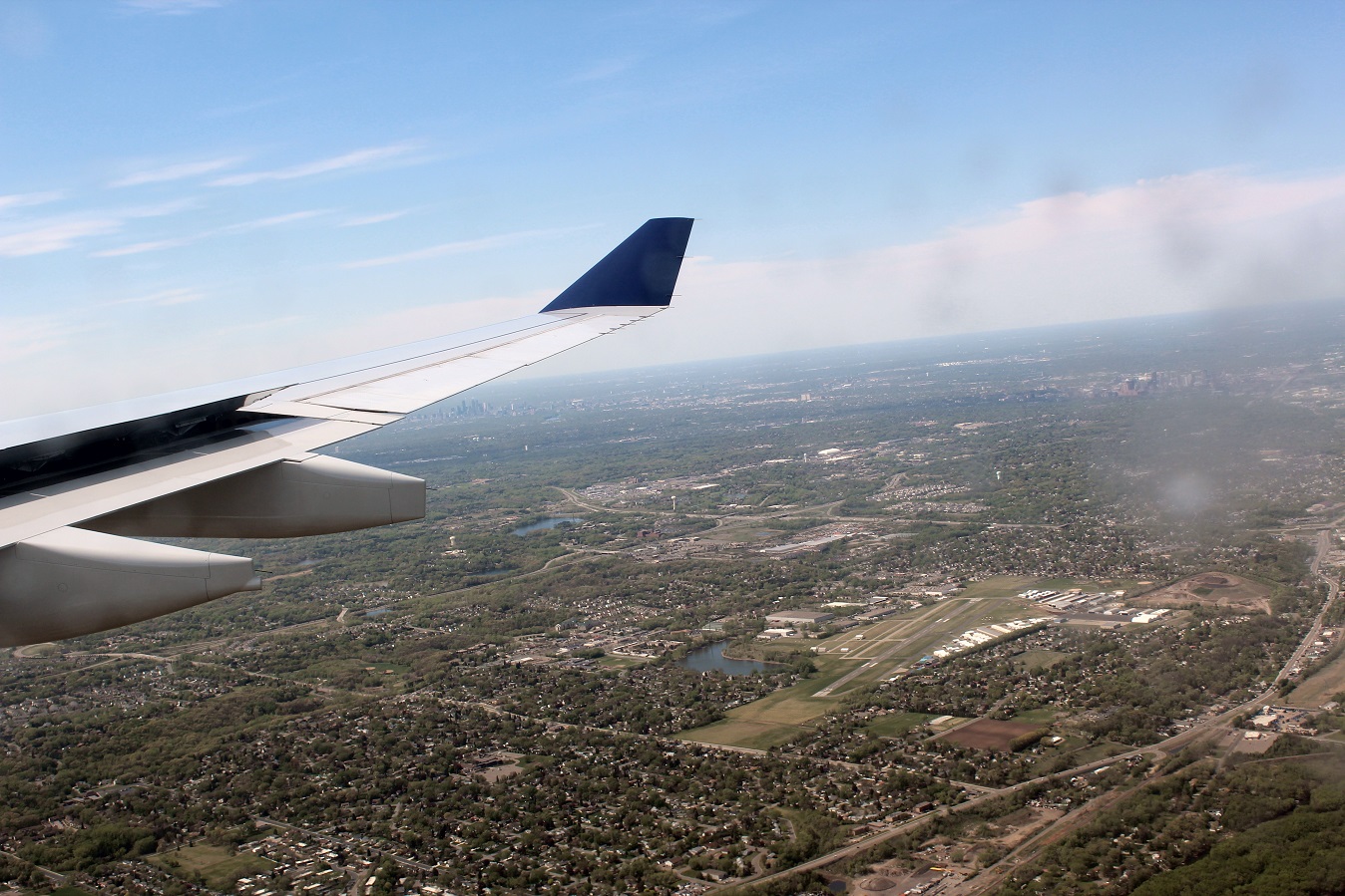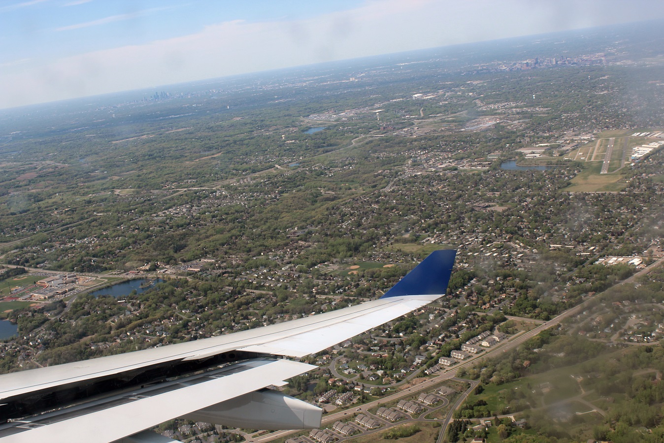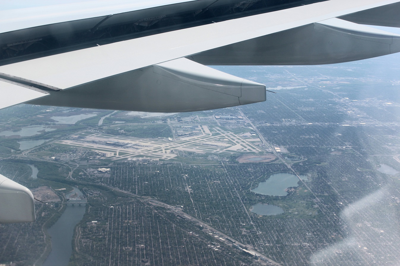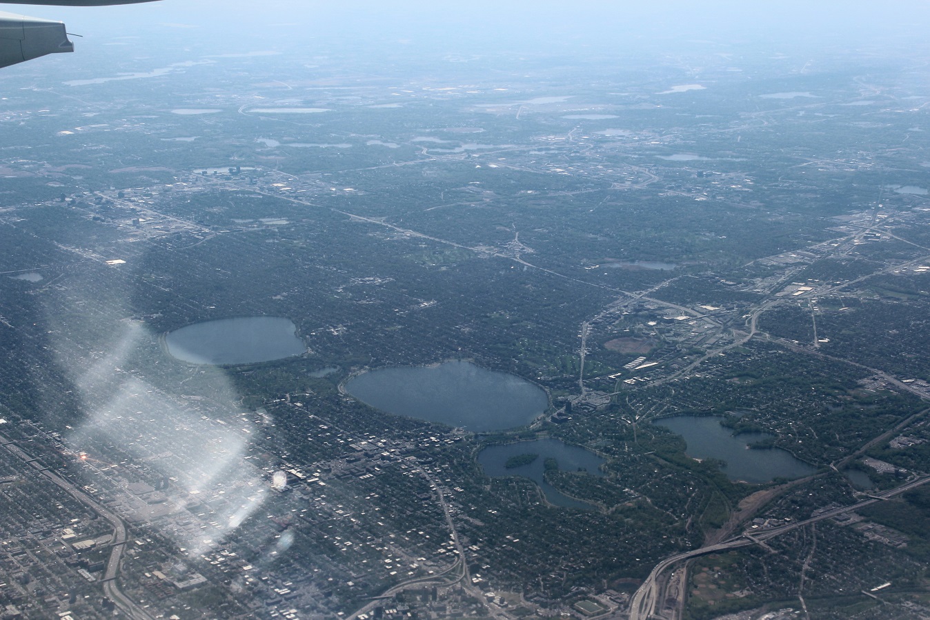 [Then over the Minneapolis Chain of Lakes, from l – r: Harriet, Calhoun, Lake of the Isles, and Cedar.]
