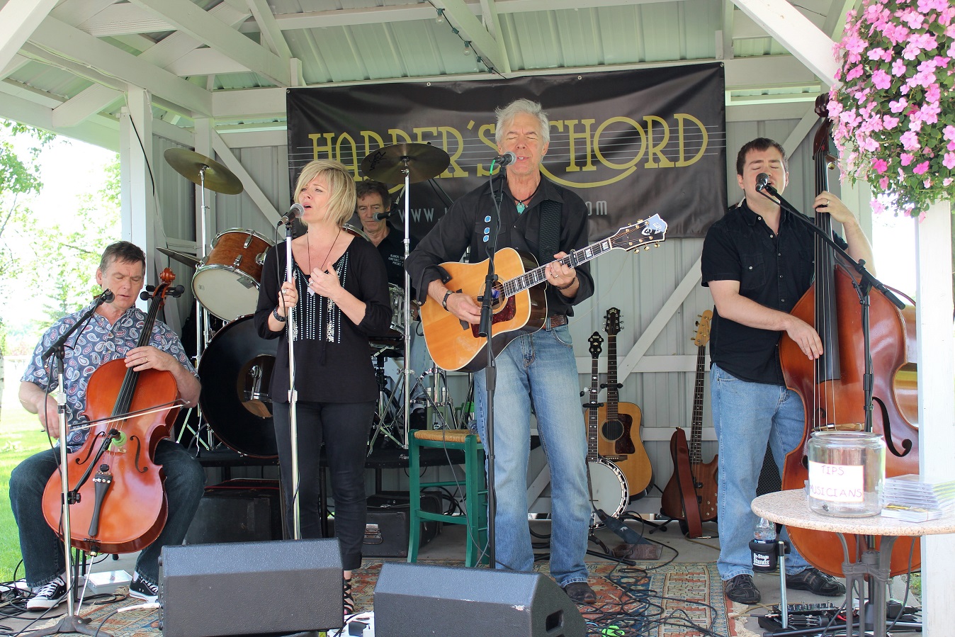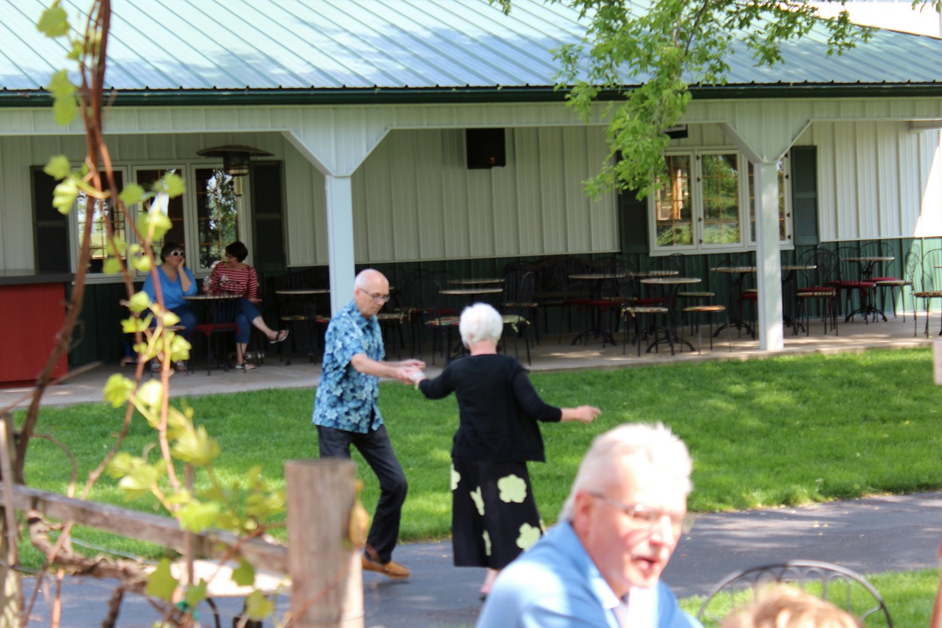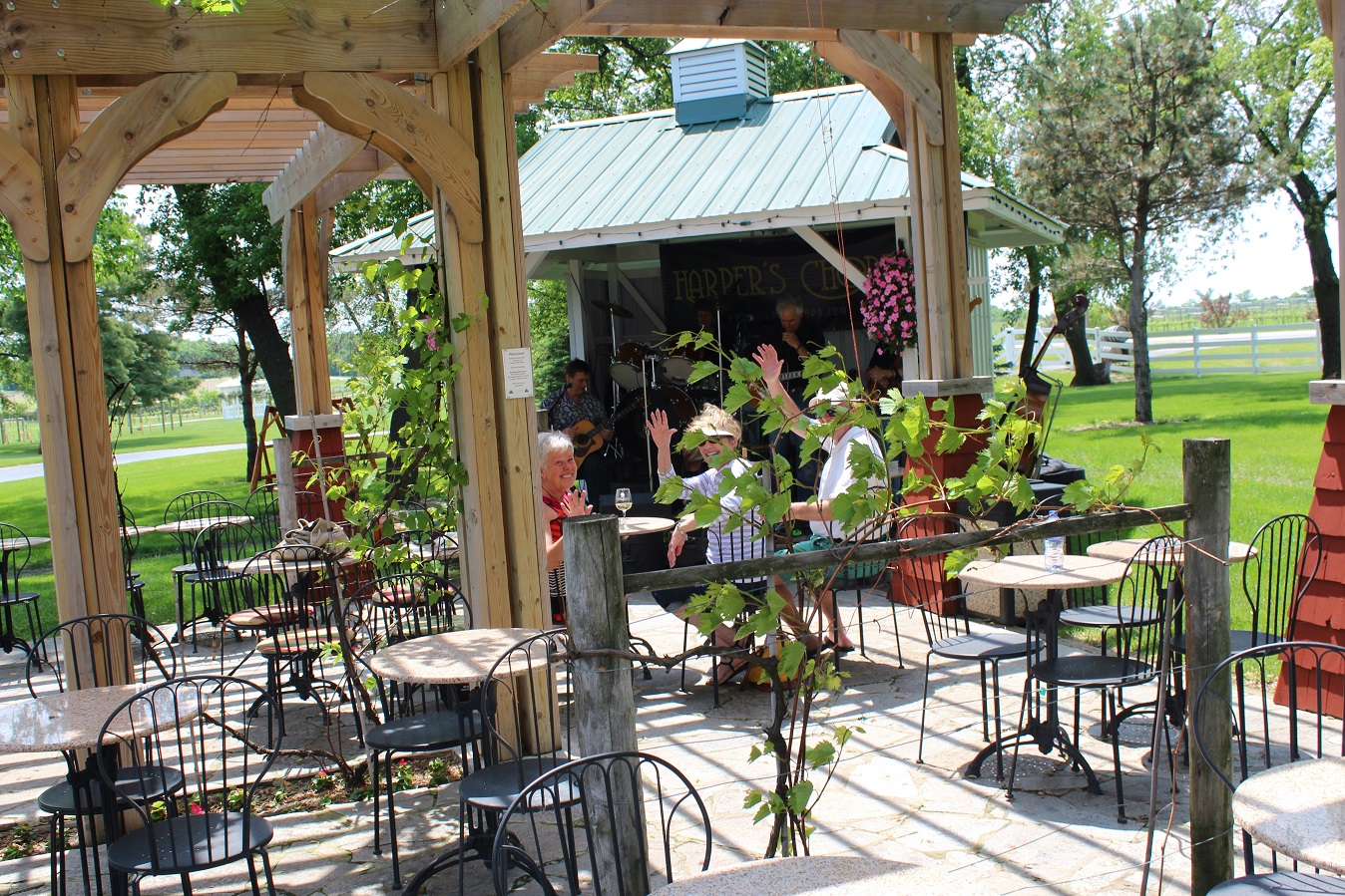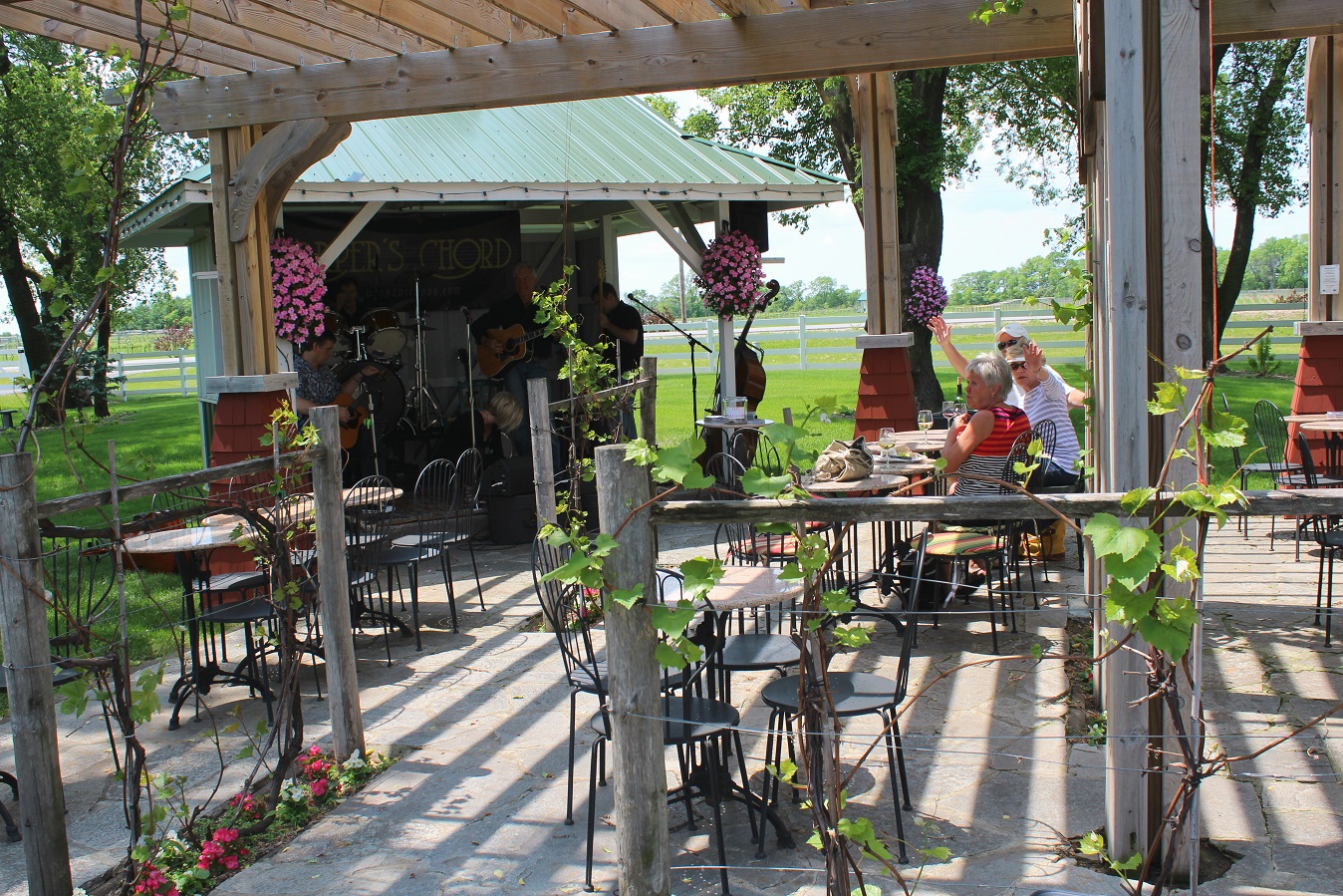 [Harper’s Chord was coming to town, thus expecting an overflow crowd at the winery! But for the first 45 minutes, the four of us usual regulars were treated to a private show! We thinks the 1:00 start fooled everyone – usually showtime begins at 2:00.]