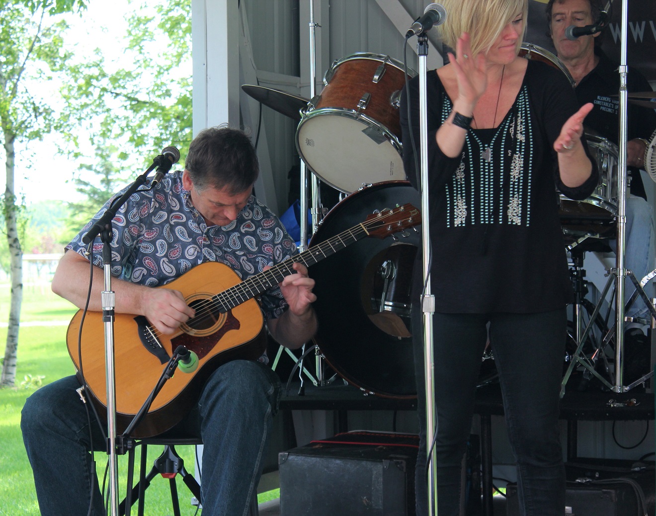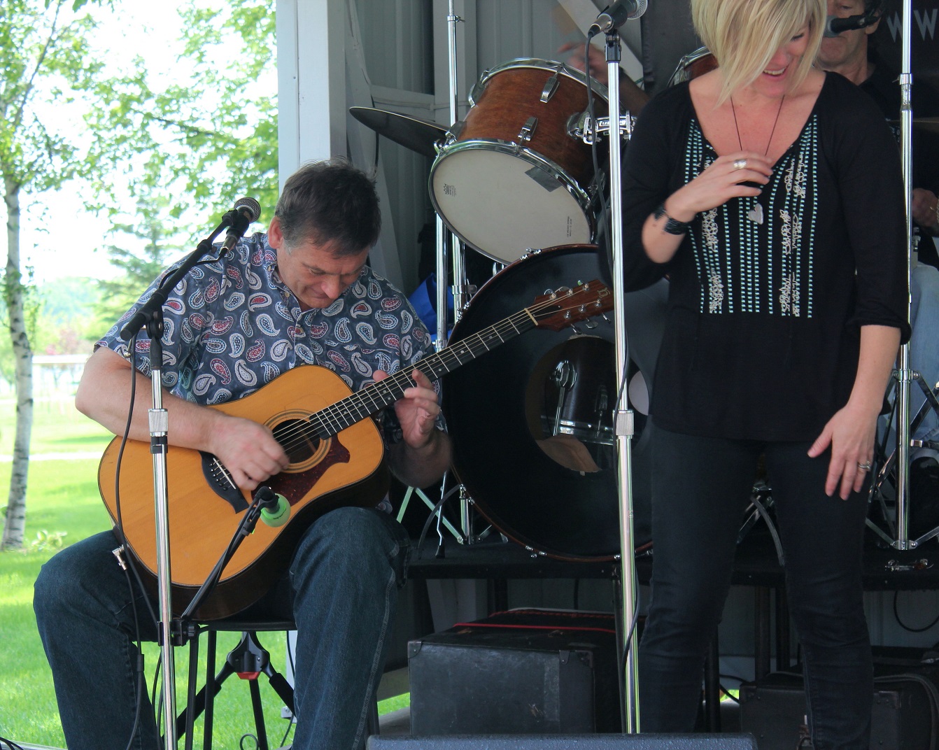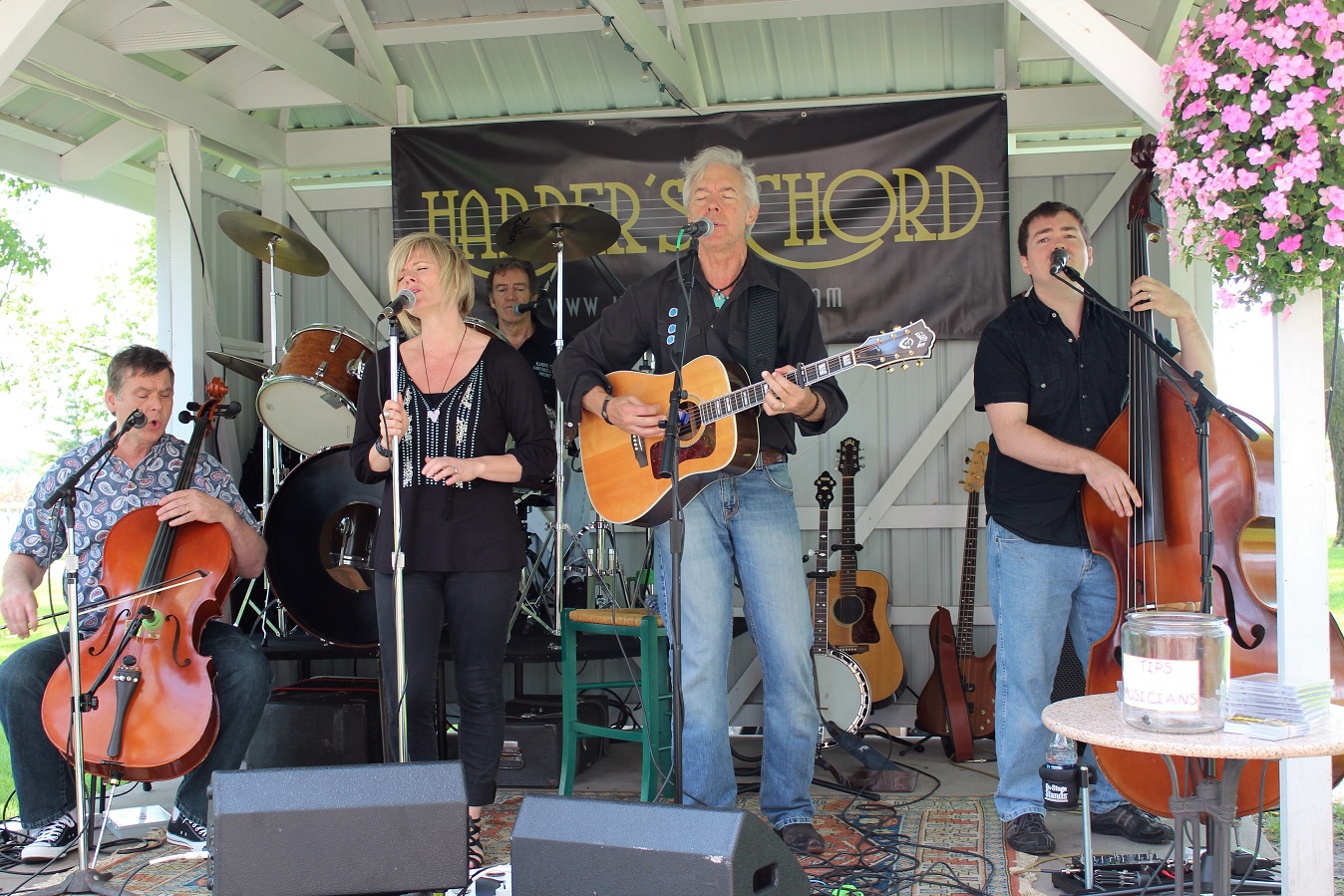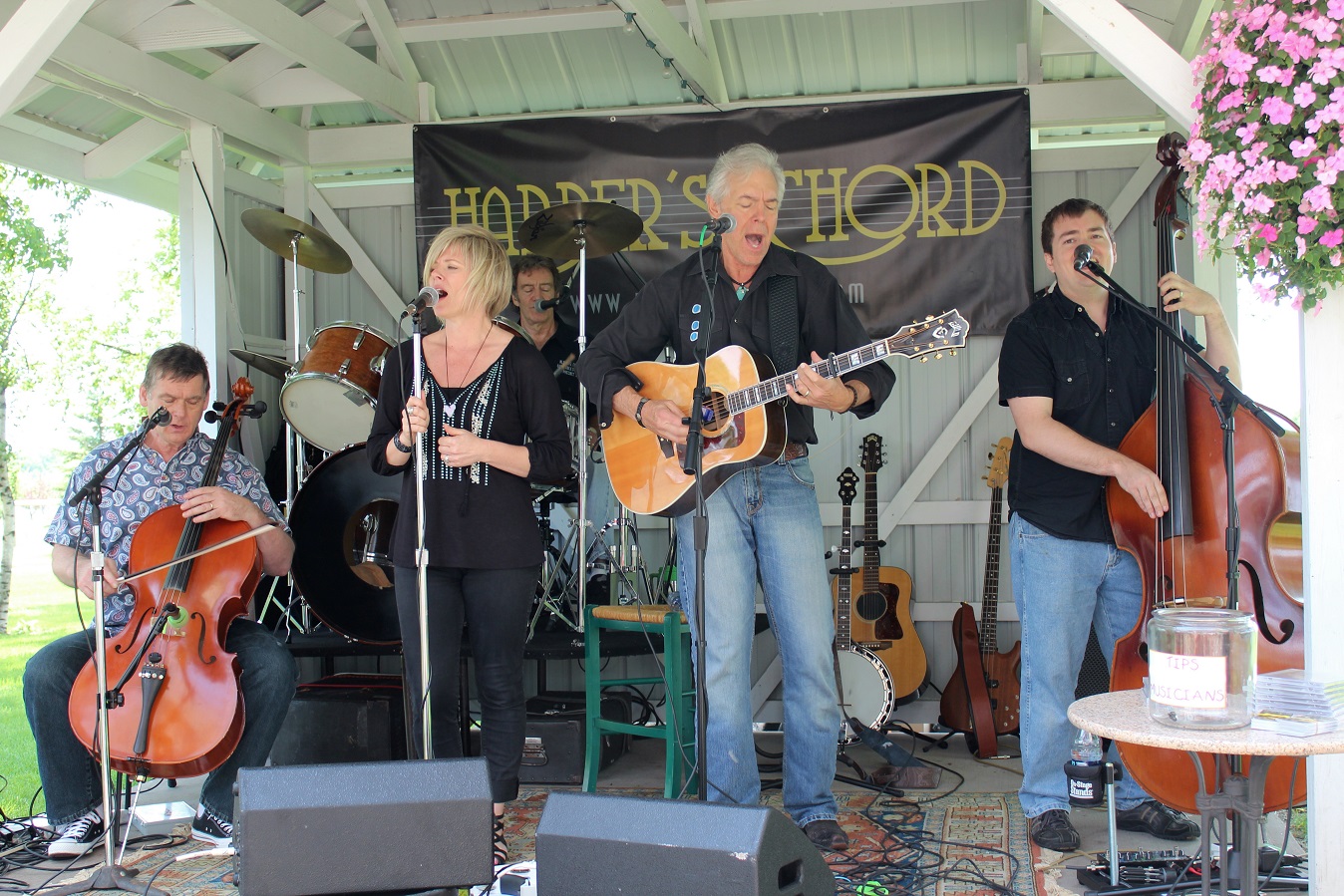 [Harper’s Chord was coming to town, thus expecting an overflow crowd at the winery! But for the first 45 minutes, the four of us usual regulars were treated to a private show! We thinks the 1:00 start fooled everyone – usually showtime begins at 2:00.]