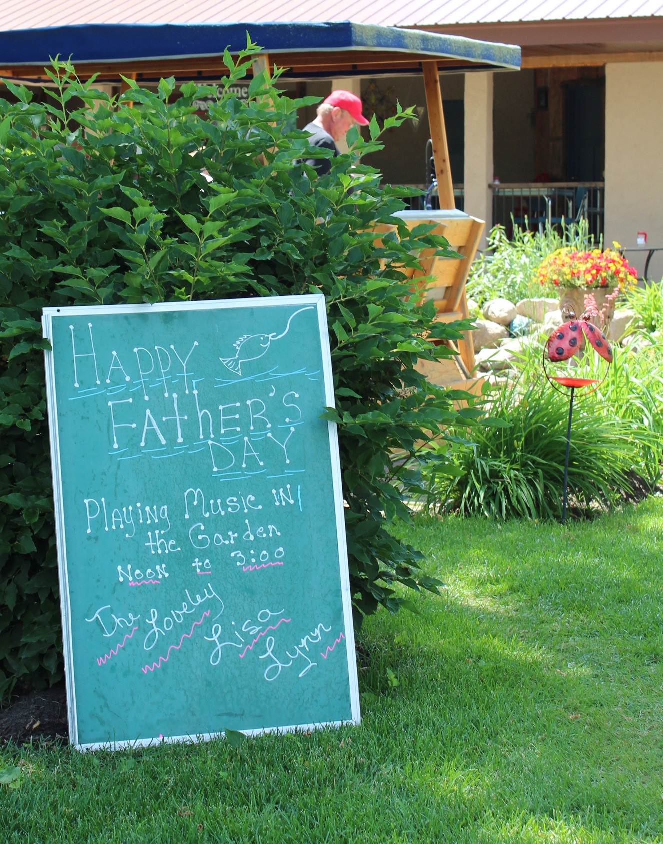 If you are blessed enough to be heading up to the Bowlus area to ride on the Soo Line bike trail and enjoy a fantastic brunch in the garden at Jordie’s Trail Side Cafe Sunday, you may see this (hair shorter now!) – I’ll be playing in the gorgeous and really special garden 12-3. Miracles happen here….I’d stop by if I were you. ~ Lisa
