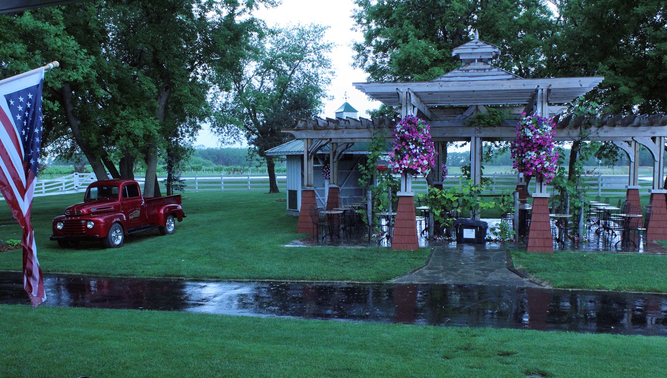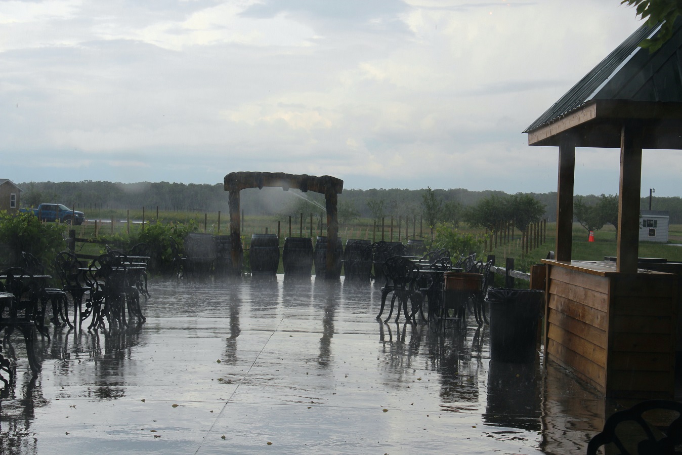 [It rained here too, but it was a marvelous show that we hope will be reprised in other venues.]