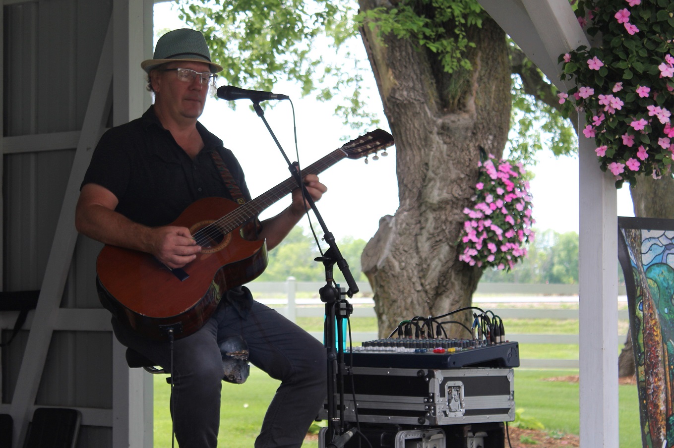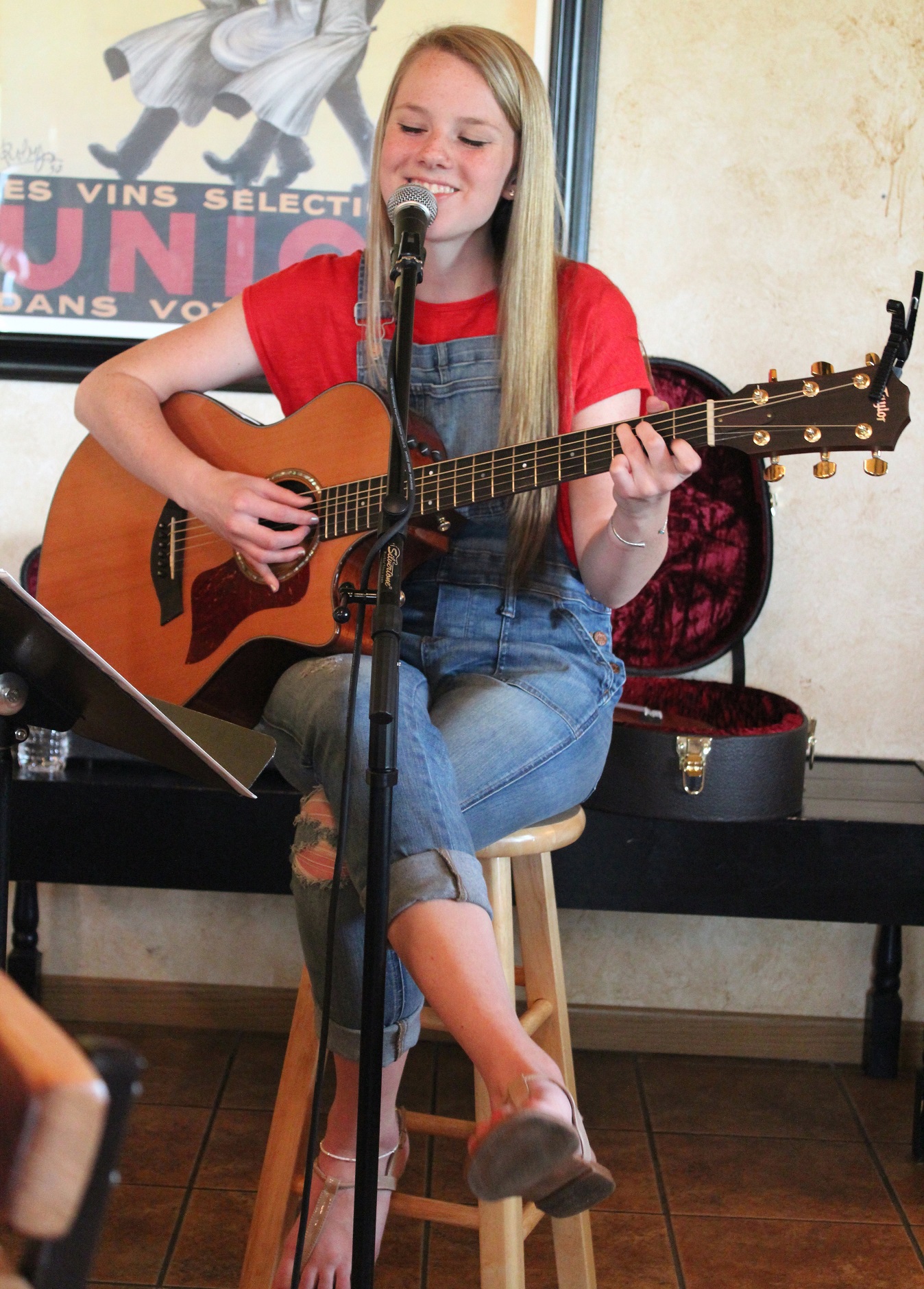 [We laugh because it always seems she hits bad weather when she performs here. She started setting up outside but then moved in when the weather arrived.]
