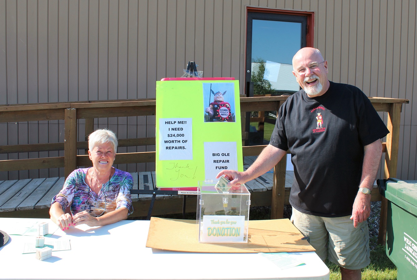 [The Cub Reporter makes his contribution to save Big Ole. Is this photo proof enough for the IRS?]