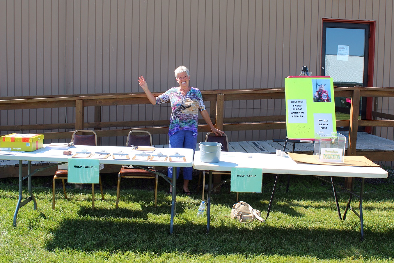 [So, we were here at 9:00 am to help. It didn’t rain, but it was hot! Oh, and Big Ole is 50 years old now and needs a complete makeover. I know I needed a makeover at 50!!]