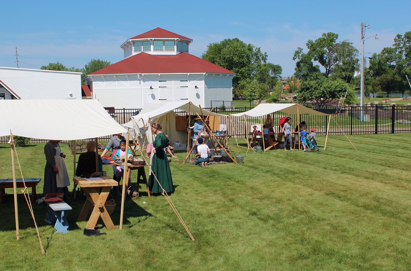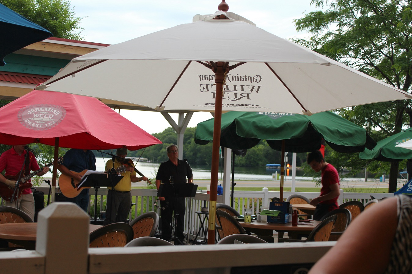 [A short stop at City Park, first looking across at whence we came where they were now setting up for Ribfest.]