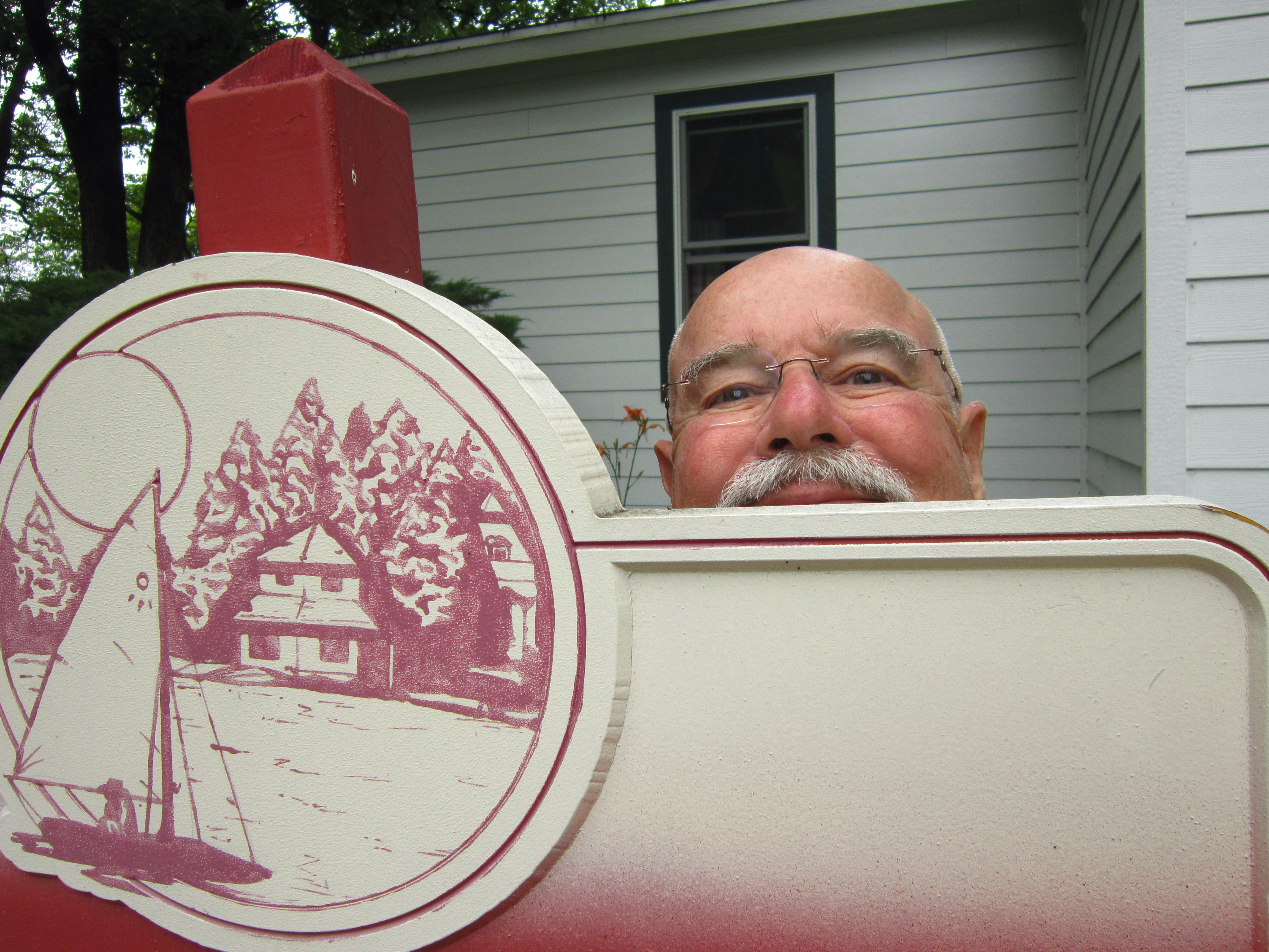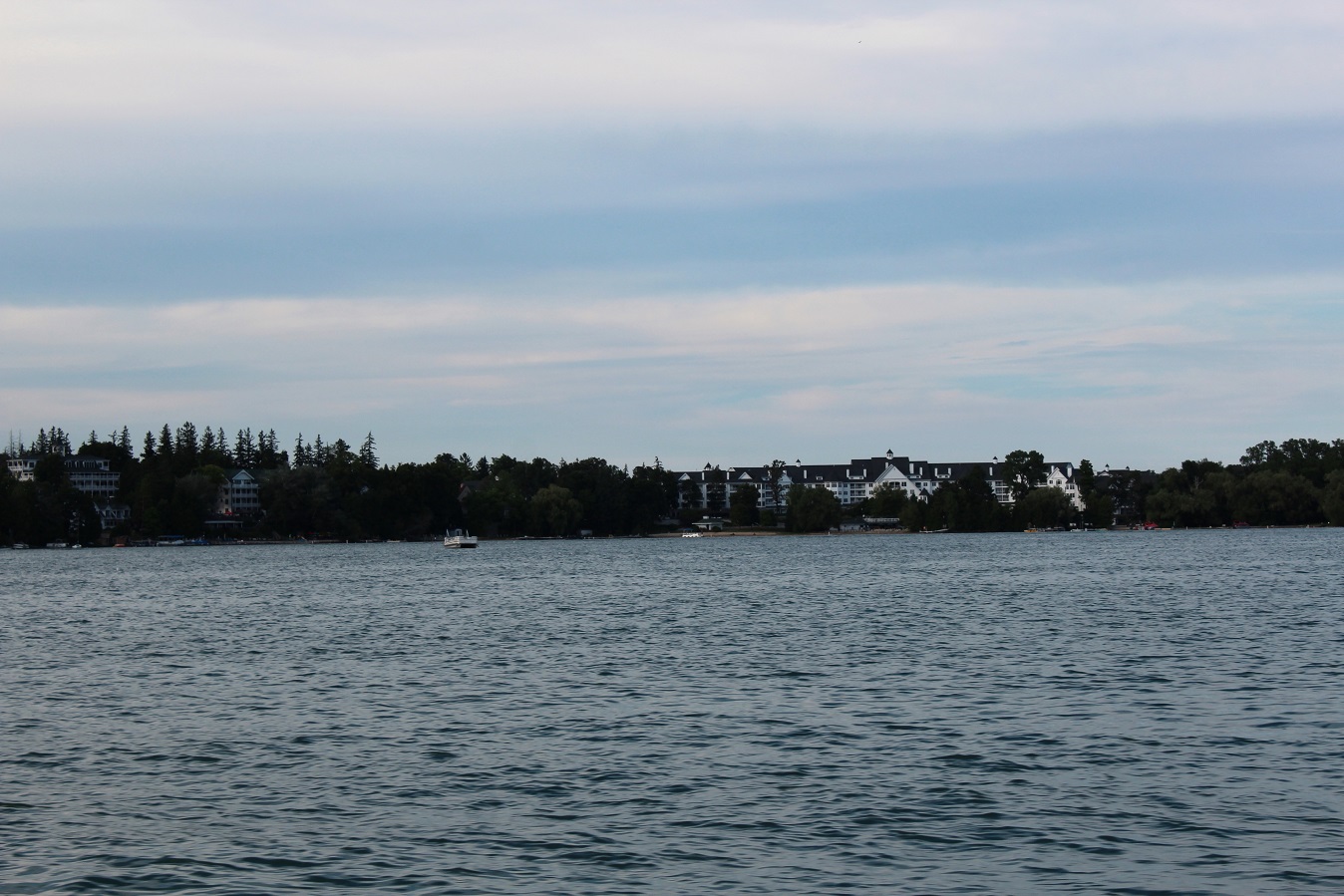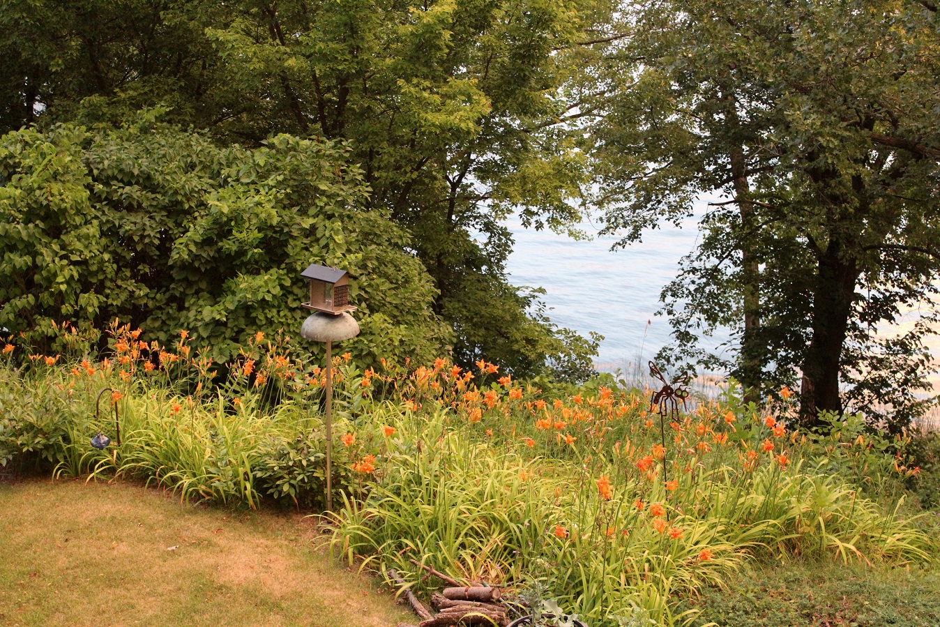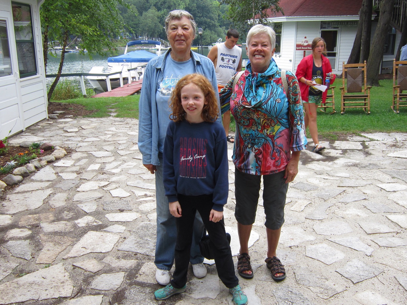[Shooting over Chris and Beth, deniece and denephew, is the Johnsonville Brat mansion, home of my favorite lake walk sculpture.]