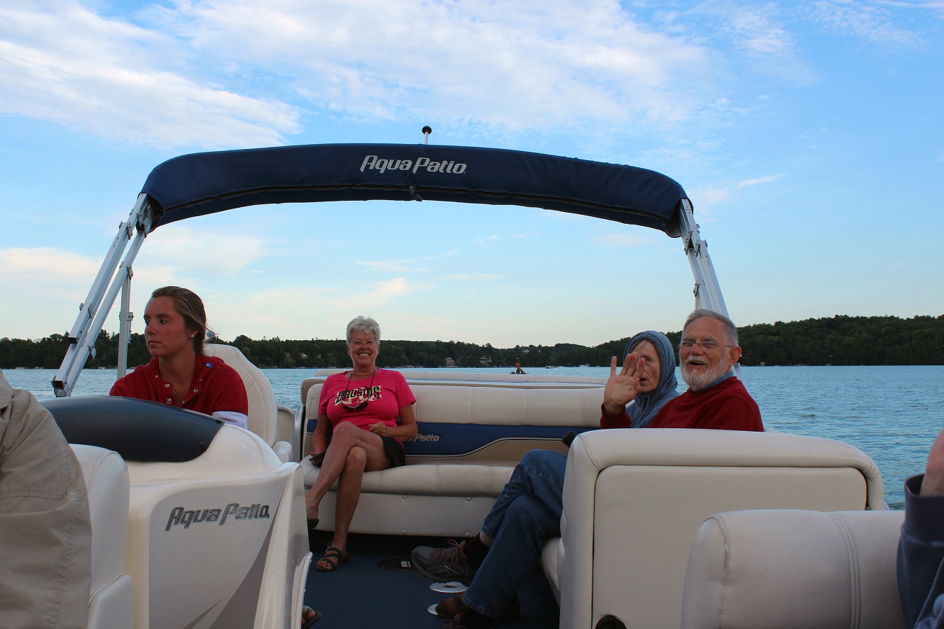 [The evening led to our annual pontoon ride around the lake.  Our driver was Andi.]