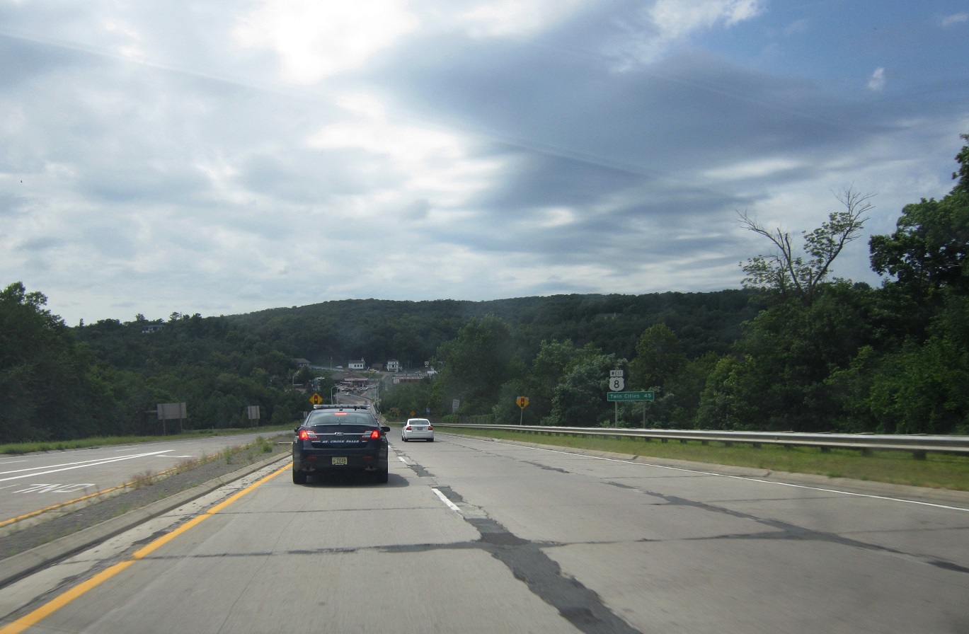 [Crossing the St. Croix River from St. Croix Falls to Taylors Falls, where we noshed at the Drive-In on the Minnesota side.]
