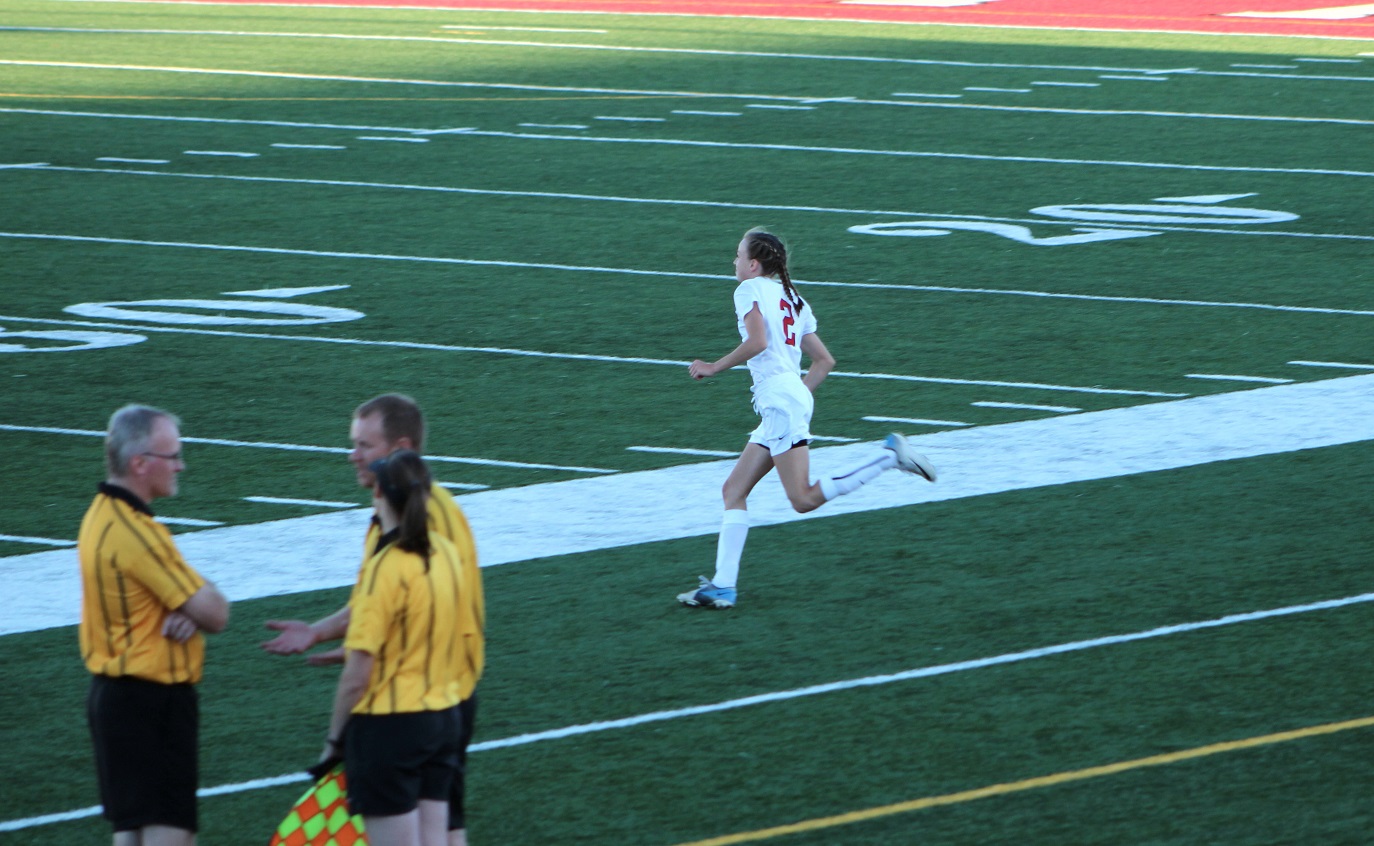 [Granning in for junior midfielder McKenna Smith (16). I do not know enough about high school soccer to understand substitutions – there seem to be no restrictions?]