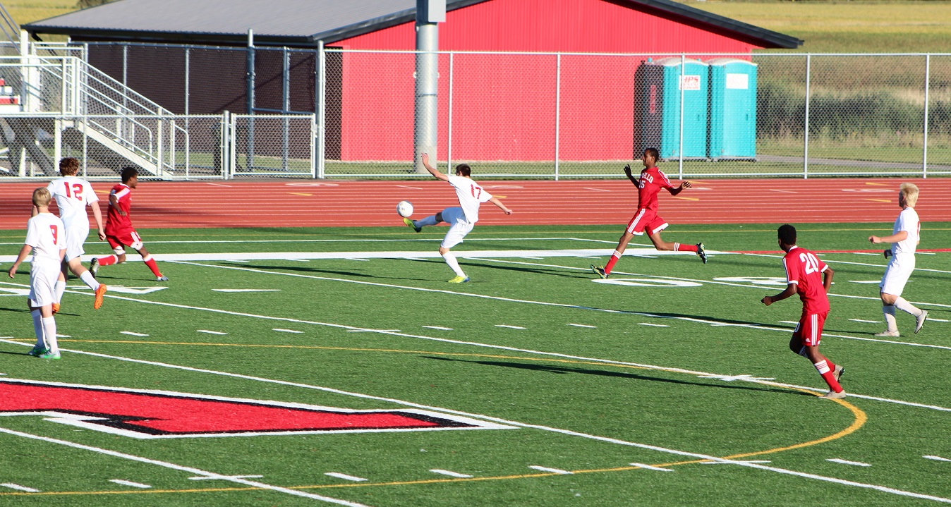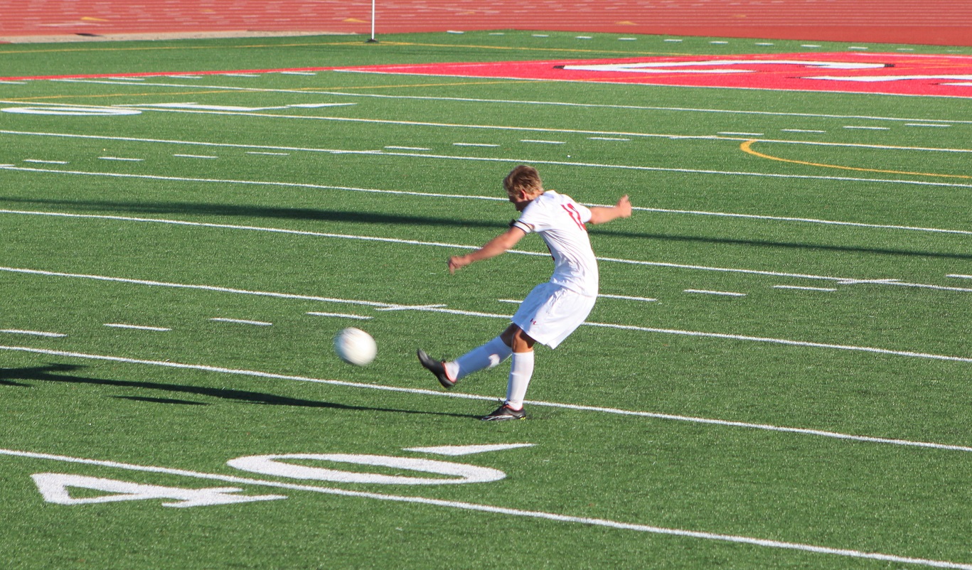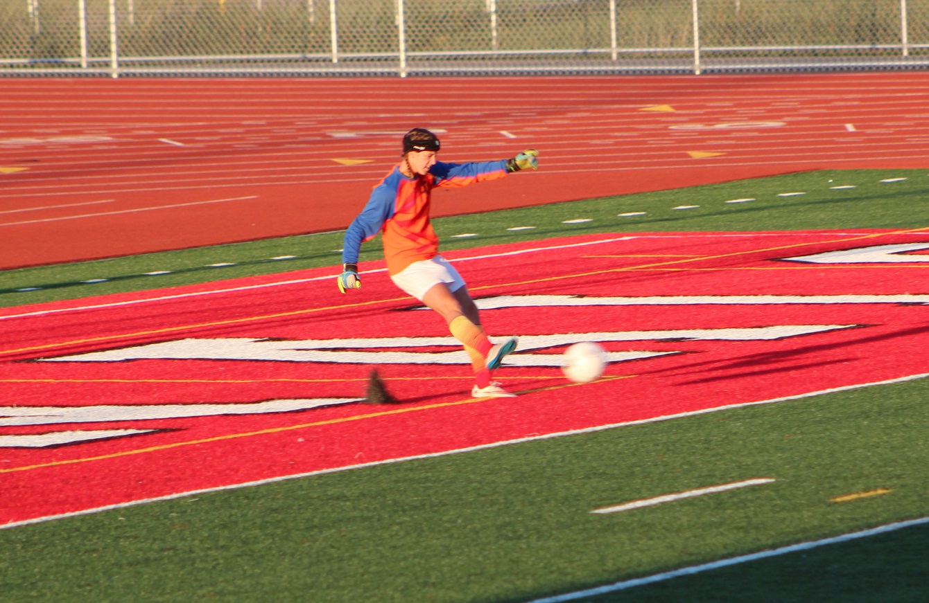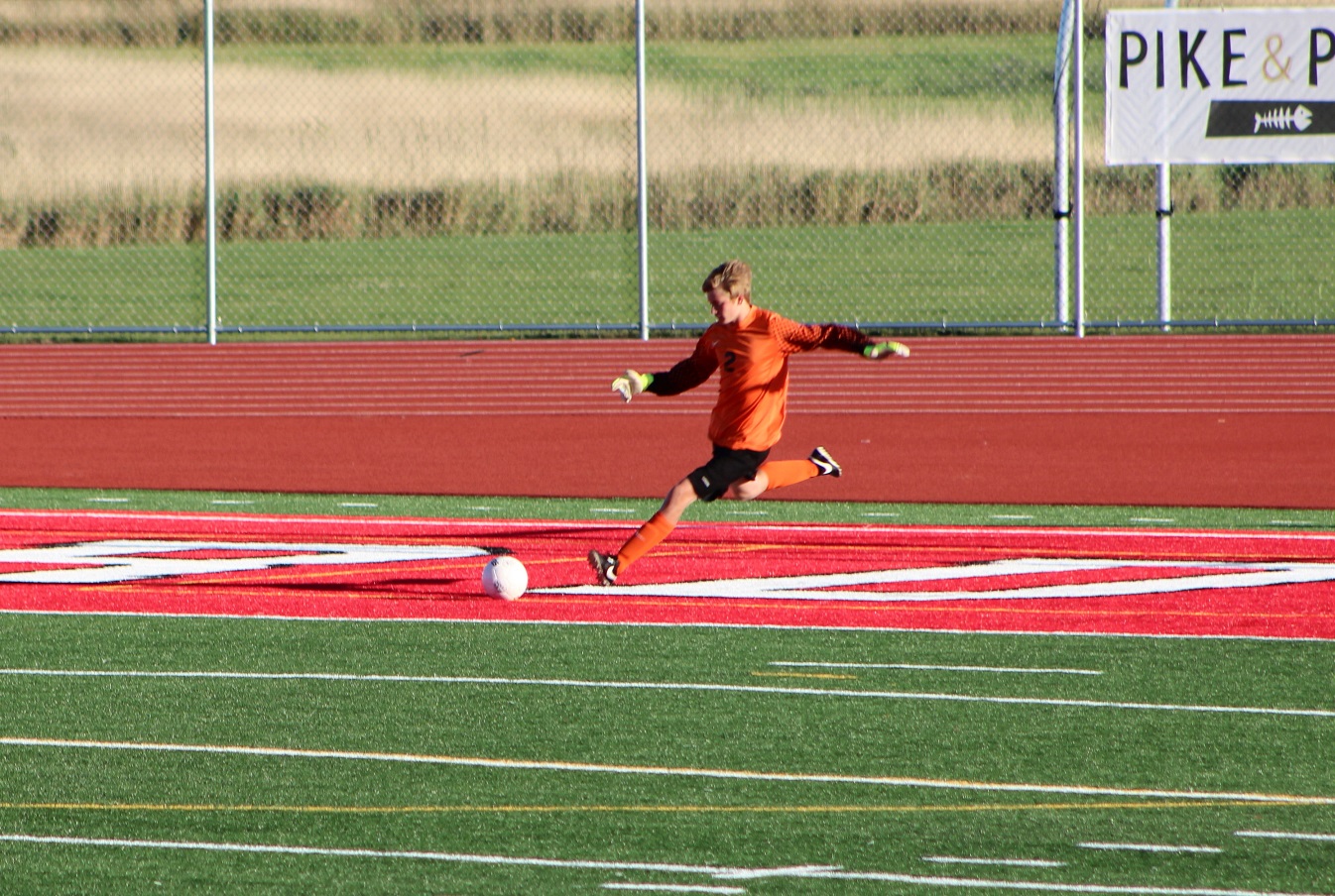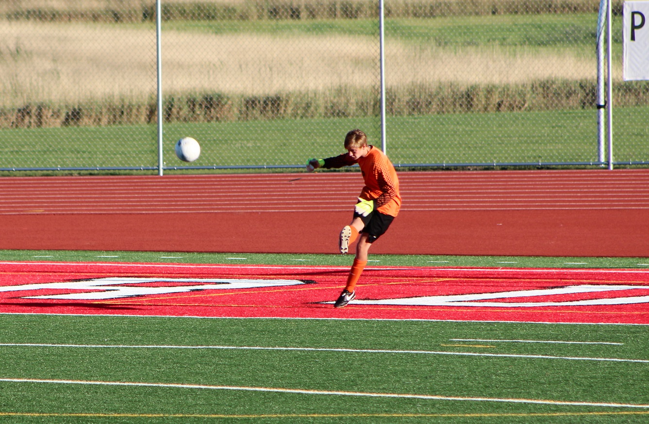 [Junior goalie Zach Harstad (2) gives the ball the boot. He made several nice stops as the Eagles applied a lot of pressure. BTW, have you tried the pastrami at the Pike & Pint yet?]