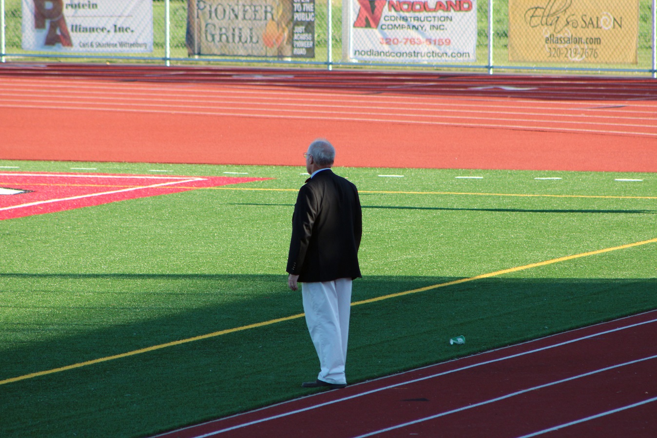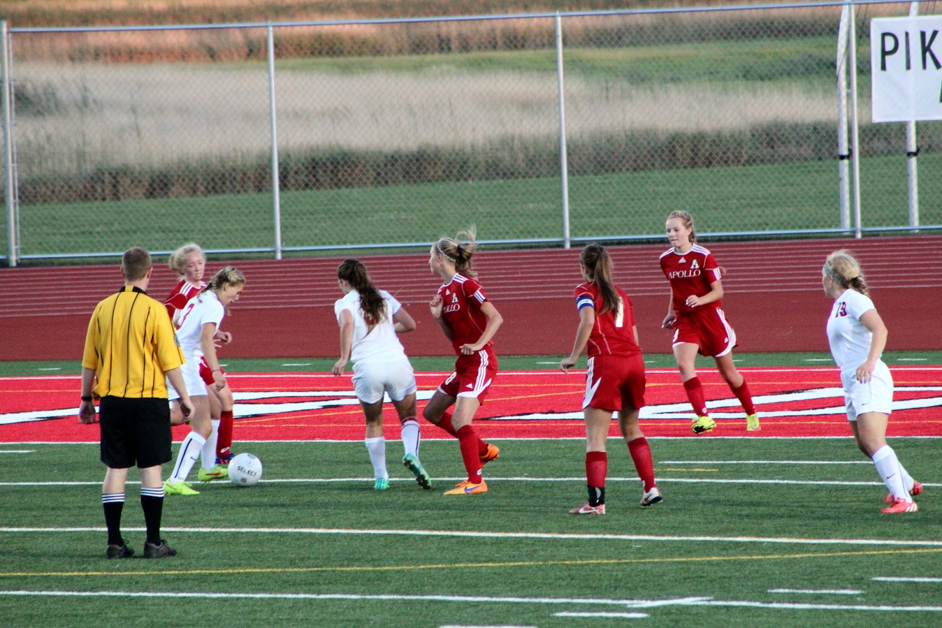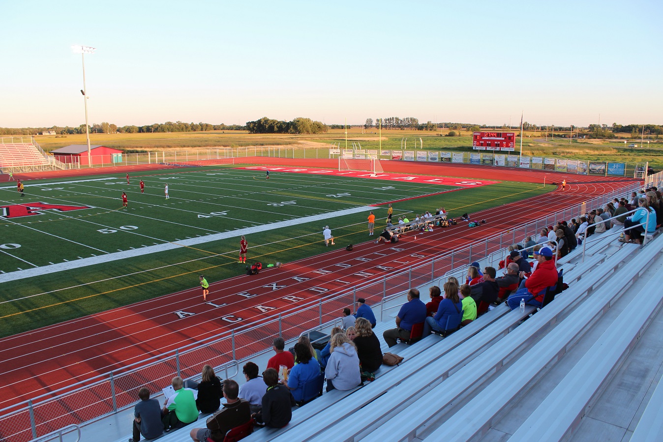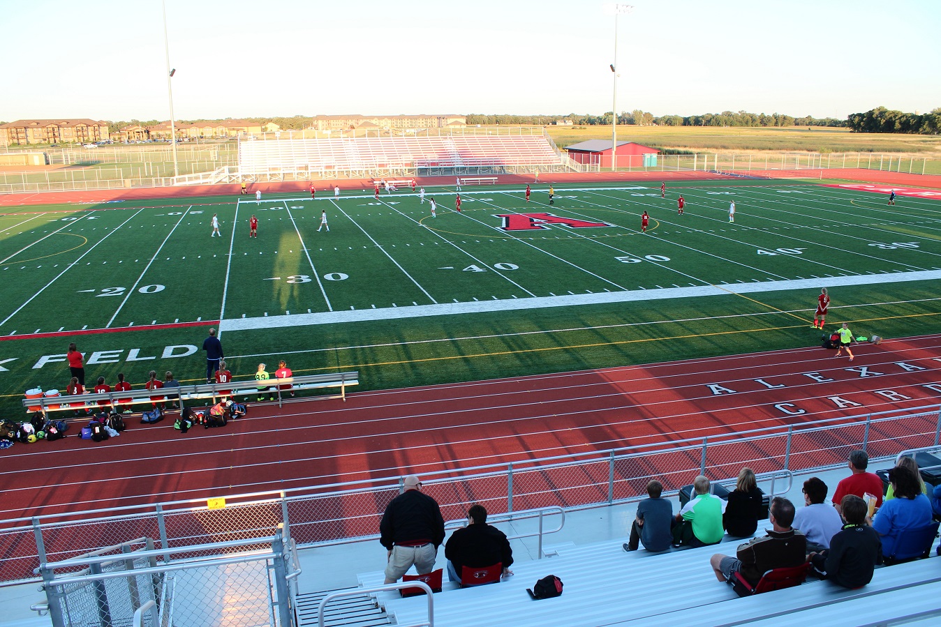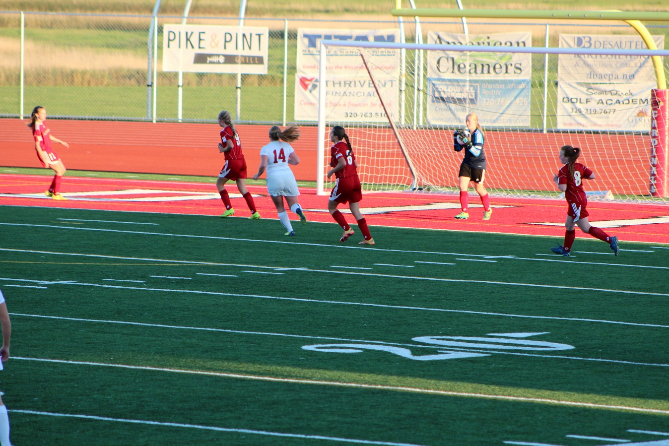 [The very next day I was at my post at the high school, the first day of school at AAHS, and I was determined to cover all events. It’s not like games haven’t been played yet – for Pete’s sake, the football team has already played three times and the volleyball team’s overall record would be 4 – 4 by the end of the evening – but I don’t feel like “playing” until school starts. When I arrived in the parking lot the scoreboard for the boys’ soccer game showed 6 – 0 – oops! We were undefeated going into the game but were hosting defending state champs, St. Cloud Apollo. By the time I walked to the stadium, bought my ticket, and reached the stands, we had scored twice. That was it, a 6 – 2 final. They were very good but we held them even in the second half.]