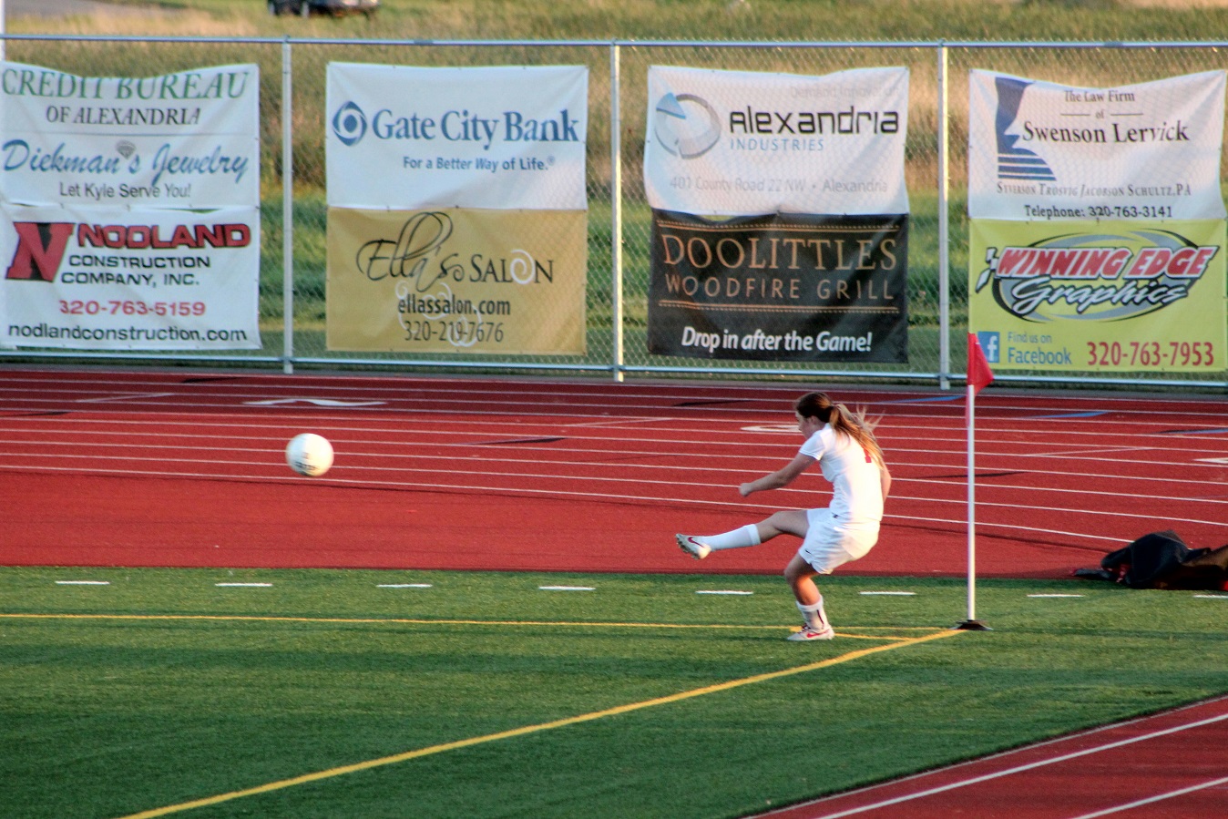 [I’m guessing this is senior forward Kelsea Navratil (1) – she seemed to be the designated corner kicker.]