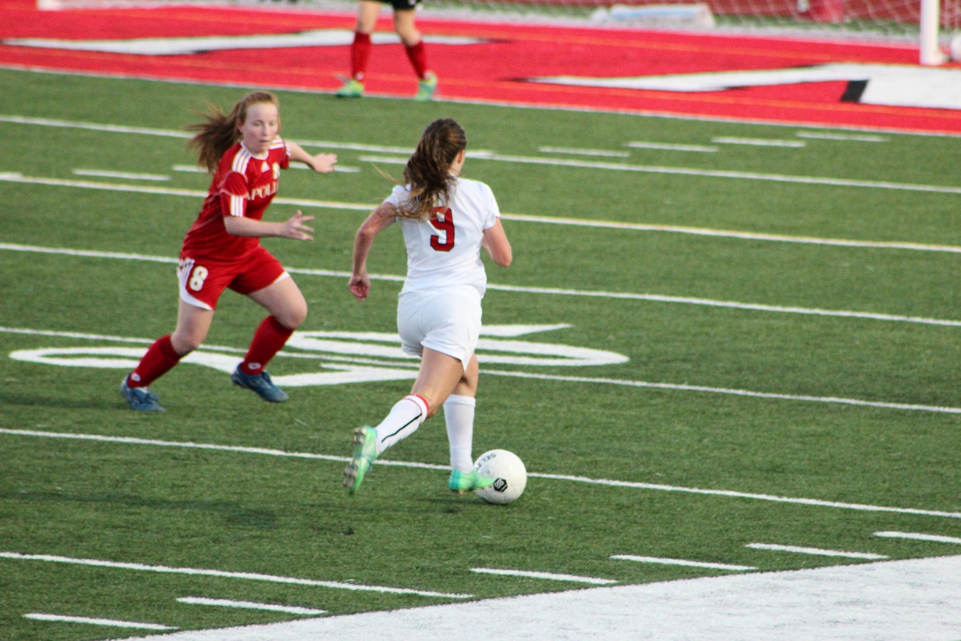 [Another “scooter,” senior midfielder Karsen Granning (9).]