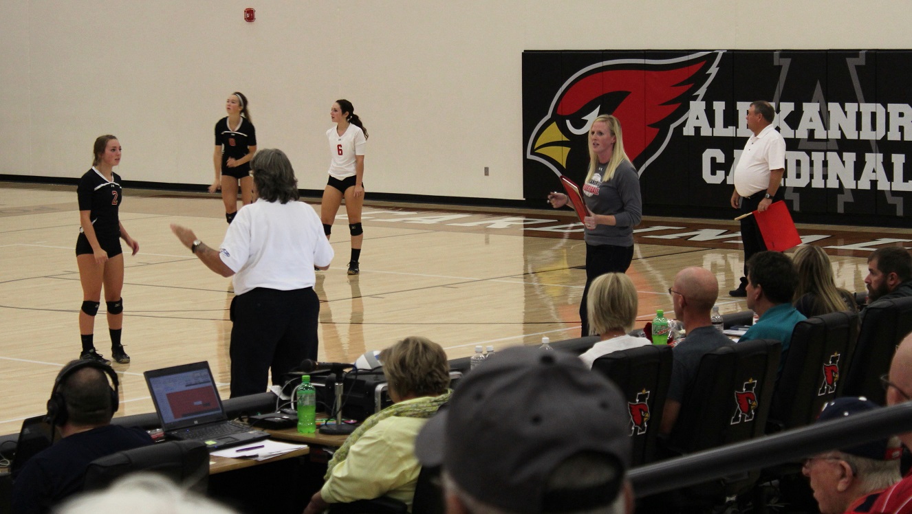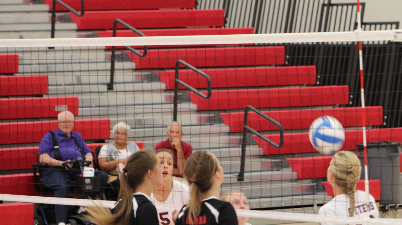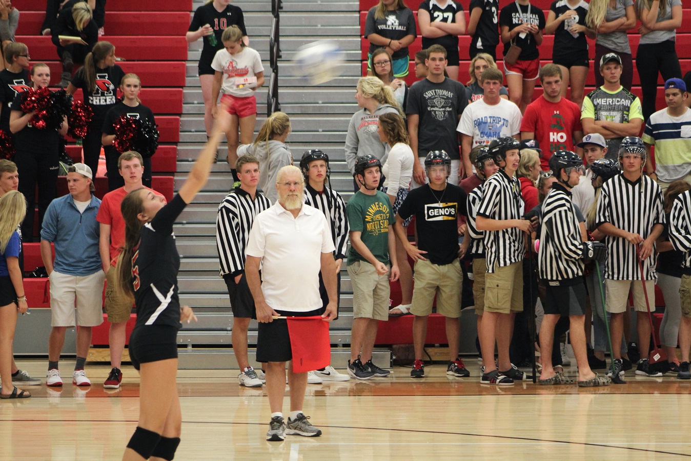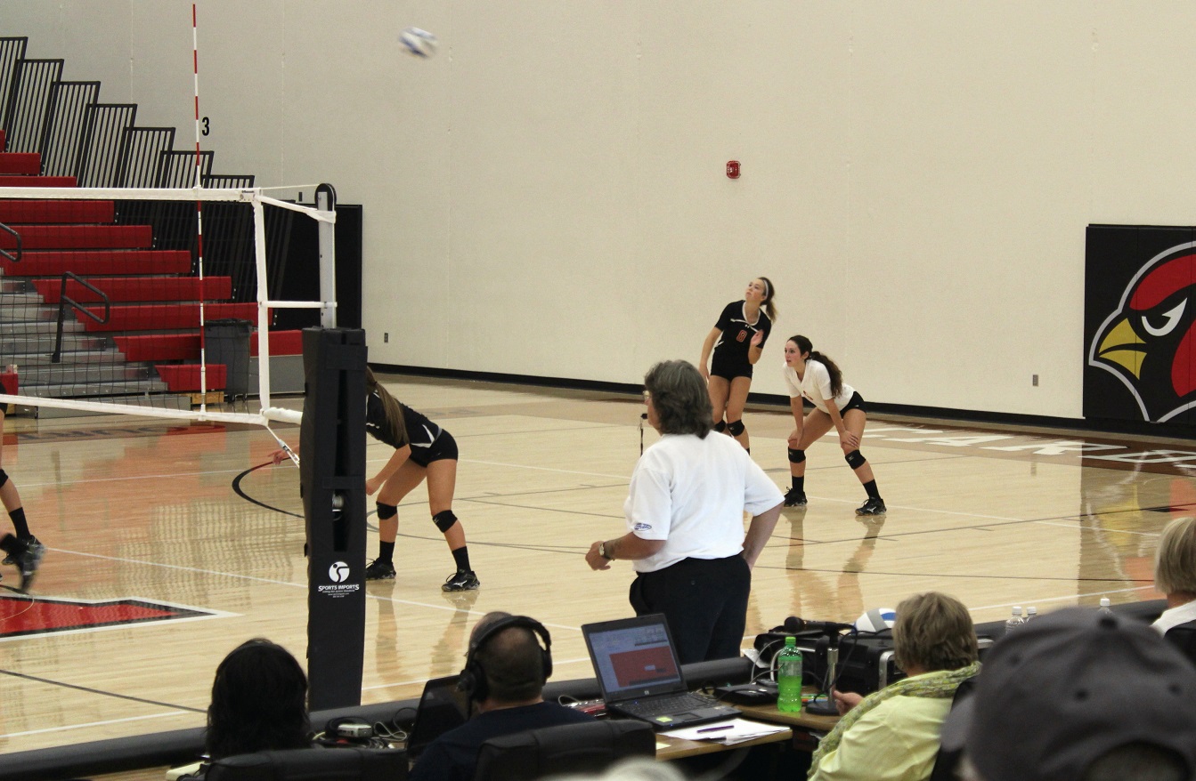 [Cardinal Super Fans Ruth & Bud told me the Cards easily won game one 25-15. When I arrived for Game 2, the Otters were on such a roll they eventually led 17 – 4. I’m thinking, “I’m the black cloud, again!” But the Cards made a great come back and actually were serving to win the game.]