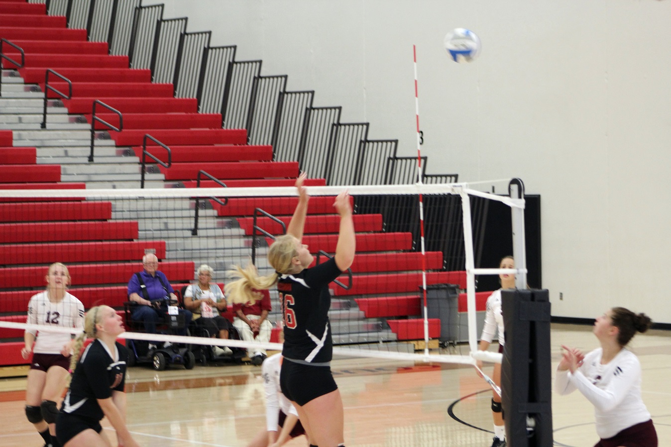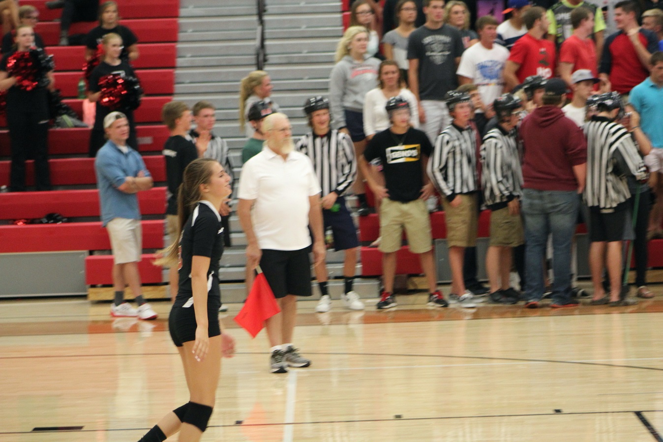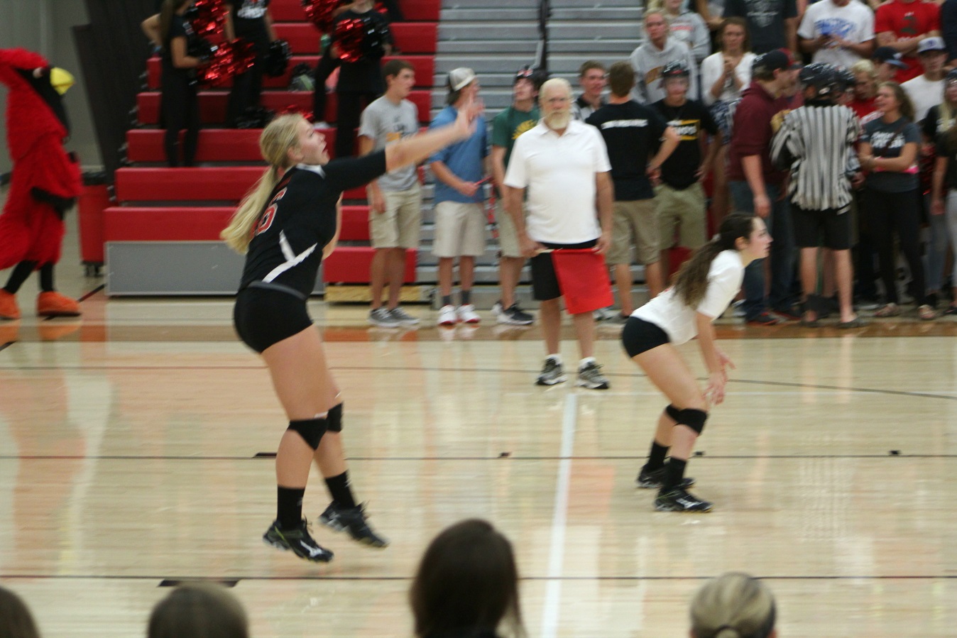 [Security, please escort Ms. Kardashian from the arena! (Serving is senior Kenna Goracke (2), who was player-of-the-game.)]