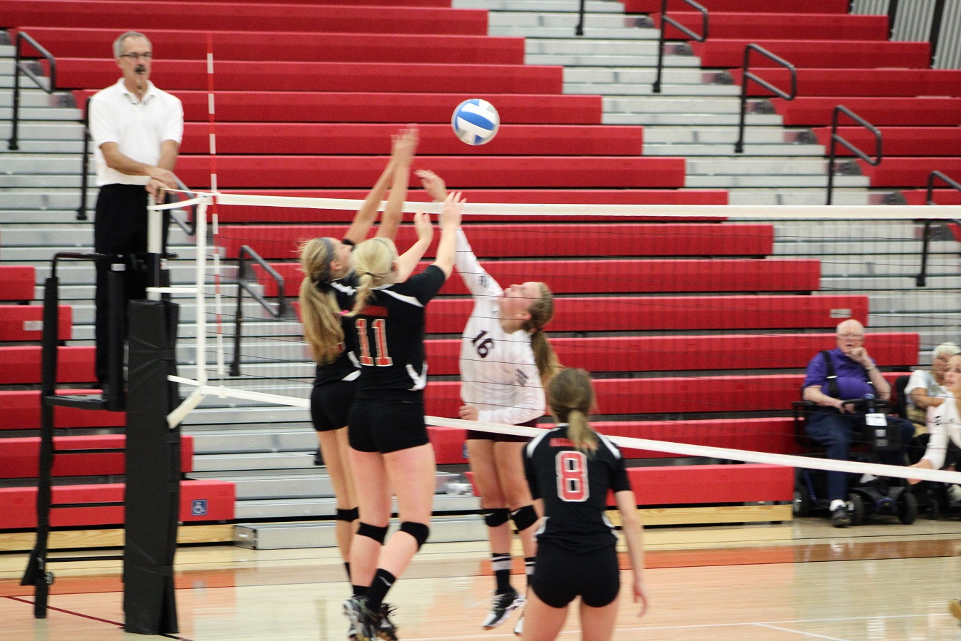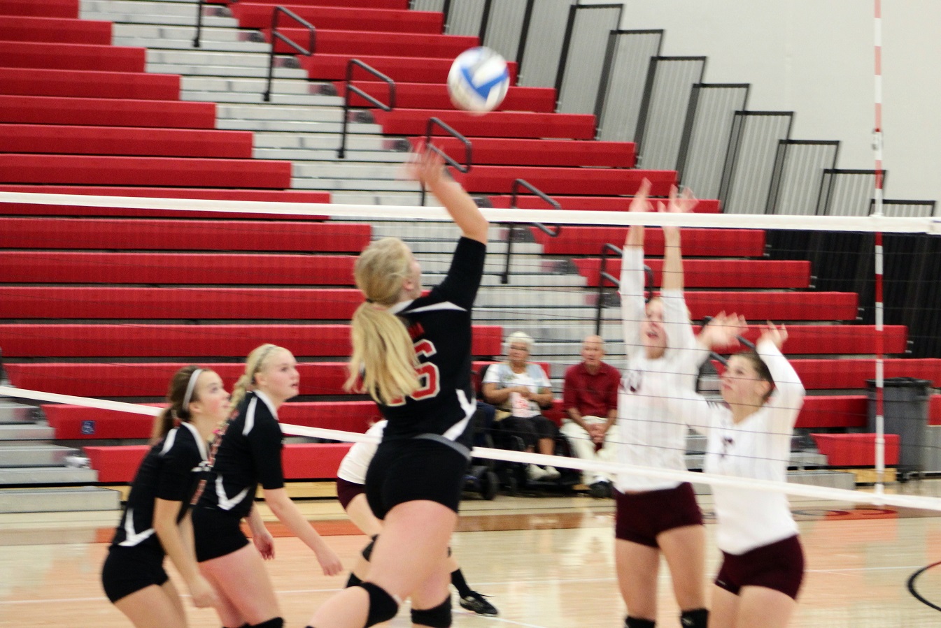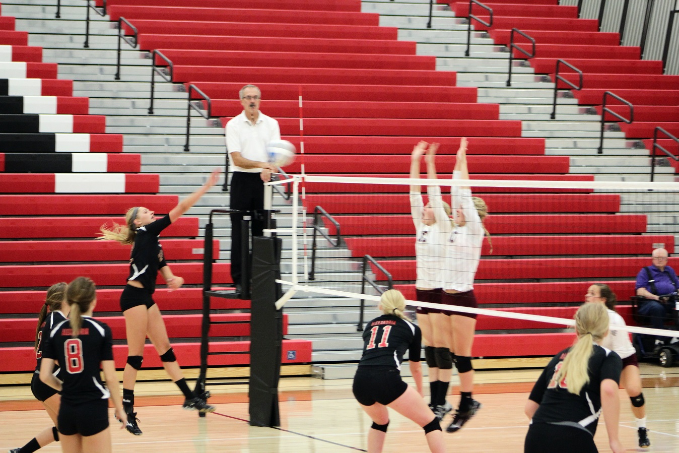 [Security, please escort Ms. Kardashian from the arena! (Serving is senior Kenna Goracke (2), who was player-of-the-game.)]
