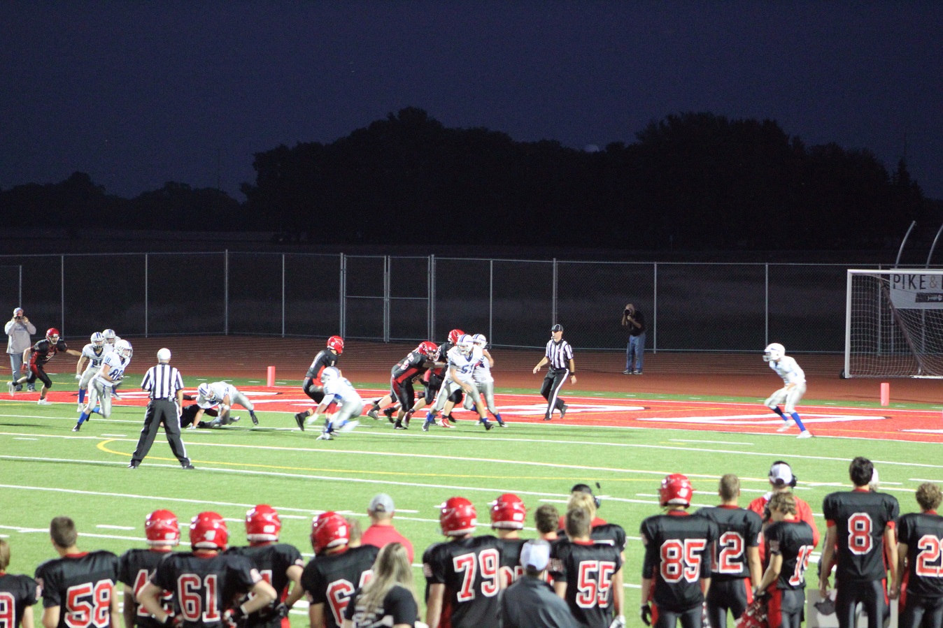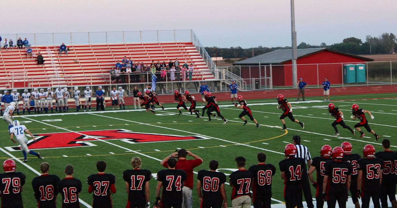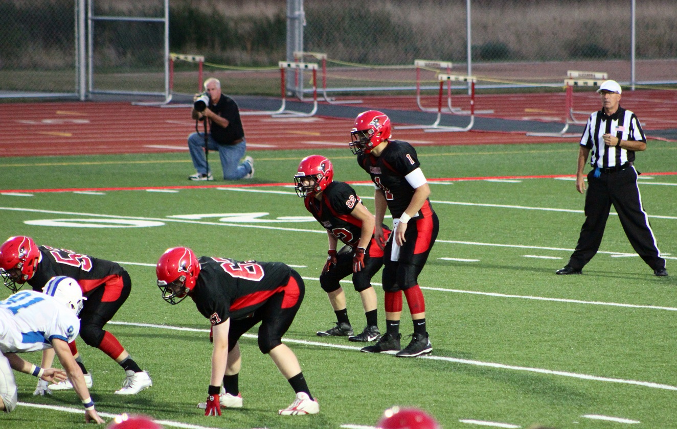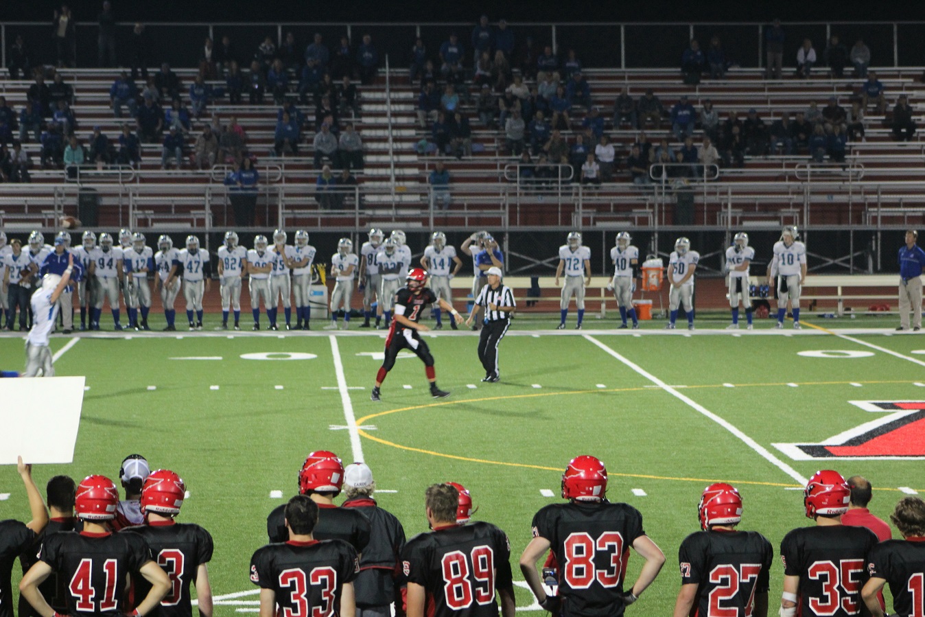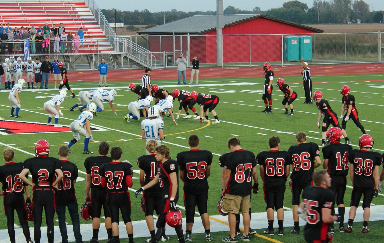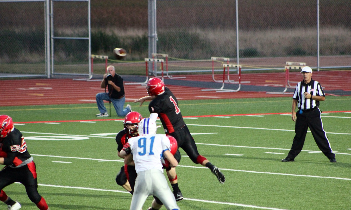 [Senior wide receiver Brayden Amundsen (7) got nicked late in the first half – appeared to be a high right ankle sprain. He did not play again. Senior wide receive Tom Whiting also got hurt and did not play in the 2nd half. I believe they have been our two top receivers, which may explain the emphasis on the running game. I hope they’re not out long?]