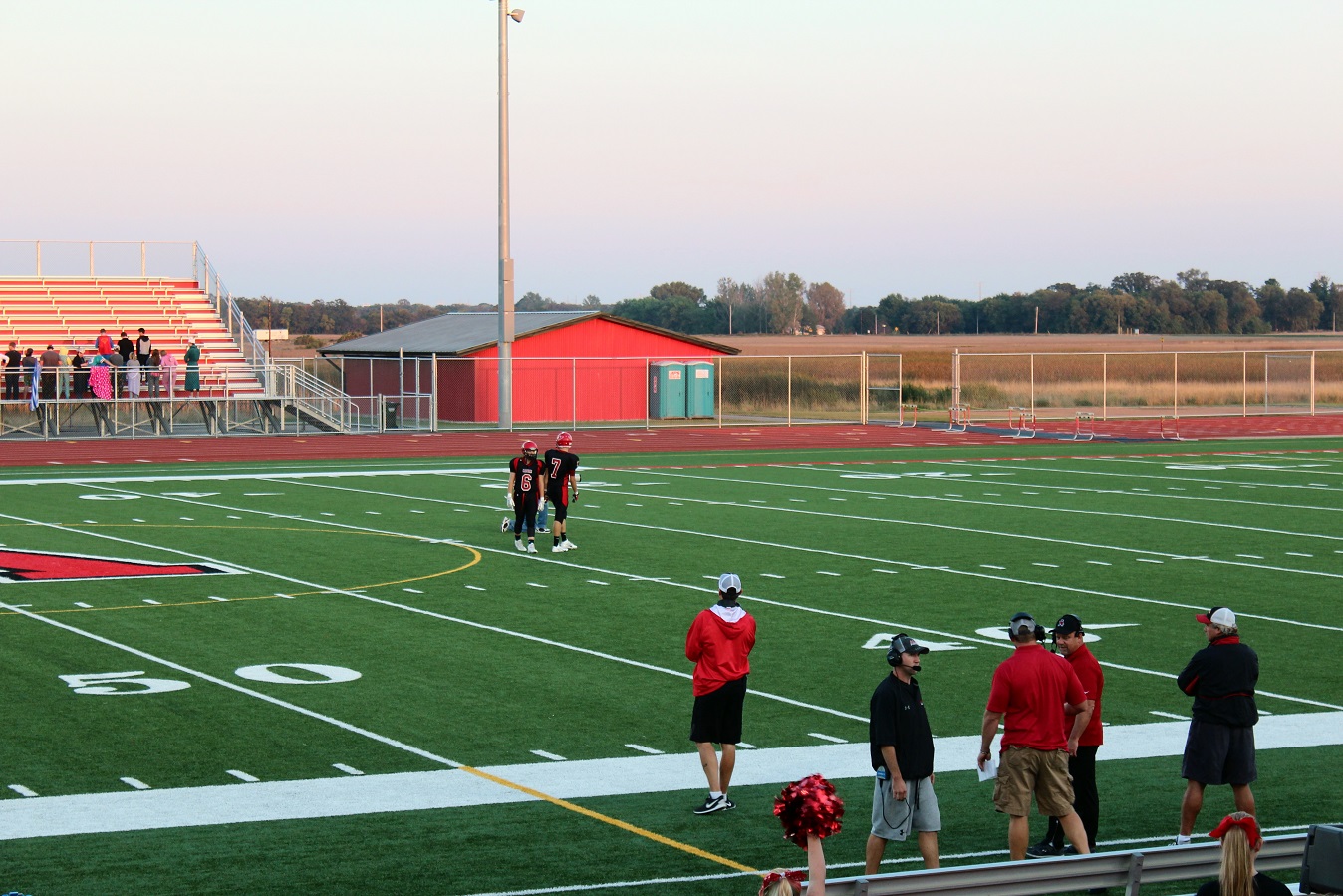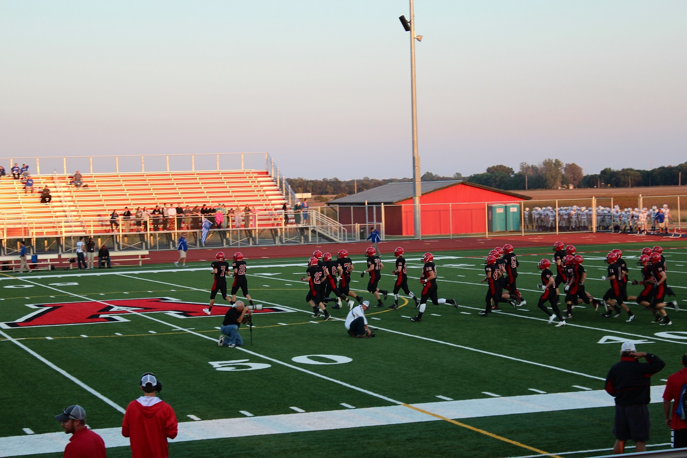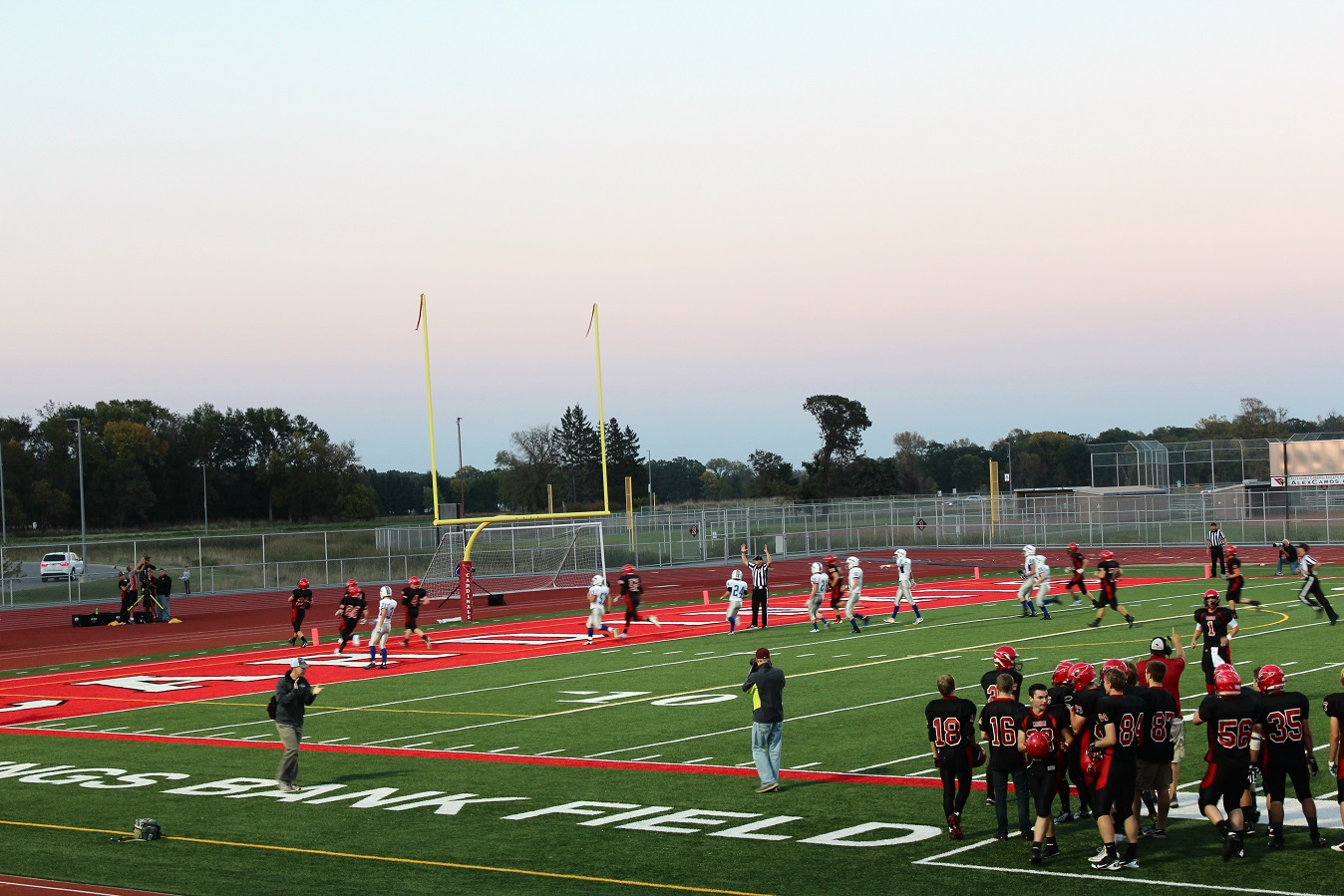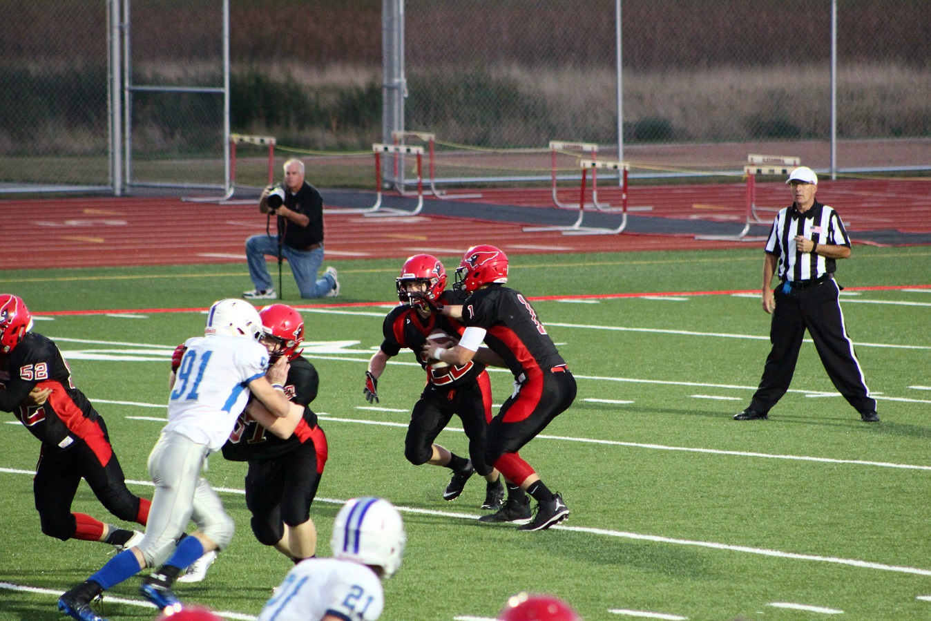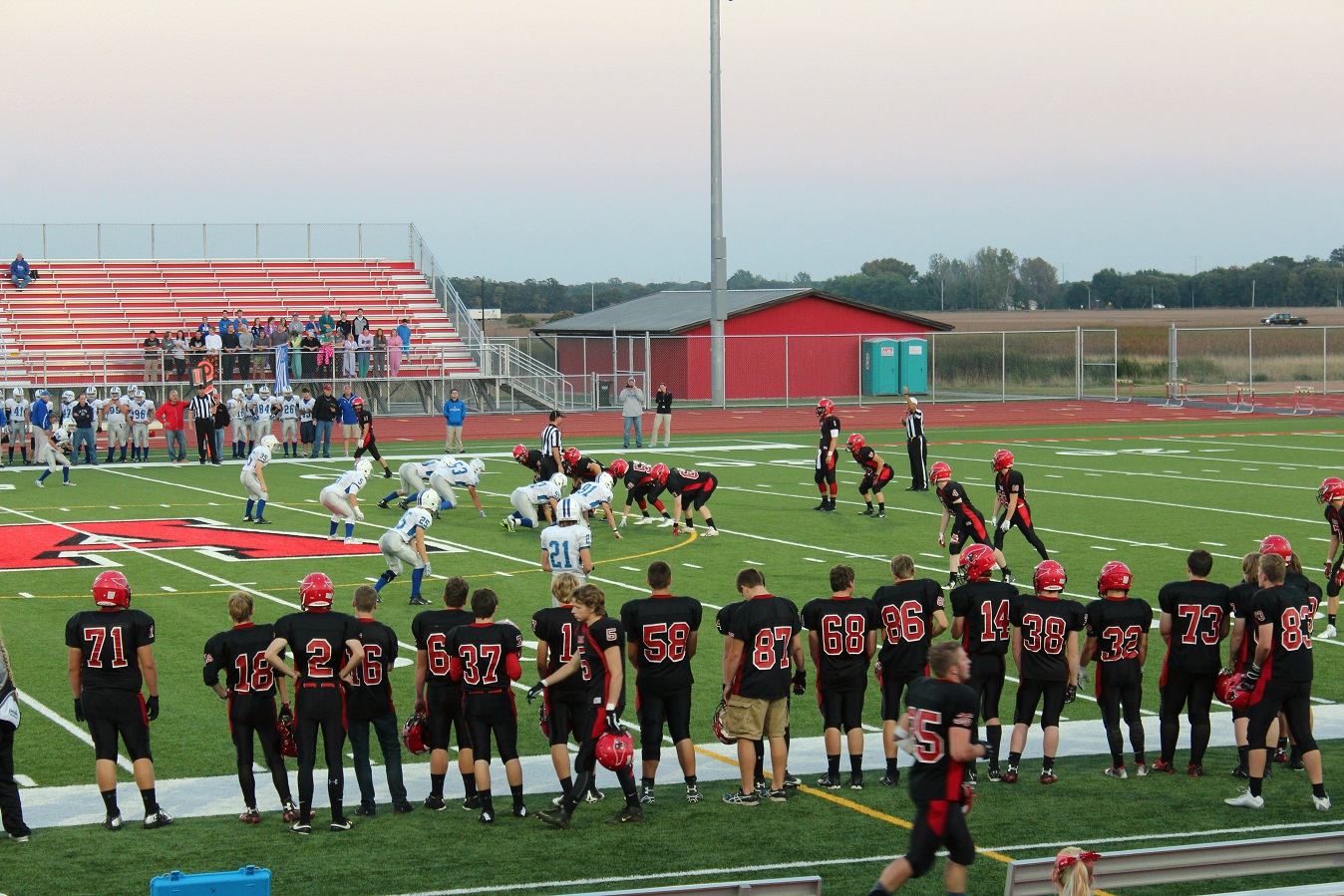 [Senior wide receiver Brayden Amundsen (7) got nicked late in the first half – appeared to be a high right ankle sprain. He did not play again. Senior wide receive Tom Whiting also got hurt and did not play in the 2nd half. I believe they have been our two top receivers, which may explain the emphasis on the running game. I hope they’re not out long?]