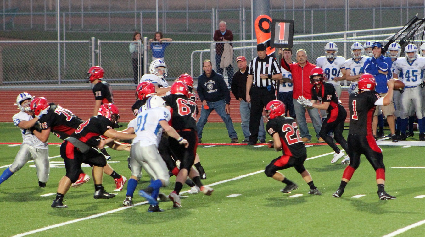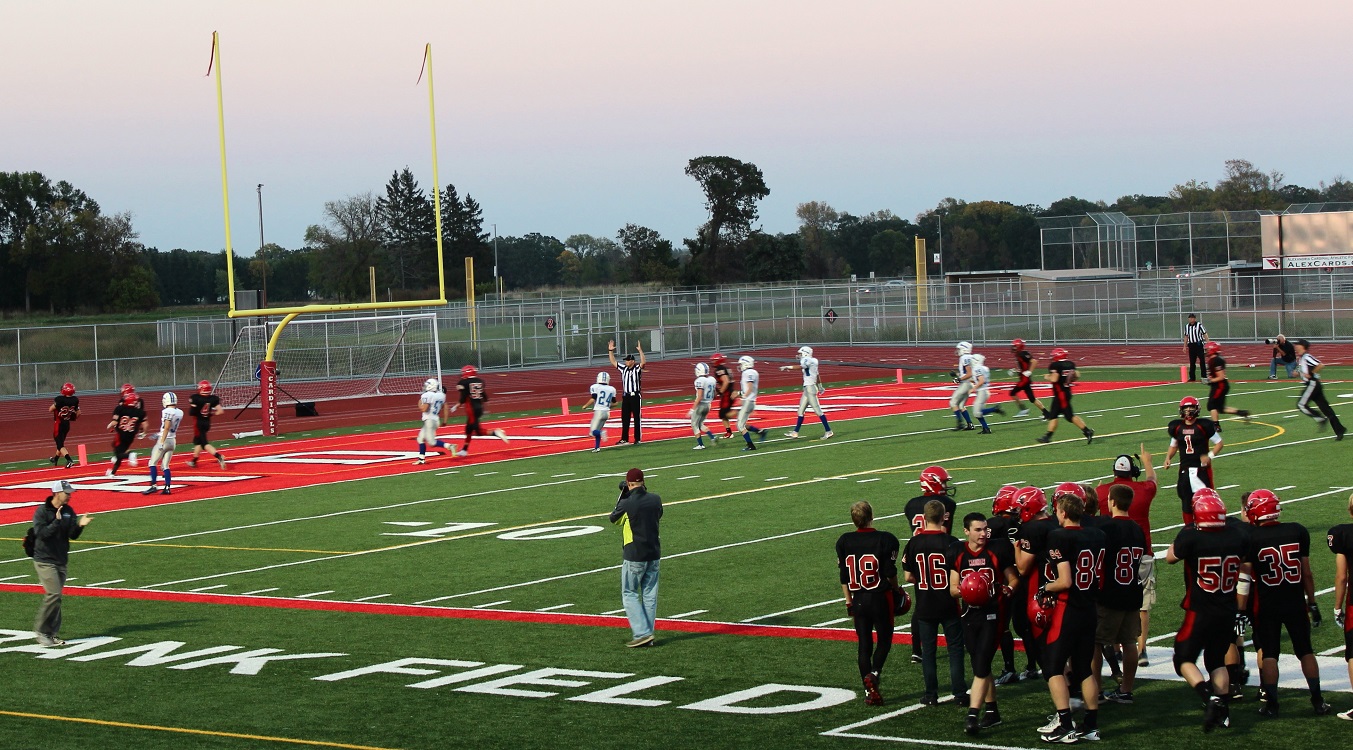 [Touchdown . . . touchdown . . . and game over. Lots of offense, the Cards had about 520 yards, the Warriors about 440. That’s pretty much been the pattern the last four games. Now looking forward to Homecoming next weekend!]