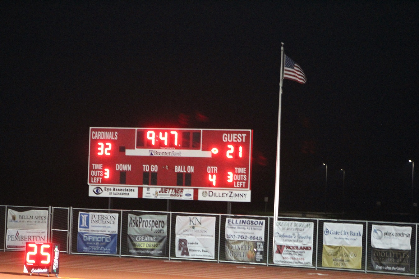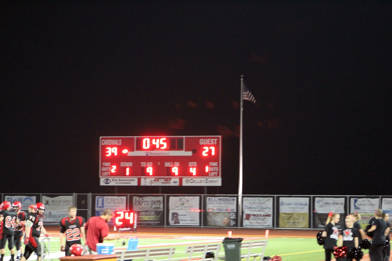 [Pretty dark now, photography gets ragged. Appears to be a Cardinal touchdown!]