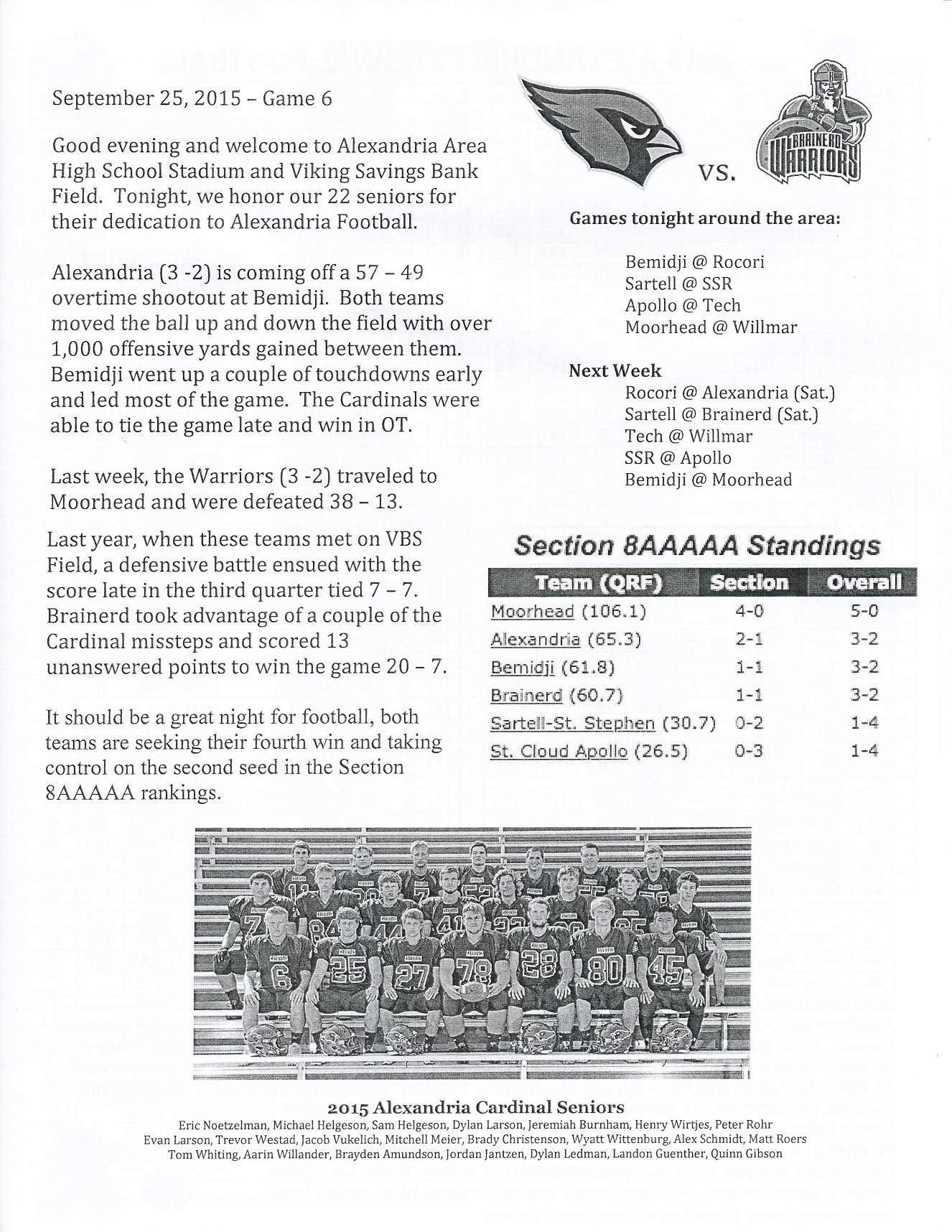 [And here come your 2015 Alexandria Cardinals . . . led by the 6th-grade team, as I recall.]