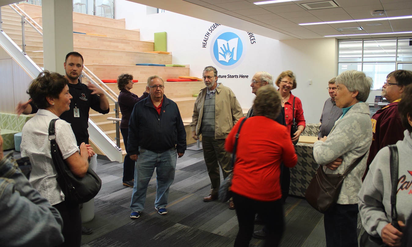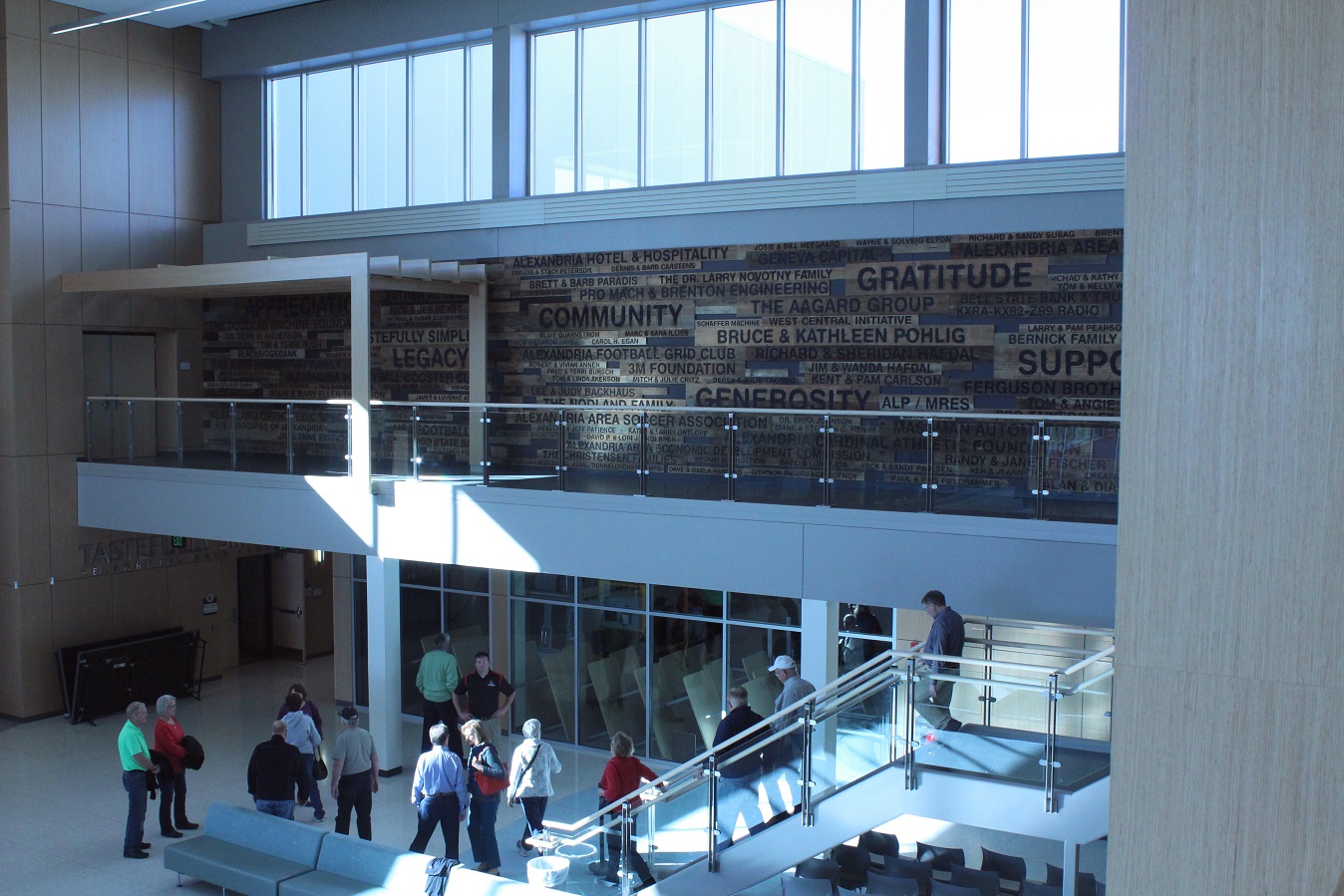 [And then, after school let out that afternoon, thanks again to Cindy Hughes, Adm. Asst. to the Superintendent and School Board, and Troy Wunderlich, Asst. Principal, for setting up a tour of the new high school for the Class of ’65 (now in the absence of good ole JHS). The kids call the new school “AAHS” (think “Oz”) for Alexandria Area High School.]