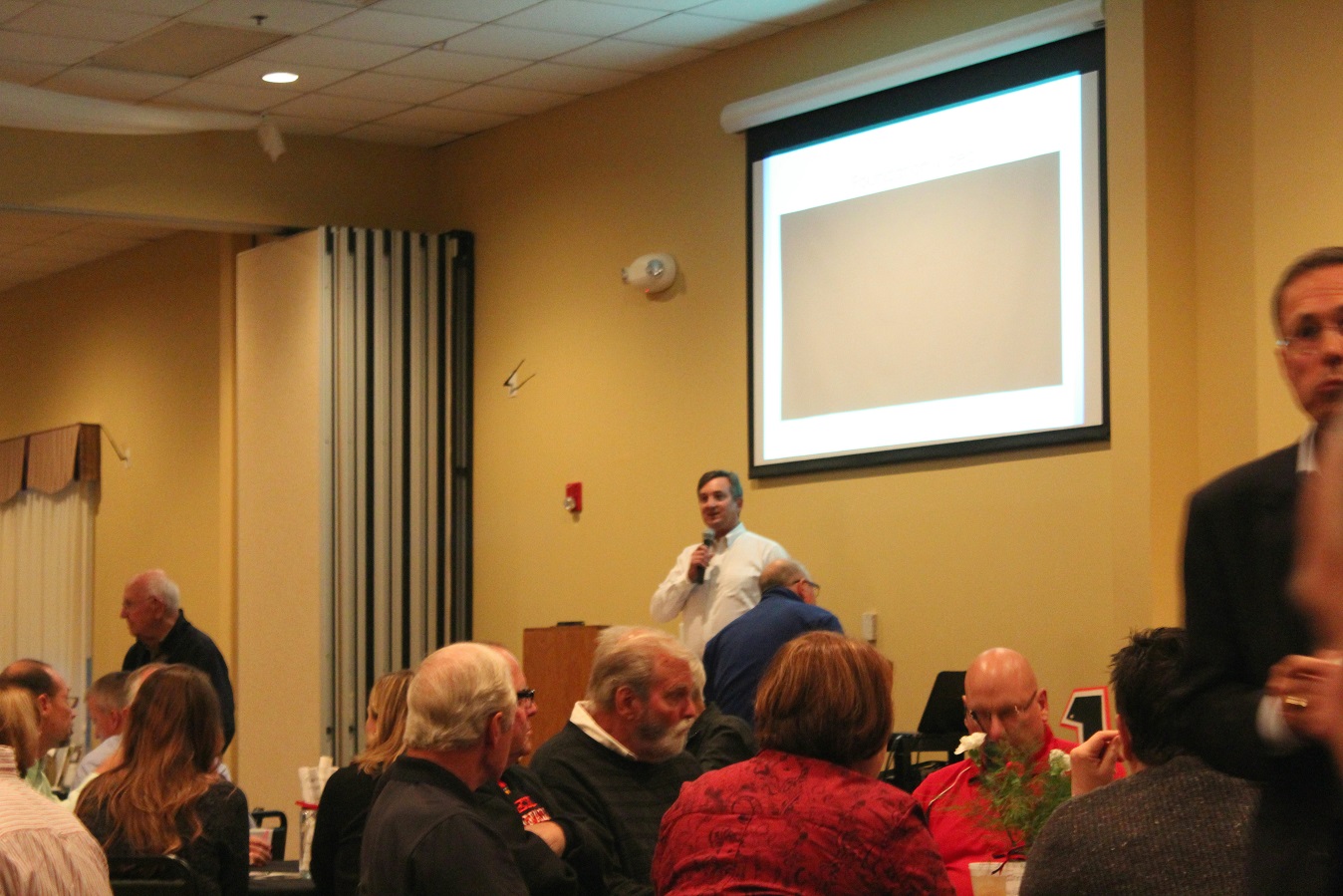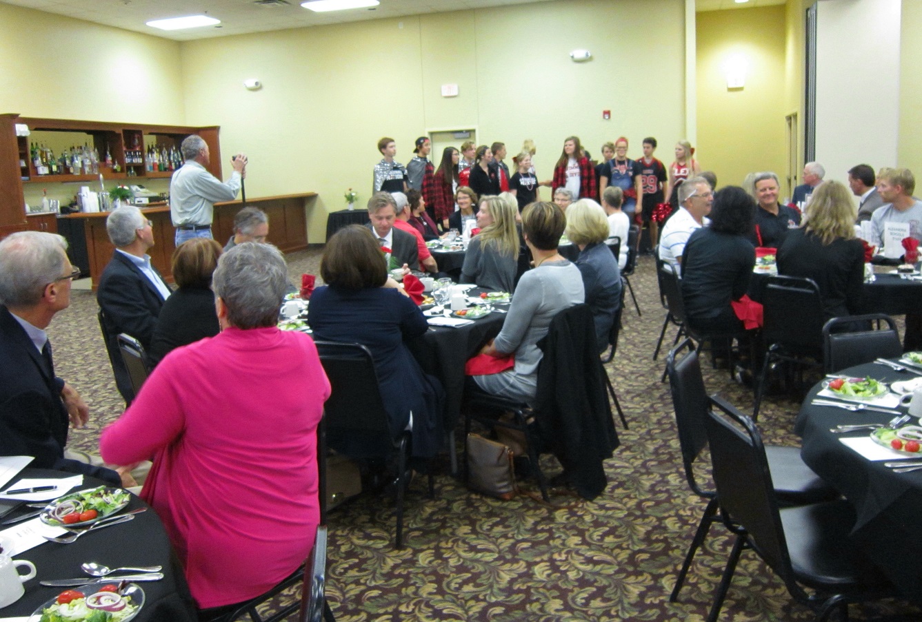 [Then back to Broadway Ballroom for the school’s Jeans & Jewels annual fundraiser. At our table was previous Hall of Famer Bob Rader with his wife Vonnie.]
