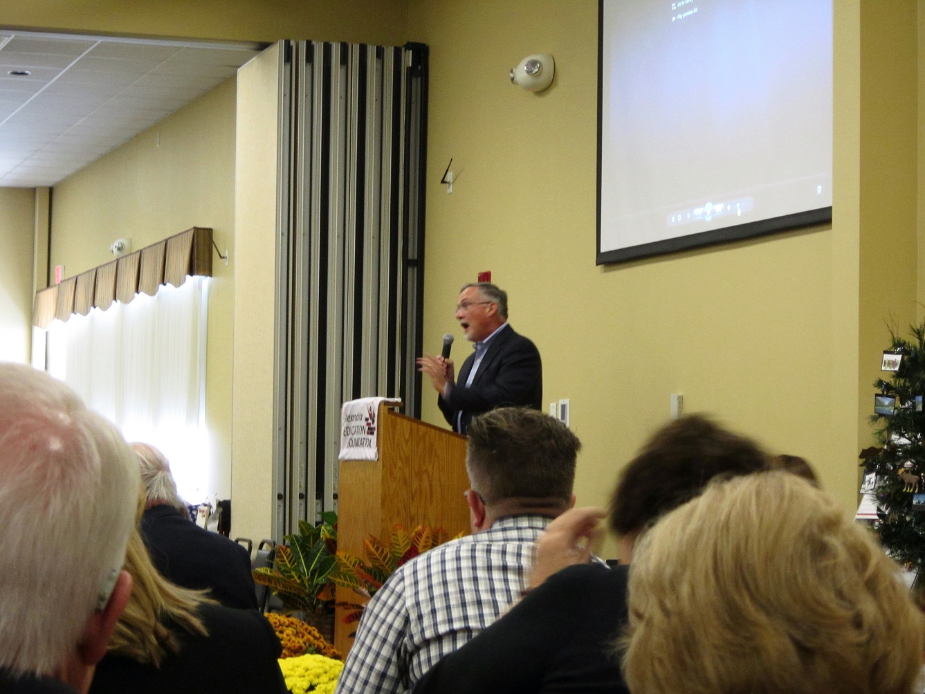 [“Your Worship” Mayor Ness and Doctor Woolliscroft. Apologies to Ms. Larson, who I will see again soon at whatever meeting, but I just had my snapshot camera and not all photographic attempts were successful. Regarding “Your Worship,” I was one of I assume several who nominated him, and when I first met him as mayor I asked if I should address him as “Your Honor” – he said he preferred “Your Worship,” so I liked him immediately!]