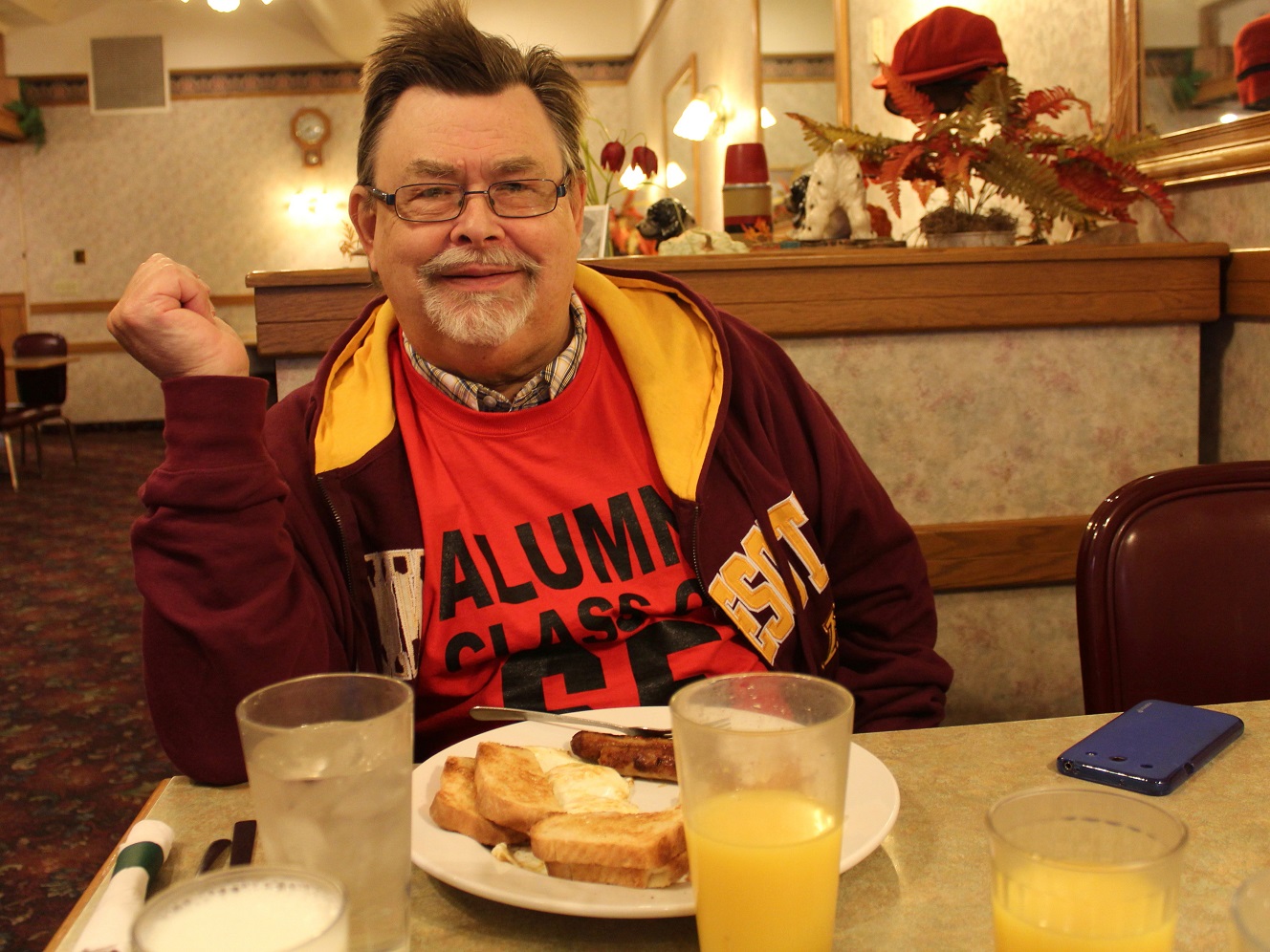 [We began the day by taking Brad to his first breakfast at Travelers Inn in over 50 years . . . like most of us, it’s amazing how much he looks like his dad now.]